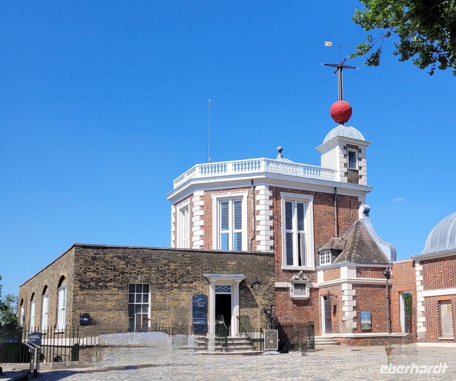 Ein Spaziergang durch Greenwich Park bringt uns zum berühmten Observatorium durch welches ja bekanntlich der am Ende des 19. Jahrhunderts definierte Nullmeridian verläuft. Ganz nebenbei hat man von der nahen Terrasse auch noch einen eindrücklichen Blick über London, speziell das Bankenviertel in Canary Wharf prägt die hier gebotene Silhouette.