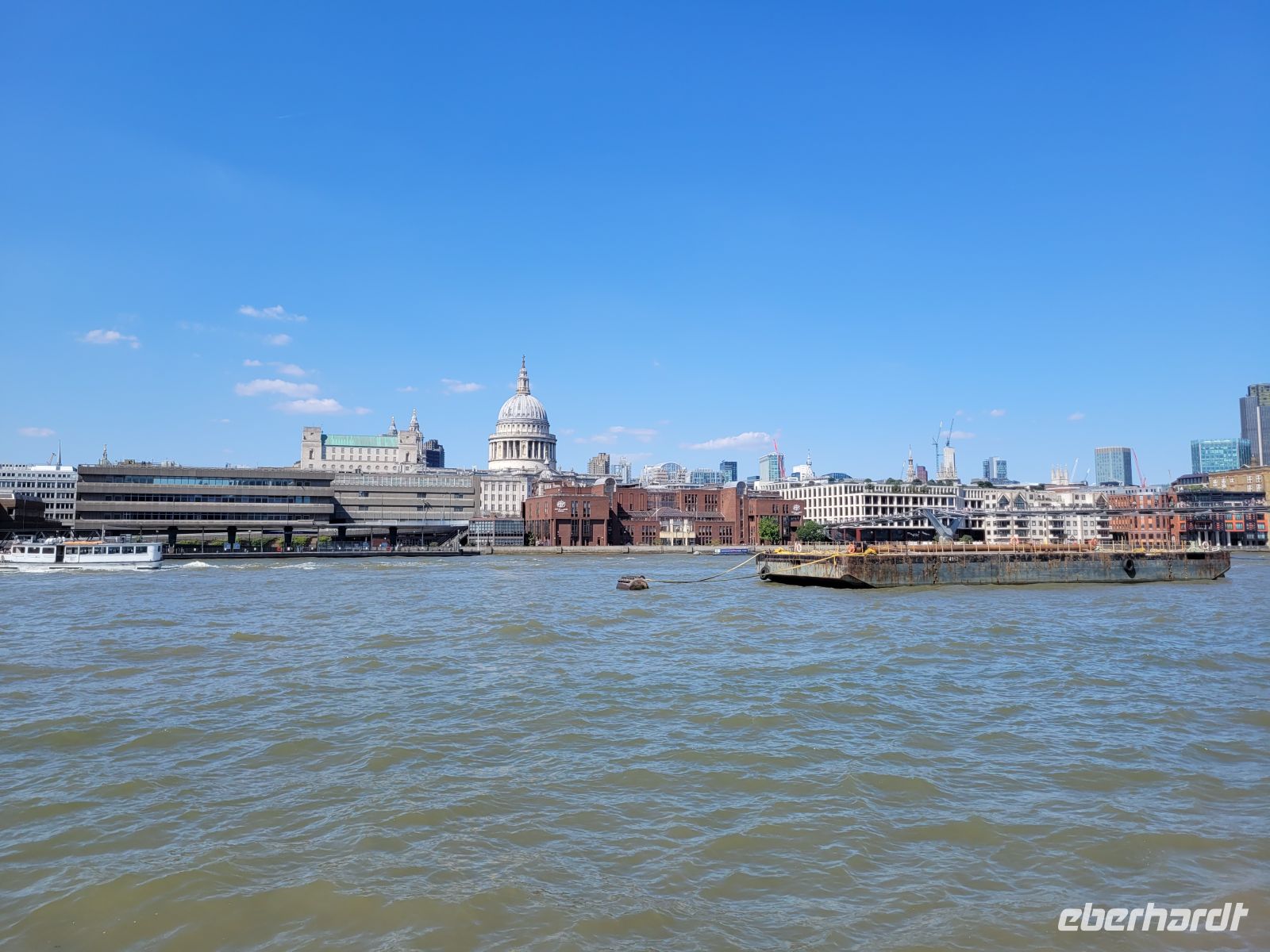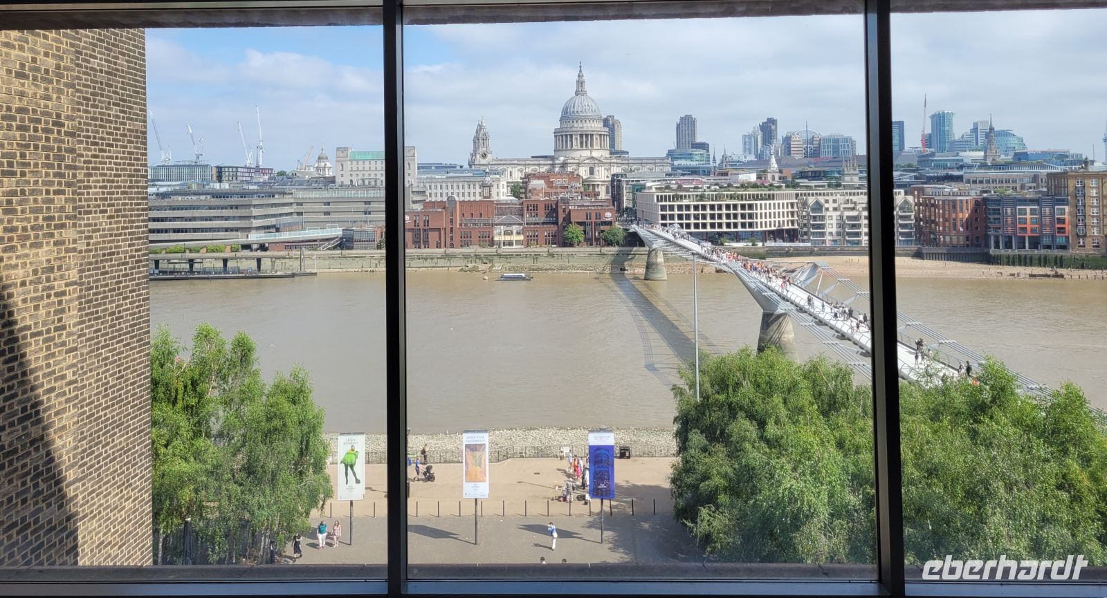 Wir rollen über die Millennium Bridge und besuchen The New Tate. In der Galerie ist, natürlich neben den ausgestellten Kunstwerken, die neugeschaffene Aussichtsterrasse ein Highlight. Im Anschluss dann zu St. Pauls Cathedral, um das Meisterwerk von Christopher Wren zumindest von außen zu besichtigen.