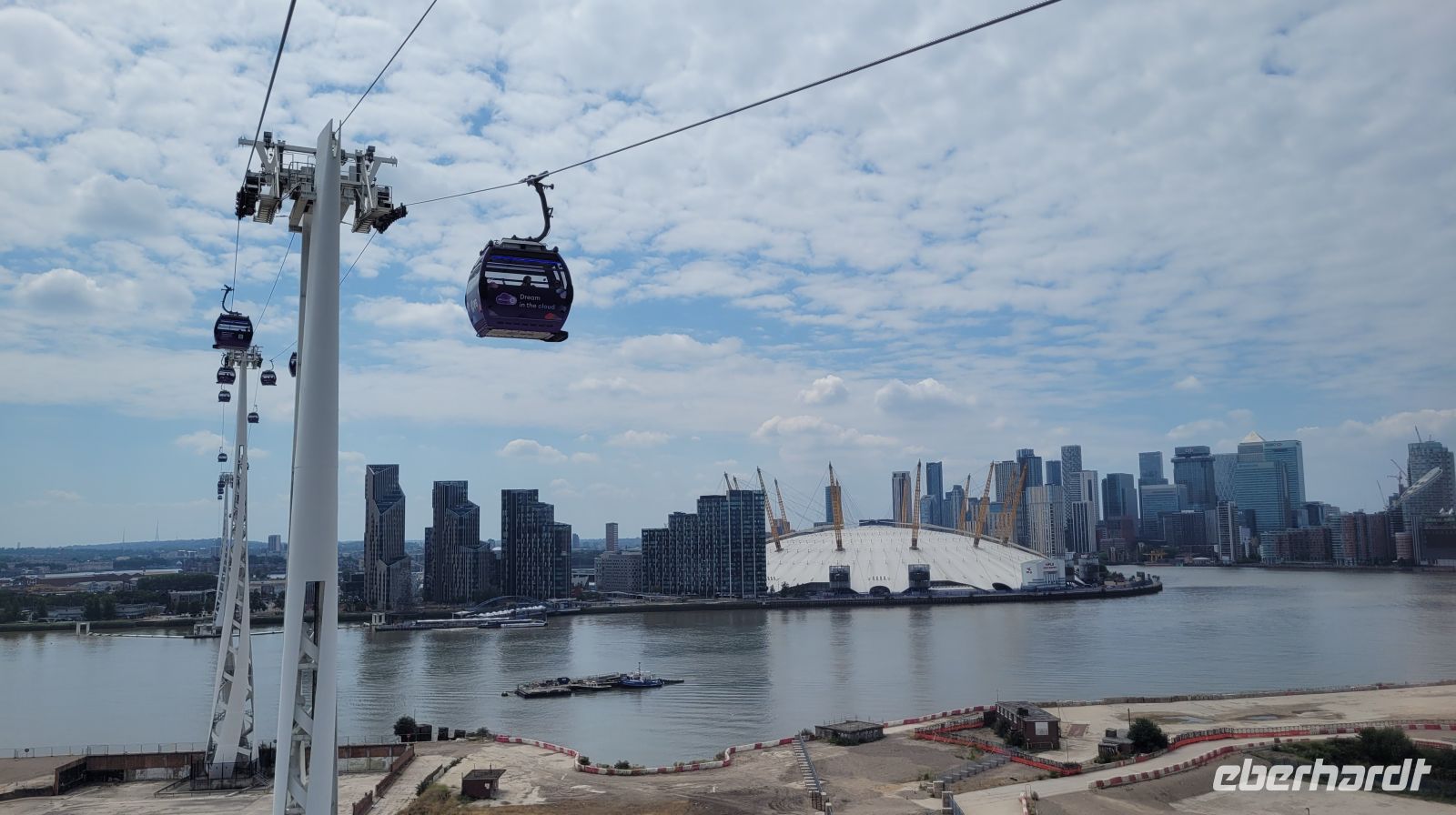 Zunächst nutzen wir The London Cable Car zu einer aussichtsreichen Seilbahnfahrt über die Themse, dann berollen wir den „Dome“.