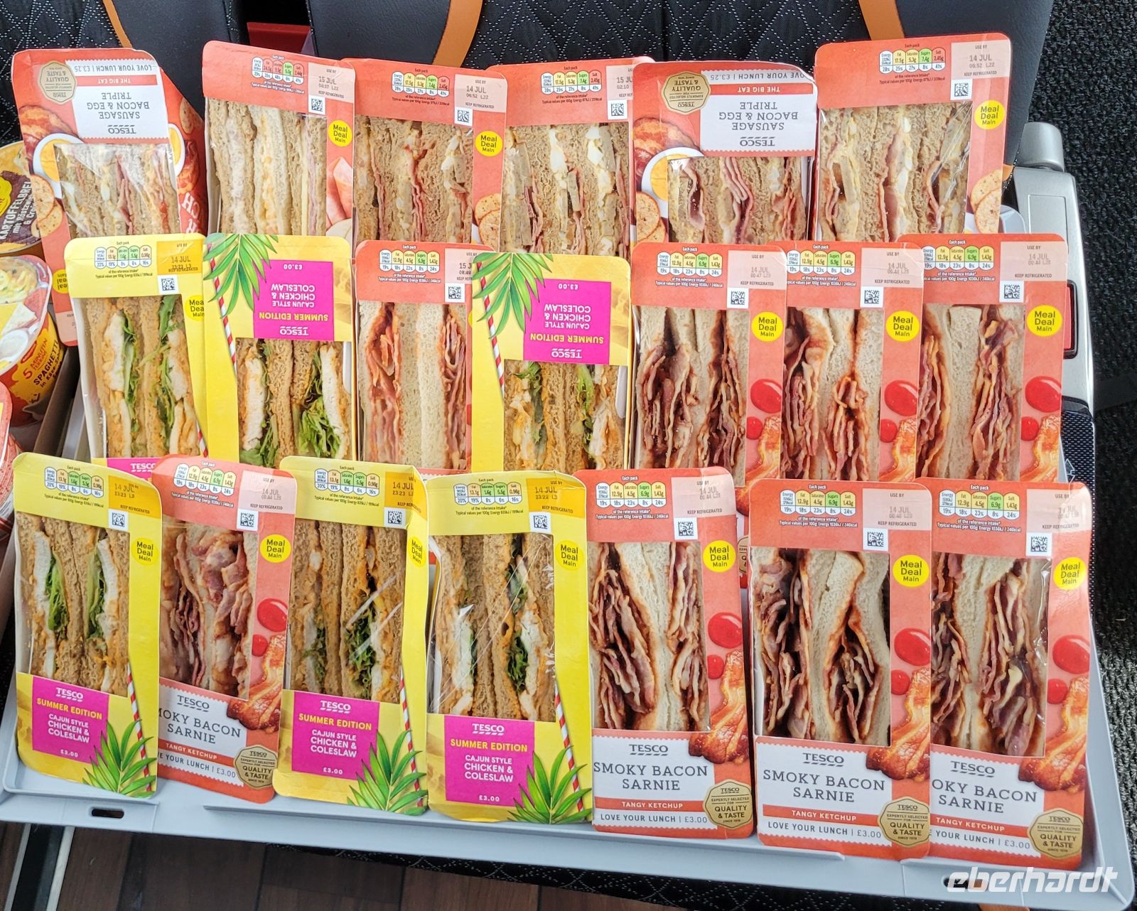Um rechtzeitig zum nächsten Highlight des Tages zu kommen, muss dann am späten Mittag ein Sandwichpaket schnell das Hungerloch stopfen; nicht schlecht und very british…