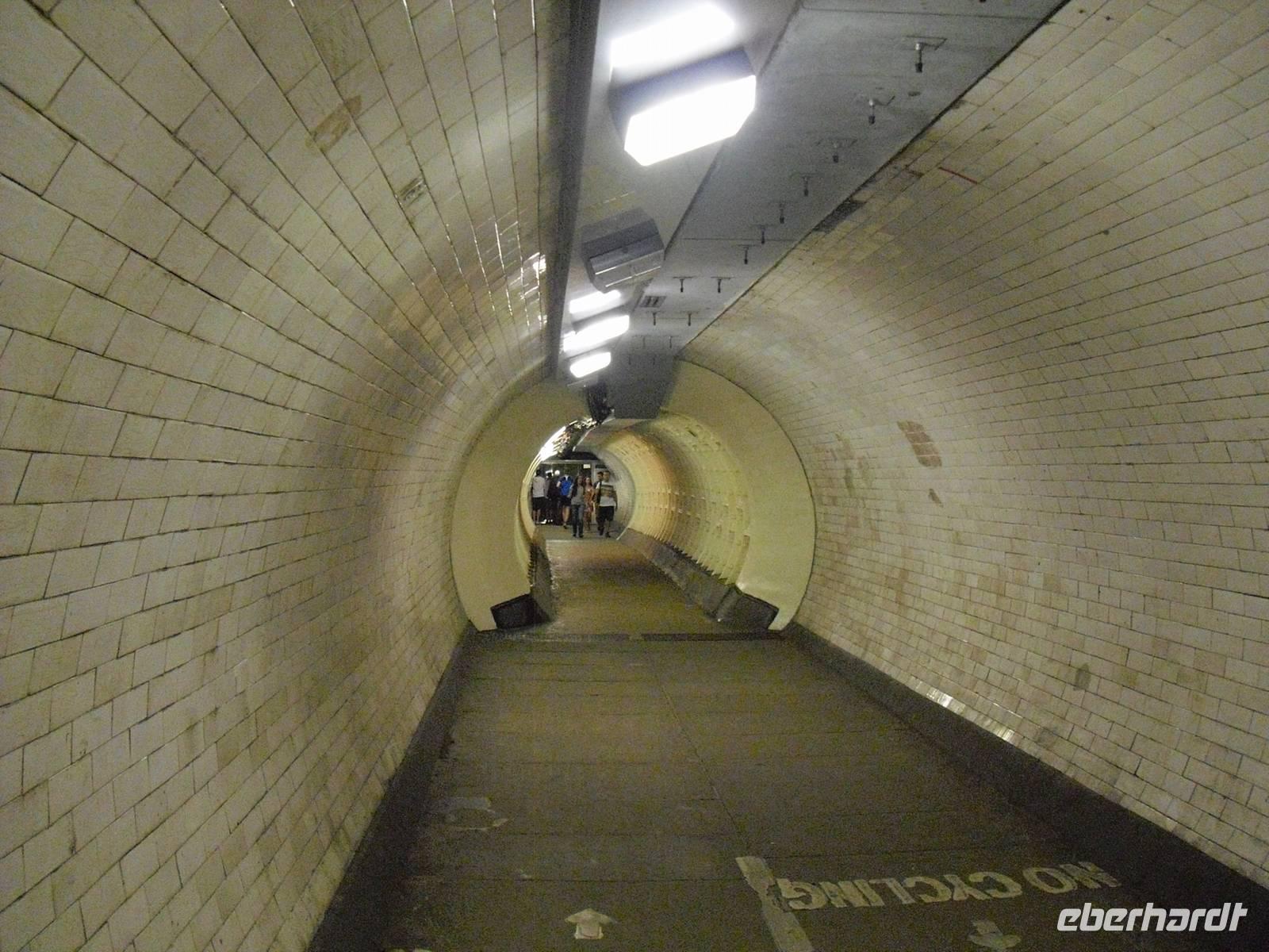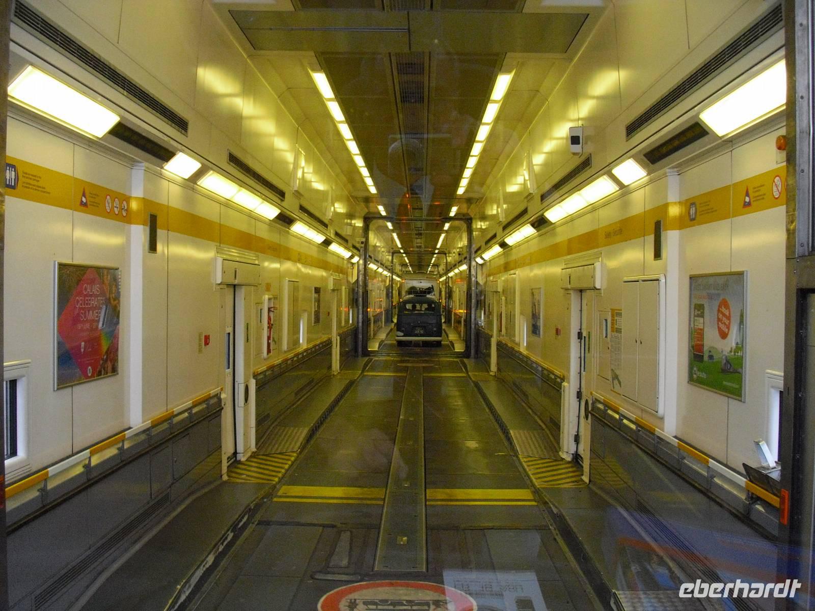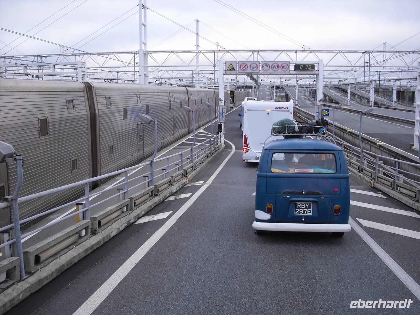 Nach einem Weckruf zum Frühstück und nach der Abfahrt zum Abfertigungsterminal für den Shuttle durch den Eurotunnel ging es planmässig in 35 Minuten unter dem Wasser des Ärmelkanals nach Grossbritannien. Der Bau des Tunnels verschlang doppelt so viel Geld wie geplant. 1986 erfolgte die Vertragsunterzeichnung, 1987 begannen die Arbeiten auf der britischen und 1988 auf der französischen Seite. 1990 erfolgte der Tunneldurchstich und am 6. Mai 1994 fand die feierliche Eröffnung statt.