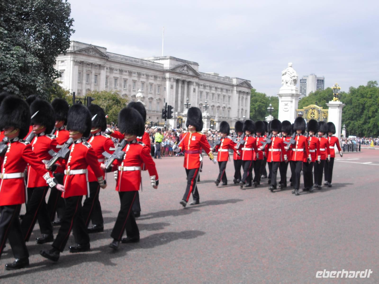 Eine nächste Attraktion erwartete uns vor dem Buckingham Palast - die im Sommer täglich um 11.30 Uhr stattfindende große Wachablösung.