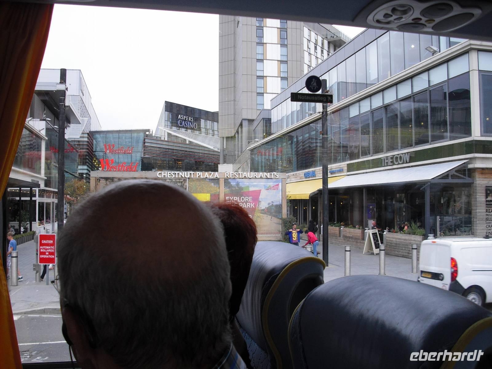 Der Nachmittag wurde mit einer ausführlichen Stadtrundfahrt, u.a. auch bis nach Stratford in die ehemaligen Sportstätten der Olympischen Sommerspiele 2012, und einer Bootsfahrt auf der Themse gestaltet. Unser Stadtführer Mark erklärte dabei, was links und rechts so zu sehen war und das war schon einiges. Nach der Verabschiedung von Mark fuhren wir leicht dezimiert nach Bloomsbury.