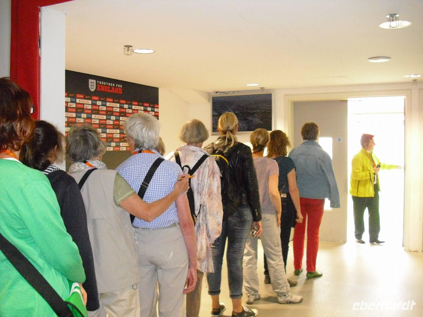 Wir besichtigten den Pressekonferenzraum mit 196 Sitzplätzen, die Mannschaftskabinen, standen im Spielertunnel und nahmen auf einem Teil der 400 Sitzplätze in der königlichen Loge Platz.