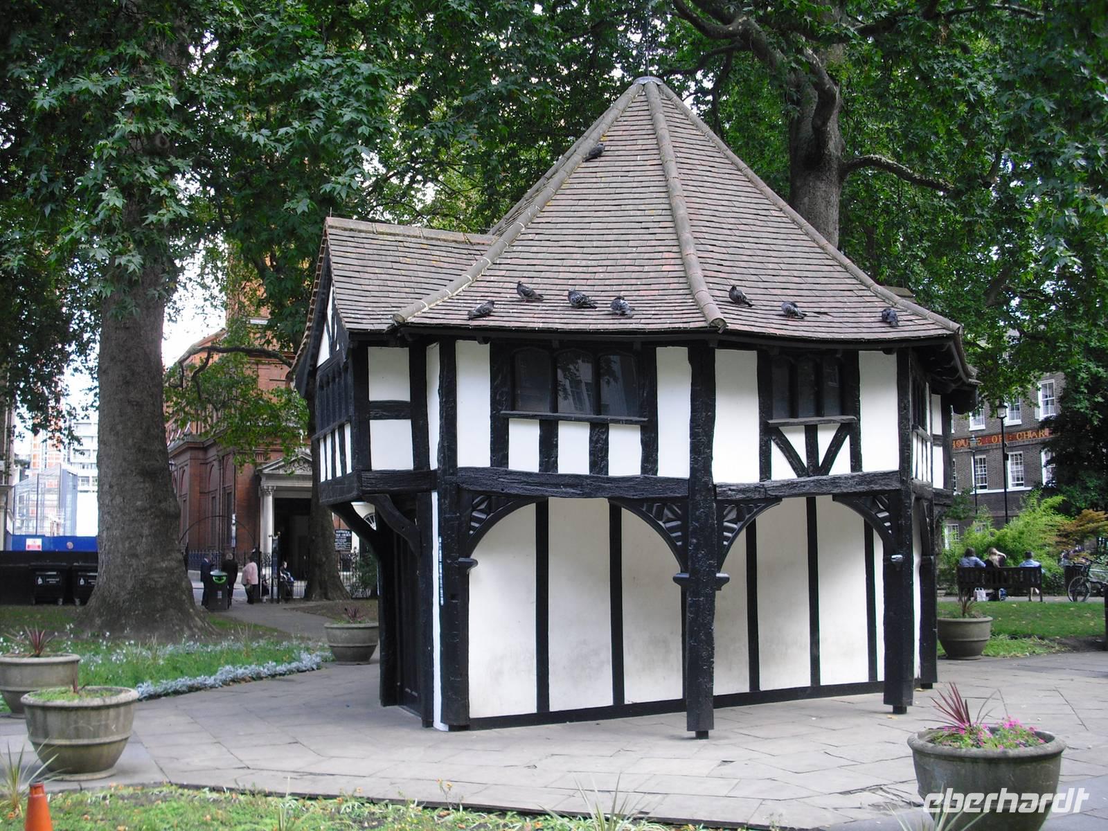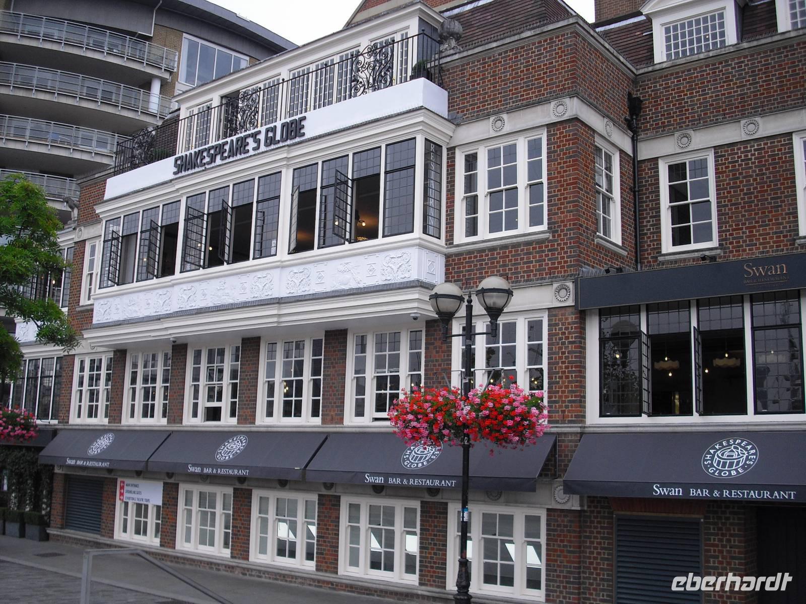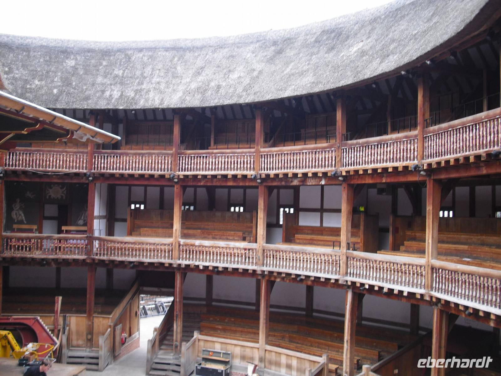 Der Bus brachte uns dann zur Southwark-Bridge und wir besichtigten SHAKESPEARES GLOBE THEATRE. Southwark, schon immer nur THE BOROUGH genannt, war Londons erster Vorort. Hier gab es jede Menge Tavernen, Gasthöfe, Postkutschenstationen für fahrendes Volk.Und nach mühsamer Fahrt wollte man Müßiggang, Erholung und Unterhaltung. THE BOROUGH entwickelte auf diese Weise ein Markenzeichen, die vier P (PUBS, PRISONS, PROSTITUTES, PLAYHOUSES). Es war sozusagen der richtige Ort für das GLOBE THEATRE, an dem Shakespeare beteiligt war und wo seine Stücke aufgeführt wurden und nunmehr im 1996 eröffneten neuen Globe Theater aufgeführt werden. Nach dem großen Stadtbrand 1666 in London ist das Theater das erste wieder in Holzfachwerk errichtete Gebäude.