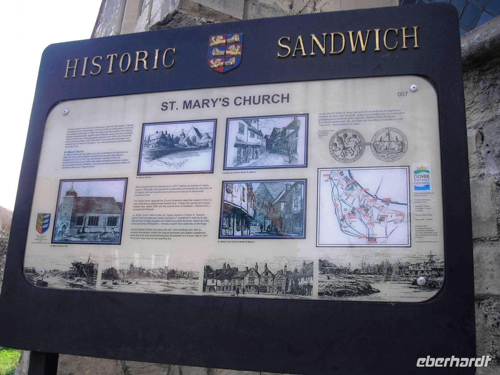 Nach einer kleinen Mittagspause gelangten wir nach Sandwich, einst wichtigster Hafen Englands mit einer blühenden Handelstradition.Die Stadt ist mit berühmten Namen verknüpft, so auch mit John Montagu- 4.Earl of Sandwich. Er soll 1762 das Sandwich am Spieltisch erfunden haben, als er nach einer gebratenen Fleischscheibe zwischen zwei Brotscheiben verlangte. Er war zu faul, das Spiel zu unterbrechen.