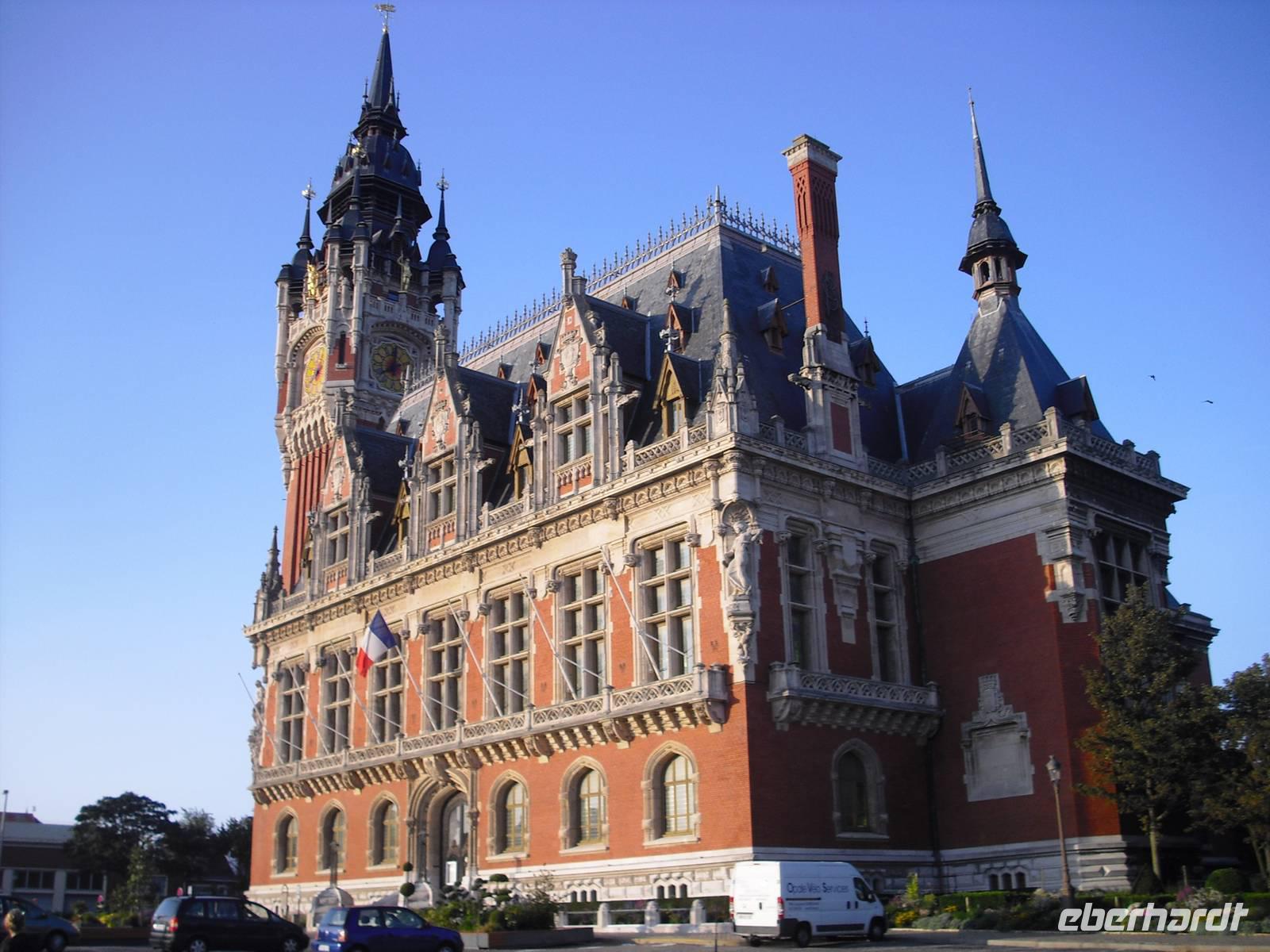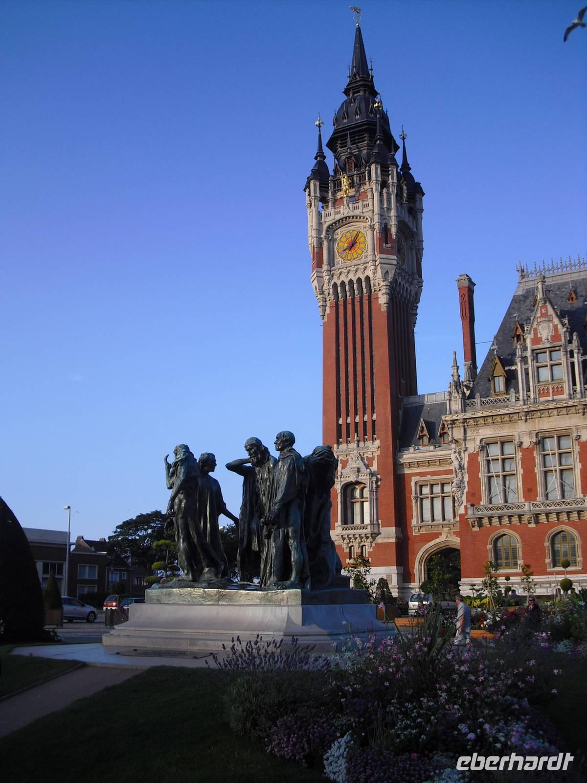 Es lohnte sogar noch ein Fotostopp vor dem Rathaus von Calais mit wunderschöner Bepflanzung und dem Denkmal der Bürger von Calais.