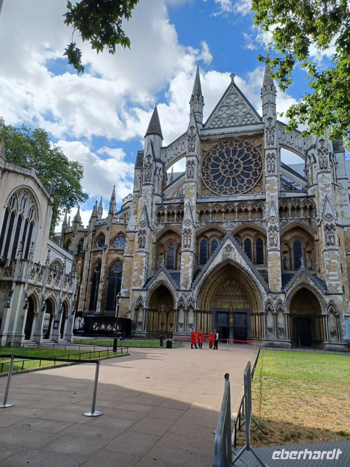 Am heutigen Morgen begrüßen uns ein blauer Himmel und strahlender Sonnenschein. Wir laufen zur nahegelegenen U-Bahnstation und sind schon ziemlich sicher bei der Verwendung der Oystercard. Am Parliament Square werden wiederum viele Fotos vom Big Ben, dem Parlamentsgebäude und der Westminster Abbey gemacht. Dann gehen wir nur wenige Meter vorbei am Churchill Museum und den Cabinet War Rooms. Hier residierte und regierte der ehemalige Premierminister Sir Winston Churchil während des 2. Weltkrieges. Ganz in der Nähe können wir das Haus mit der Adresse von Downing Street Nummer 10 zu sehen. Es wird streng bewacht, sodass wir nicht bis zur Haustür gehen können. Gegenüber auf der anderen Straßenseite befindet sich das Banqueting House. Dieses ist dadurch bekannt, dass hier im Januar 1649 der englische König Charles I. geköpft wurde. Er wollte ohne Parlament regieren und wird u.a. als Grund für die bürgerliche Revolution unter Führung von Oliver Cromwell angesehen. Nach dessen Tod wurde der Sohn von Charles I. 1660 König und ging als Charles II. in die Analen der Geschichte ein. Dann laufen wir auf die andere Straßenseite, wo sich die Horse Guard befindet und wiederum herrliche Fotomotive bietet. Über den Innenhof der Horse Guard Houses schauen wir vom Paradeplatz auf die Rückfront der Downing Street und auf der anderen Seite auf die Admiralität, von der Funkverbindungen zu allen Schiffen des Vereinigten Königreiches bestehen sollen. Wir passieren diesen Platz, den viele aus dem Fernsehen kennen, wenn die Parade zum Geburtstag von der ehemaligen Königin Elisabeth II. übertragen wurde und unter dem Namen „Trooping the Colour“ bekannt ist. Der folgende Spaziergang durch den St. James`s Park muss ziemlich rasch erfolgen, da wir zur Wachablösung am Buckingham Palace wollen. Der schöne Park beherbergt viele Wasservögel, Eichhörnchen und ist mit wunderschönen bunten Blumen bepflanzt. Wir hören schon Marschmusik von der Mall, der großen Prachtstraße vom Trafalger Square zum Buckingham Palast verlaufend. Einige Gäste denken schon, dass wir die Wachablösung verpasst haben. Sie bleiben einfach am Straßenrand stehen und wagen nicht, sich durch die vielen Menschen bis zum Buckingham Palast „vorzuarbeiten“. Die Atmosphäre ist schon beeindruckend, wie sehr sich die Menschen aus aller Welt noch heute für die Traditionen des englischen Königshauses interessieren. Nachher treffen wir uns wieder und laufen am Friary Court Balcony vorbei, von dem jeweils der neue König verkündet wird. Durch den Green Park laufen wir zum Bus, mit dem wir zur Royal Albert Hall fahren. Hier warten schon die 2 Guides, die uns durch das berühmte Opernhaus führen, wo zu Zeit bis September noch die Proms stattfinden. Bei diesem weltweit berühmten Musikfestival treten täglich unterschiedliche Künstler und Orchester auf. Neu ist für uns, dass man die Musikdarbietungen für nur 8 GBP vom Balkon aus verfolgen kann. Nachher besuchen wir noch das berühmte Kaufhaus Harrods und kaufen ein kleines Souvenir für unsere Freunde. Bevor es ins Hotel geht lassen wir uns noch ein Bier im Pub in der Victoria Station schmecken. Der Tag war wieder reich an Erlebnissen und nun wir gehen müde ins Bett. Mal sehen, was uns morgen erwartet.