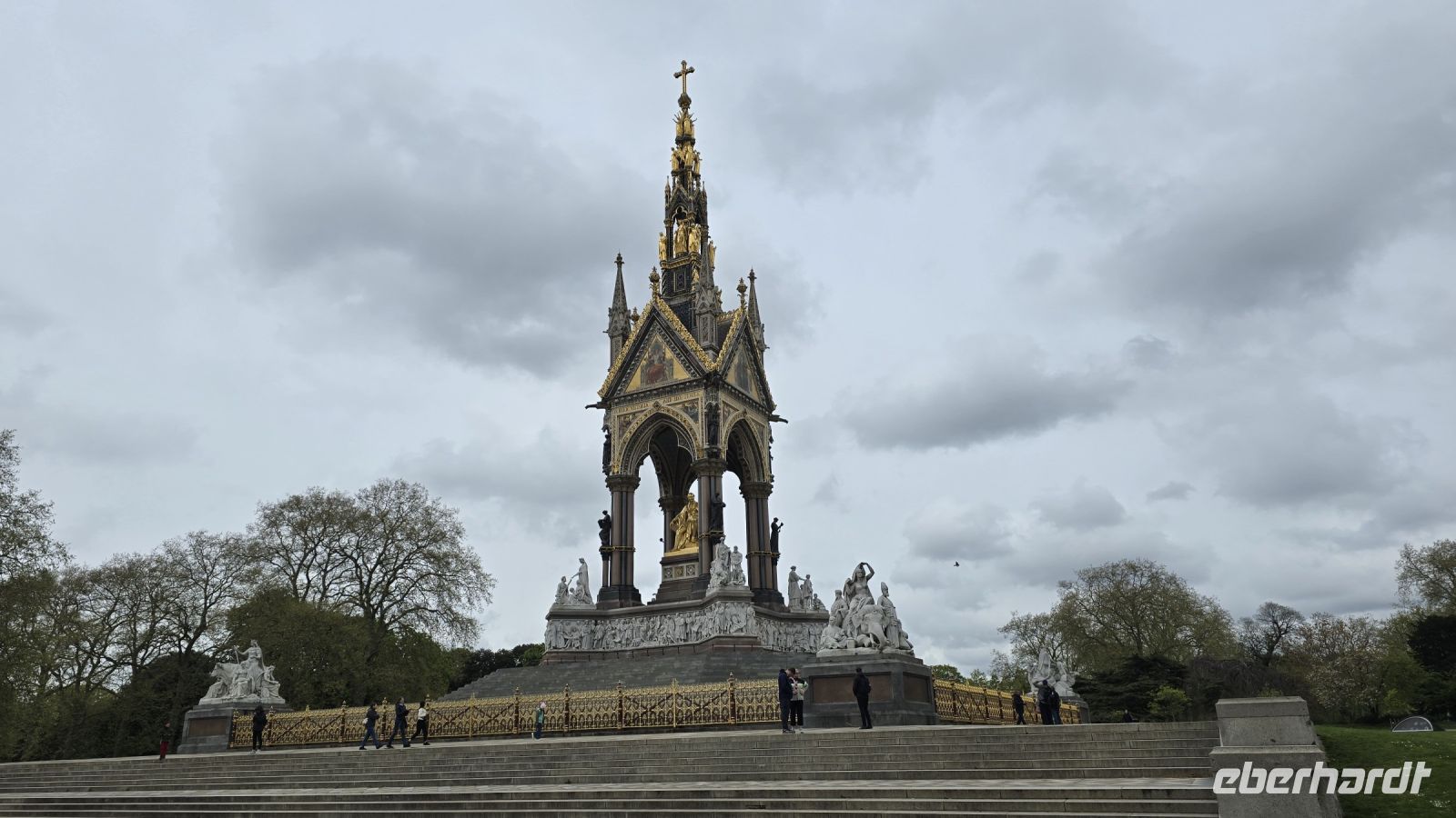 Heute vormittag besuchen wir eine mehr als 700 jährige Zeremonie: Die Wachablösungam Buckingham Palast. Also starten wir nach dem schon gewohnt guten Frühstück gemeinsam mit der Tube nach Westminster. Ein erster Fotostopp mit Big Ben und dann spazieren wir die Parliament Road entlang. Passieren den Eingang zu Downing Street 10, dem Sitz des Premierministers, etliche Regierungsgebäude und Denkmäler für die Gefallenen der Kriege... so erreichen wir Horse Guards Parade. Hier stand einst der Königspalast mit mehr als 1500 Zimmern. Als der durch ein Feuer vernichtet wurde entstand eine riesige freie Fläche mitten in der Stadt, die nicht wieder bebaut wurde. Dieser Platz wird heute z. B. für die offizielle Geburtstagsfeier des Königs im Juni genutzt- Trooping the Colour. Auch wenn der tatsächliche Geburtstag gestern war. Rings um den Platz wurden Tribünen aufgebaut für das nächste Grossereignis, wir spazieren hinüber und schlendern durch den St. James's Park. Einer der schönsten Parks der Stadt. Bis zum Victoria Memorial vor dem Buckingham Palast gehen wir gemeinsam und ich erläutere den Ablauf der Wachablösung. Wie die alte Wache des St. James's Palast zum Buckingham Palast zieht, die neue Wache, die von den Wellington Barracks mit Musikkapelle kommt und ebenfalls zum Buckingham Palast marschiert. Hier erfolgt die Inspektion und die symbolische Schlüsselübergabe, die neue Wache marschiert nun zum St. James's Palast bzw. bleibt im Buckingham Palast und die alte Garde marschiert zu den Wellington Barracks. So sucht sich jeder einen guten Platz und wir verfolgen die Zeremonie individuell. Es ist gar nicht so einfach, zwischen den vielen Menschen hier dann den vereinbarten Treffpunkt zu erreichen, zumal die Straße nochmals abgesperrt wird für einen einzelnen Gardesoldaten...aber alle sind pünktlich und dann spazieren wir gemeinsam am Green Park entlang den Constitution Hill hinauf. Unser Ziel ist die berühmte Speakers Corner im Hyde Park. Mizt einem kleinen Abstecher zum See, Serpentine genannt, ereichen wir den nordöstlichen Zipfel des Parks und bald schon leuchtet das grüne Dach des kleinen Pavillons auf. Heute allerdings ist kein Sprecher hier also kehren wir um und spazieren zwischen Hyde Park und Kensington Gardens zur Royal Albert Hall. Zunächst aber staunen wir über das Albert Memorial gegenüber der Royal Albert Hall. Queen Victoria hatte ihren Mann sehr geliebt und als er mit nur 42 Jahren starb blieb sie den Rest ihres Lebens in großer Trauer. Ihn zu ehren ließ sie dieses Memorial errichten. Albert, der eher bescheiden und sparsam war, erhielt nun das größte Denkmal des Landes, vergoldet und aufwendig gearbeitet... Auch die Halle für Kunst und Wissenschaft- wie sie korrekt hieß- erhielt seinen Namen. Schließlich war er es, der die Idee dazu hatte und mit den Einnahmen der 1. Expo, der Weltausstellung konnte er seine Vision von einem Zentrum für Bildung, Kunst und Wissenschaft umsetzen. Er ließ das Land ringsherum aufkaufen und es entstand ein ganzes Viertel mit Schulen, wissenschaftlichen Einrichtungen und der heute berühmten Royal Albert Hall. Leider erlebte er selbst die Einweihung nicht mehr. Wir dürfen uns heute hier umsehen und mit einem Guide erleben wir die Halle, dürfen in einer Loge Platz nehmen, einen Blick in die königliche Loge werfen, in das "Gin Tonic-Zimmer", in dem die königlichen Hoheiten ihre Gäste empfingen oder sich zurückziehen konnten. Wenn dessen Wände reden könnten...Als Höhepunkt erlebten wir eine Probe des königlich schottischen Orchesters für die Live Aufführung im Klassik-Radio heute Abend- WOW! Mit diesen tollen Eindrücken verabschieden wir uns voneinander in die Freizeit. Wer wollte spazierte mit mir zum Victoria&Albert Museum, der Eintritt ist wie überall in den Museen kostenfrei- auch das dank Prinz Albert, der durchsetzte, dass jeder Zugang zu Bildung haben muss. Das V&A, wie es auch genannt wird, ist die größte Sammlung von Kunst und Design der Welt, beeindruckend und begeisternd zugleich. Selbst das Cafe ist umwerfend. Am Abend dann treffen wir uns zum gemeinsamen Abendessen im Hotel wieder. Das Buffet ist wieder sehr lecker und so klingt dieser Tag ruhig aus. Allerdings noch nicht für zwei unserer Gäste- sie waren unterwegs zur ABBA Voyage. Bis morgen.