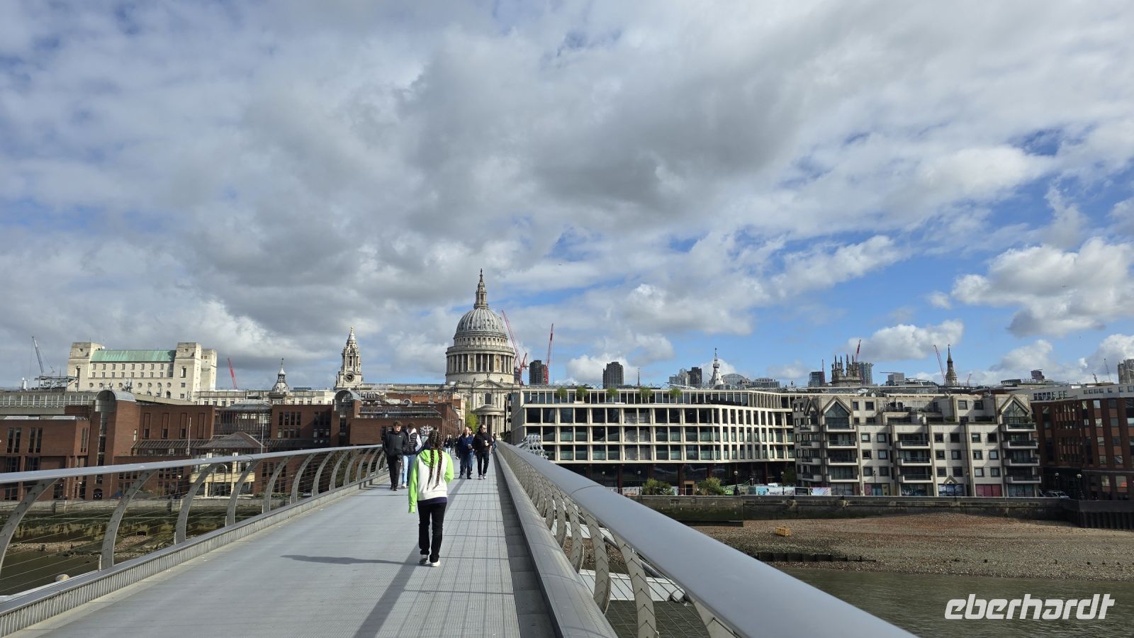Heute regnet es und es gibt nur sporadische Wolkenlücken. Das hält uns natürlich nicht davon ab, diese großartige Stadt weiter kennenzulernen. Mit der Tube geht es in die City of London. Das Meisterwerk von Sir Christopher Wren- die St. Pauls Kathedrale- möchten wir uns ansehen. Nach dem verheerenden Brand 1866, in dem zwei Drittel der Stadt zerstört wurden war er beauftragt worden, Kirchen und Gebäude wieder auzubauen. Zahlreiche Kirchen tragen daher seine Handschrift- der Höhepunkt ist aber zweifelsohne St. Pauls. Heute ist sie nach dem Petersdom in Rom die zweitgrößte Kathedrale Europas, die Kuppel mit ihrer Flüstergalerie kommt fast an den Petersdom heran. Ausgerüstet mit Audio Guides können wir uns umschauen, die 528 Stufen zur Flüstergalerie in der Kuppel und zur Goldenen Galerie in der Laterne auf der Kuppel hinaufsteigen. Belohnt wird das mit einer spektakulären Aussicht auf London. Immerhin war St. Pauls lange Zeit das höchste Gebäude der Stadt und dominierte die "Skyline". Wer wollte erkundete auch die Krypta mit den Gräbern u.a. von Sir Chistopher Wren oder Admiral Nelson. Im Nieselregen spazierten wir dann über die Millenium Bridge. Sie trägt auch den Namen "Wobbler-Bridge" also Wackelbrücke. Denn kurz nach ihrer Eröffnung mußte sie schon geschlossen werden, die Brücke schwankte ohne Ende. Heute kann man gefahrlos darüber gehen und so erreichen wir das südliche Themse-Ufer. Ein Spaziergang am Ufer entlang brachte uns zum Borough Market. Da mußten wir uns natürlich umsehen und so blieben wir für eine kurze Lunch Pause hier. Immerhin ist der Markt seit dem 13. Jahrhundert hier an dieser Stelle und einer der größten Märkte der Stadt. EinenBruchteil davon hatten wir gesehen- nun geht es hoch hinaus. Die Auffahrt auf The Shard steht an. Mit 310 Metern ist es das höchste Gebäude Westeuropas, die Konstruktion aus Stahl und Glas brachte ihm den Beinamen "The Shard"- die Scherbe- ein. Nach der pbligatorischen Sicherheitskontrolle ging es per Express-Fahrstuhl zunächst in die 33. Etage, hier hieß es umsteigen und schon jagen wir hinauf zur 68. Etage. Von hier aus hat man auf mehreren Etagen einen der schönsten Ausblicke auf London. Und auch das Wetter spielte mit, die Sonne ließ sich kurz blicken und so konnten wir den Blick auf die Stadt genießen. Individuell ging es dann zurück zum Hotel, wir kannten uns dank unserer Oyster Cards bereits bestens aus. Damit konnten wir so viel fahren, wie wir wollten- das Tageslimit auf der Karte verhinderte, dass wir mehr als 14 £ pro Tag für Fahrten bezahlten. Und so blieben alle weiteren Fahrten für uns kostenfrei und einer individuellen Erkundung der Stadt stand nichts im Weg. Auch heute beschloß wieder ein gemeinsames Abendessen im Hotel unseren Tag.