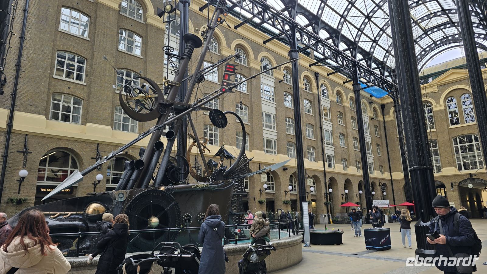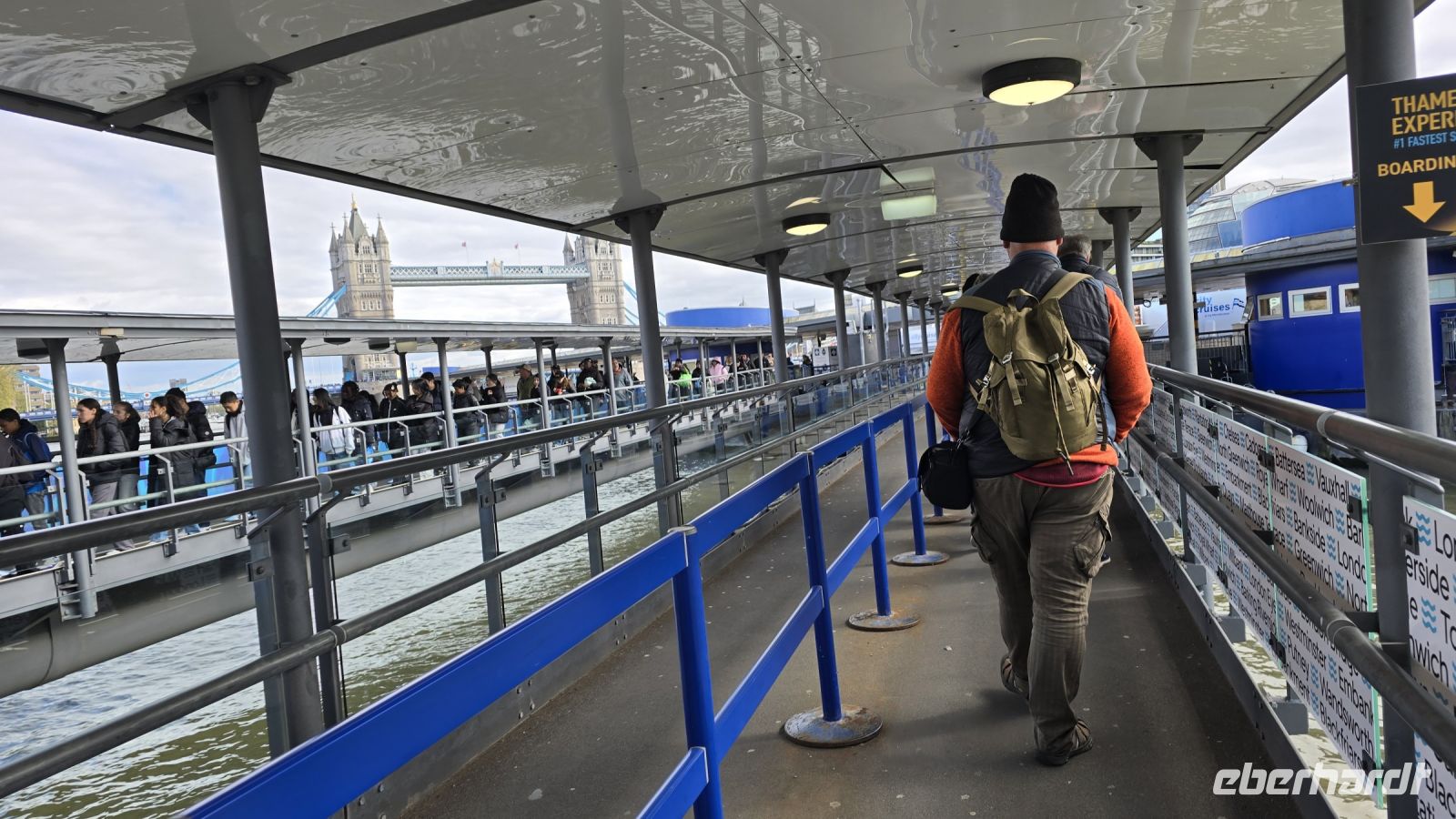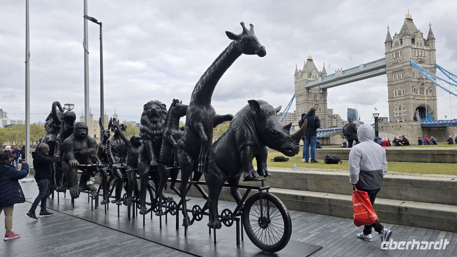 Heute nacht hat es aufgehört zu regnen und so können wir am Morgen die St. Pauls Kathedrale im Sonnenschein erleben, ebenso wie den Spaziergang über die Millennium-Bridge. Was für ein schöner Blick auf die Tower Bridge heute. Am Südufer der Themse befindet sich das Shakespeare Theater The Globe. Es ist bereits der dritte Bau, das erste Theater brannte ab, man hatte ganz theatralisch bei einer Aufführung eine Kanone abgeschossen, das Strohdach fing Feuer und zerstörte den Bau komplett. Das war 1613. Der nachfolgende Bau aus Stein sah noch etliche Aufführungen, allerdings wurde dieses Theater 1642 geschlossen- Anordnung einer äußerst puritanischen Regierung, der alle Spielstätten ein Dorn im Auge waren. Erst Mitte des letzten Jahrhunderts beschloß Sam Wanamaker, ein amerikanischer Schauspieler, das Theater wieder aufzubauen. Er wollte es eigentlich in London besuchen und war entsetzt, dass es keines mehr gab. So wurde es sein Lebenswerk, das Theater originalgetreu wieder aufzubauen. 1997 schließlich wurde es eröffnet, seitdem erfreut es sich großer Beliebtheit. Wir haben eine Führung durch das Haus und dürfen im Zuschauerraum Platz nehmen. Es läuft gerade die Generalprobe für das Stück "Viel Lärm um nichts", das ab morgen aufgeführt wird. Wir dürfen zusehen und haben tolle Plätze: ganz oben auf dem Rängen und trotzdem ganz nah an der Bühne. Das Globe ist so aufgebaut, dass man nie weiter weg als 20 Meter von der Bühne entfernt sitzt (oder steht). Unsere Gästeführerin erzählt uns dazu Geschichten von Shakeapeare und seinen Schauspielern, wie sie quasi sein Theater "klauten" und an anderer Stelle wieder aufbauten. Das war relativ einfach, es gibt nur Holznägel, die die Balken zusammenhalten und die kann man ganz einfach ziehen und das Theater in seine Einzelteile zerlegen. Es heißt, Shakespeare hätte sich über die horrenden Mietpreise für das Gebäude so geärgert, dass er einen Passus seines Vertrages nutzte, indem er alles, was er tragen konnte, mitnehmen durfte...So verging die Zeit wie im Fluge und wir verlassen The Globe. Wieder spazieren wir am Südufer der Themse entlang. Bestaunen The Hays, eine Galerie mit markantem gläsernen und gewölbten Dach. Etliche lebensgroße Tier-Skulturen ziehen unsere Aufmerksamkeit auf sich, es sind Werke des Künstlerehepaars Gillie und Marc. Sie erinnern die Menschen daran, dass viele Arten gefährdet sind und ihre Lebensgrundlage zerstört wird. Wir freuen uns über die Skulpturen, natürlich darf das eine oder andere Foto mit ihnen nicht fehlen. Dann müssen wir dem doch unangenehmen kalten Wind Tribut zollen. Wir entern das "Hornimon", einen urigen Pub, und wärmen uns mit einem Tee oder Kaffee auf. Dann spazieren wir weiter, der Stadtteil heißt Southwalk, diesen Namen trägt auch die Kirche, die gegenüber The Shard steht und für einen wunderbaren Kontrast Tradition-Moderne sorgt. Individuell verbringt jeder seine Lunch-Pause, natürlich nicht ohne vorher unseren Treffpunkt ausgemacht zu haben: Genau gegenüber vor dem Tower of London. Über die Tower Bridge geht es ans Nordufer der Themse. In 42 Metern Höhe verbinden 2 Stege die Türme der Brücke, man sieht gut die gläsernen Böden, auf denen man entlang gehen kann und den Blick nach unten auf die Brücke und die Themse werfen kann. Wir schauen uns noch St. Katharina´s Dock an, eine kleine Marina hinter dem Tower Hotel. Dann geht es zum Tower. Mit unseren Tickets können wir ohne Wartezeit dieses beeindruckende Ensemble erleben. Am Traitor´s Gate erzähle ich von der Geschichte und woher dieses Tor seinen Namen hat: Man hatte hier einen direkten Zugang zum Tower von der Themse aus und Gefangene wurden aus Westminster hierher mit dem Boot gebracht. Da es sich meist um höher gestellte Personen handelte, denen Verrat vorgeworfen wurde - die hier ihre Strafe verbüßen sollten oder hingerichtet wurden- bekam das Tor seinen Namen: Verräter-Tor. Dann gehen wir zu den Raben- Wenn sie den Tower verlassen gehen die Monarchie und das Land zugrunde- so die Prophezeihung. Also gibt es immer 6 Raben im Tower of London und einer der Wachen, der Yeoman Warders, ist speziell beauftragt, sich um sie zu kümmern. Hier stand früher auch die Große Halle. Nur noch Mauerreste sind übrig von ihr. In ihr wurde u.a. Ann Boleyn, die zweite Ehefrau Heinrich VIII. wegen angeblichem Inzest und Hochverrats verurteilt. Für ihre Hinrichtung wurde eigens ein Henker aus Frankreich geholt, der es beherrschte, mit dem Schwert hinzurichten. Der Hinrichtungsplatz war quasi vor der großen Halle. Heute erinnert eine grüne Glasplatte an diese Stelle. Im Laufe der Jahrhunderte war der Tower vieles: Gefängnis, Hinrichtungsstätte, Königsresidenz, aber auch Münzprägestätte, Ort der Kronjuwelen und sogar ein Zoo. Von der militärischen Geschichte erzählt die Ausstellung im White Tower, dem ältesten Teil des Towers of London. Von ihm ist es nicht weit bis zum sogenannten Waterloo-Block. Hier werden die Kronjuwelen aufbewahrt und die wollen wir uns natürlich ansehen. Ab jetzt gehen alle individuell auf Erkundungs-Tour. Der restliche Tag ist frei und auch das Abendessen ist heute individuell. Wer wollte folgte mir am Nachmittag zu einer Bootsfahrt auf der Themse nach Greenwich. Mit dem Uber-Boot geht es rasant übers Wasser. Die "Cutty Sark", einst der schnellste Teesegler der Welt, steht hier am Pier. Der Name bedeutet ungefähr soviel wir "kurzes Hemdchen". Und das hatte die Hexe Nannie an, als sie Tam verfolgte und doch nur den Schweif seines Pferdes zu fassen bekam. Robert Burns hatte die Geschichte in seinem Tam o' Shanter verewigt. Uns so erklärt sich auch die Gallionsfigur am Bug des Schiffes. Wir spazieren weiter, druch das hbsche Greenwich und laufen hinauf zum Royal Observatory, zum Königlichen Observatorium. Leider wird gerade gebaut und so müssen wir einem Umweg in Kauf nehmen. Als Lohn erwartet uns oben aber ein spektakulärer Blick auf London und natürlich der Prime-M