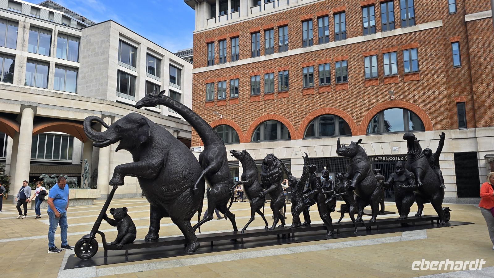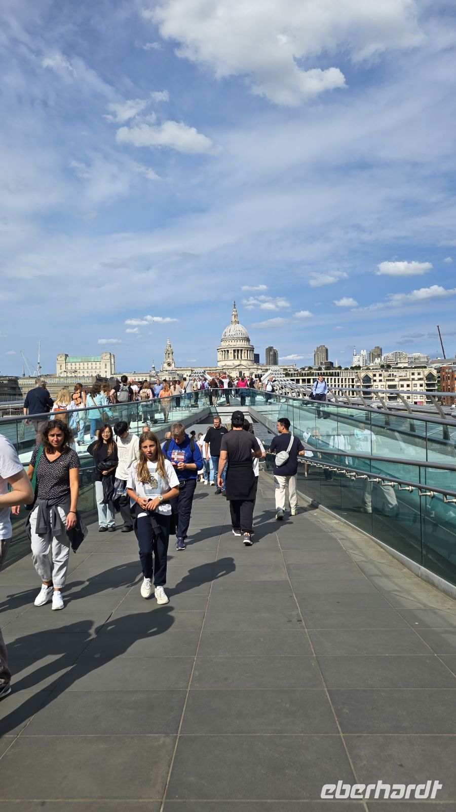 Heute heißt es: geschickt unterwegs sein: ab 11 Uhr ist eine Großdemo in Westminster angekündigt, die Metro fährt nicht und Busse werden am Vormittag auch nicht durchkommen. Unser Besuch der Houses of Parliament war gestern Abend aufgrund einer Sicherheitspanne abgesagt worde, also: umplanen. Wir entscheiden uns für Trafalger Square mit seiner Nationalgalerie und Covent Garden, einem alten, viktorianischen Marktareal. Dorthin fährt am morgen auch unser Bus- also, alles richtig gemacht. An der Nationalgelerie verabscheiden wir uns (vorerst) von den Gästen, die hier bleiben möchten und spazieren weiter zum Covent Garden. Es war einst ein Gemüse- und Obst-Markt, heute läßt es sich durch die vielen Stände wunderbar bummeln, Cafes laden zum Verweilen ein und Straßenkünstler begeistern ihr Publikum (mal mehr, mal weniger). Eigentlich dachten wir, dass wir ab hier mit dem Bus weiter können- nix da. Also zu Fuss zur St. Pauls Kathedrale. Das Meisterwerk von Sit Christopher Wren wollen wir uns ansehen und ausgerüstet mit Tickets und Audio Guides kann jeder individuell entscheiden: nach oben steigen auf die Flüstergalerie und vielleicht noch höher bis zur Laterne? Oder lieber am Boden bleiben und in die Krypta hinab? Auf jeden Fall nehmen erst einmal die Kuppel und der Chor uns gefangen. In der Krypta liegen berühmte Persönlichkeiten wie Admiral Nelson oder General Wellington. Auch der Architekt hat hier seine letzte Ruhe gefunden. Eine Kapelle in der Krypta wird gerade für eine traditionelle Hochzeit abgesperrt, alle Gäste erscheinen in historischen Gewändern... Wow. Nach der Kathedrale noch ein kleiner Abstecher zum benachbarten Paternoster-Platz. Hier stehen Figuren von einem australischen Künstlerpaar: Gilli und Marc. Die lebensgroßen Tiere erinnern uns, dass wir alle nur eine gemeinsame Erde haben. Ein Foto muss sein und dann geht es weiter durch die Stadt, wir überqueren die Millennium Bridge, auch ein Projekt der Jahrtausend-Wende wie das Riesenrad. Allerdings wackelte sie so sehr bei der Eröffnung, dass sie gleich wieder geschlossen wurde und aufwändig saniert werden musste. Nun, wir konnten sie problemlos überqueren und spazieren nun am Südufer der Themse entlang. An The Tate, der Galerie moderner Kunst im alten Kraftwerk vorbei und am The Globe- dem Shakespeare Theater. Am ältesten Markt der Stadt- dem Borough Markt ist kurz Zeit für einen Bummel, dann geht es schon weiter zum nächsten Ziel: The Shard, von den Londonern "die Scherbe" genannt. In 2 Etappen geht es hinauf zum 68. Stockwerk und dann noch einmal einige zu Fuss. Bis zum 72. Stockwerk kann man hinauf und die unfassbare Aussicht auf diese riesige Stadt genießen. Und wir haben den perfekten Zeitpunkt erwischt: die Tower Bridge wird gerade geöffnet. Besser geht es nicht. Wir können uns in Ruhe umschauen, halten Ausschau nach dem Riesenrad, der Kathedrale, selbst die Cutty Sark in Greenwich ist zu sehen. Am späten Nachmittag treffen wir uns alle am Ausgang und loten unsere Möglichkeiten für die Heimfahrt aus. Wir haben Glück, die Metro-Linie Jubilee Line fährt, wenn auch übervoll. An der Baker Street steigen wir um in die Circle Line und fahren bis Shepherds Bush Market. Von hier ist es nicht mehr weit bis zum Hotel. Ein gemeinsames Abendessen bringt uns alle noch einmal zusammen und auch unser Geburtstagskind heute bekommt ihr Ständchen und ein kleines Erinnerungsgeschenk.