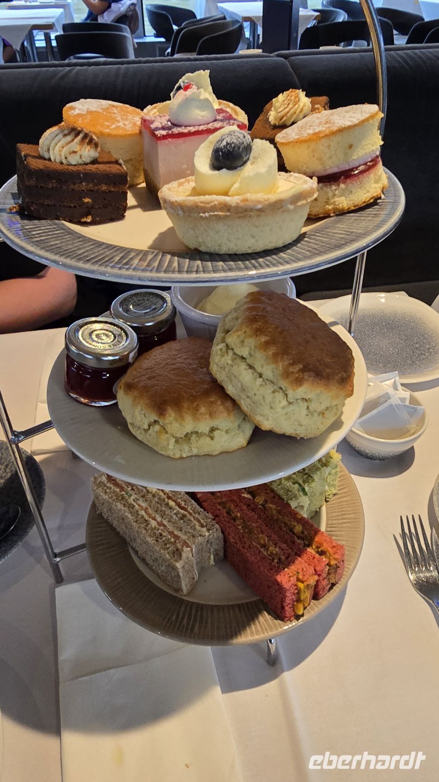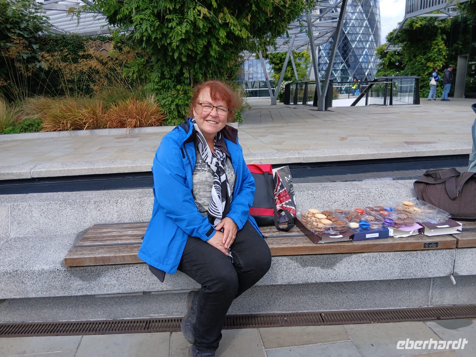 Nach einem Frühstück, das keine Wünsche offenließ, starten wir gut gelaunt und erwartungsfreudig in den Tag. Zuerst bekommen alle ihre Audio-Geräte und der Test verläuft positiv. Heike- unsere Stadtführerin- kommt zu uns in die Lobby und auch unser Bus ist rechtzeitig da. Es kann losgehen! Natürlich erst einmal durch Kensington, wir erhaschen einen kurzen Blick auf den Kensington Palast in den gleichnamigen Gärten, dann geht es an der Royal Albert Hall und dem Albert Memorial vorbei, dem Hyde Park und dem Wellington Arch. Am Buckingham Palast können wir aussteigen für Fotos- die werden heute gut, morgen sind ungleich mehr Menschen hier, also nutzen wir die Chance. Dann geht es ein Stück weiter die Themse entlang, dann über die Brücke ans Südufer. An der Albert Bank ist ein perfekter Platz, um die Houses of Parliament zu fotografieren- sie strahlen geradezu in der Morgensonne. Über die Westminster Bridge geht es zurück auf die Nordseite und durch das Regierungsviertel Whitehall zur City of London- und jetzt beginnt es auch zu regnen- gut, dass wir im Bus sitzen. Pünktlich zum Aussteigen in der nähe der St. Pauls Kathedrale hört es wieder auf. Gutes Timing! Wer mag folgt mir in den Reflexion Garden für tolle Fotos von der Kuppel der St. Pauls Kathedrale, dann geht es hinauf auf den Dachgarten des Einkaufszentrum New Change One. WOW! Was für ein Ausblick, auch wenn noch einige dunkle Wolken das Bild trüben- es wird immer besser. Ich nutze die Gelegenheit und erstehe für alle ein paar Kleinigkeiten gegen den Hunger zwischendurch. Weiter geht unsere Fahrt- wieder auf die Südseite der Themse denn wir wollen auf jeden Fall über die Tower Bridge fahren. Ein absolut ikonisches Bauwerk. Am Tower of London geht es vorbei und dann verabschieden wir uns schon von Heike und unserem Fahrer. Es ist Mittag, wer mag verabschiedet sich in die Lunch-Pause, andere folgen mir zu einem Spaziergang zu einem besonderen Dachgarten: The Garden at 120, mitten im Finanzzentrum gelegen und trotzdem keine 15 Minuten vom Tower. Ein kleiner Snack tut gut und alle genießen die Aussicht, die Wolken verziehen sich mehr und mehr und machen Platz für die Sonne. Am frühen Nachmittag treffen wir uns am Pier und checken auf unser Schiff ein. Es bleibt aber nicht bei der Fahrt auf der Themse- ein ausgesprochen leckerer Afternoon Tea erwartet uns. Sandwiches, Scones mit Clotted Cream und Erdbeermarmelade und kleinen Pralines zum Abschluß. hmmm. So entdecken wir London von der Themse aus, sehen noch einmal die Houses of Parliaments und den Elisabeth-Tower mit Big Ben, dann geht es retour und Richtung Greenwich. Highlight natürlich die Fahrt unter der Tower Bridge hindurch. Am späten Nachmittag nehmen wir dann die Circle Line bis Notting Hill Gate, steigen in den Bus 148 um- der bringt uns direkt bis vor´s Hotel. So langsam orientieren sich alle und wissen sich mit Metro bzw. Bus zurechtzufinden. Ein gemeinsames Abendessen beschließt wieder unseren Tag aber unser Appetit hält sich nach dem Afternoon Tea in Grenzen und fällt weniger üppig aus. Also dann, bis morgen.
