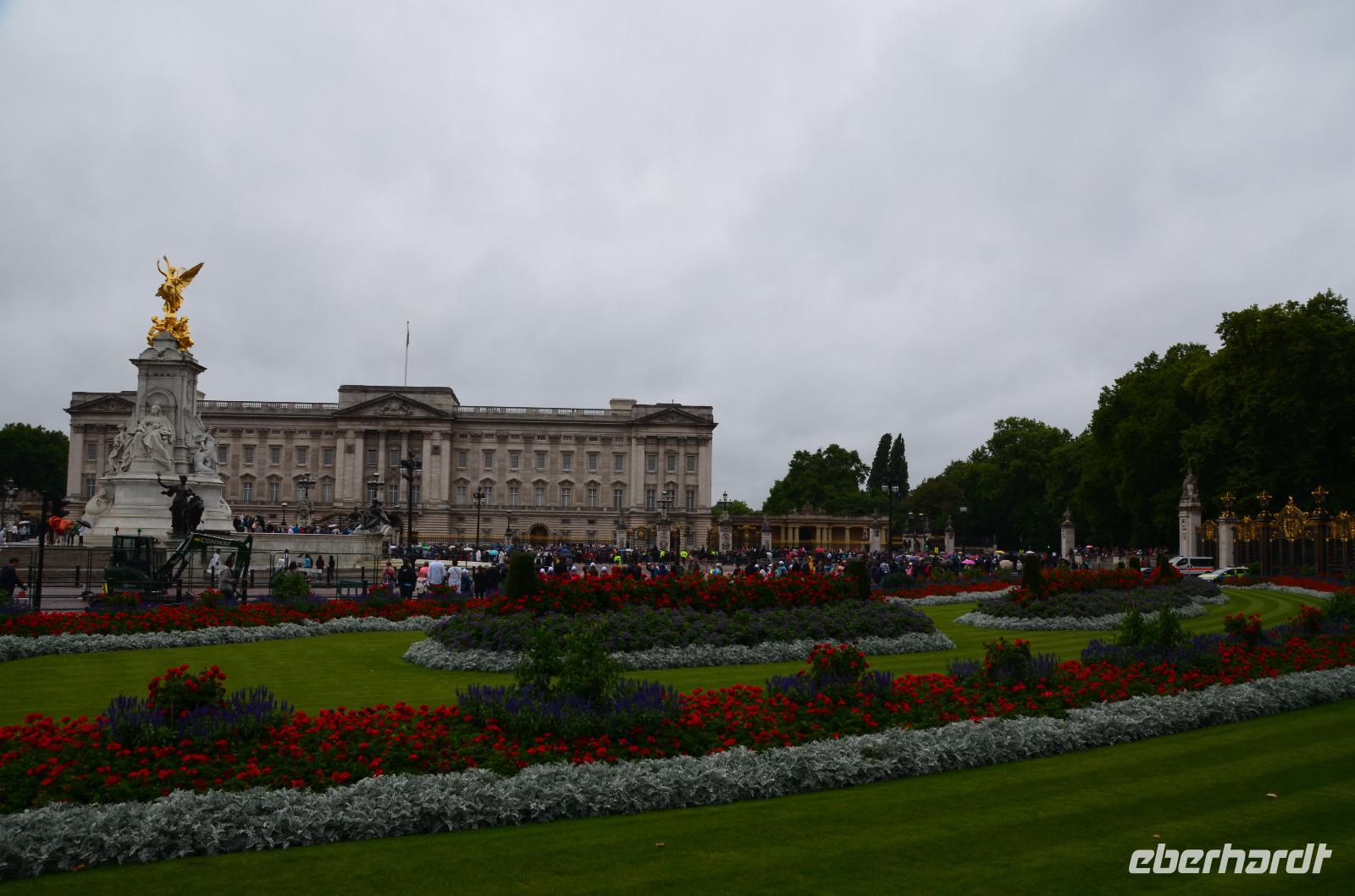 Danach, um 11:45 Uhr treffen wir uns wieder und gehen zum Einlass in den Buckingham Palace, denn die Besichtigung der State Rooms steht jetzt auf dem Programm, mit Audioguides.