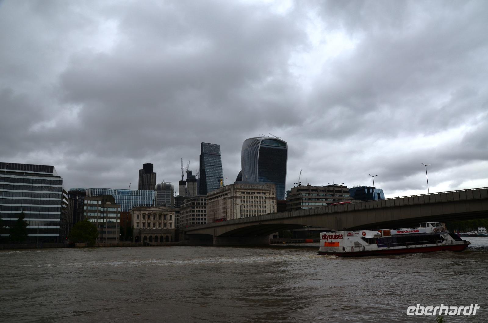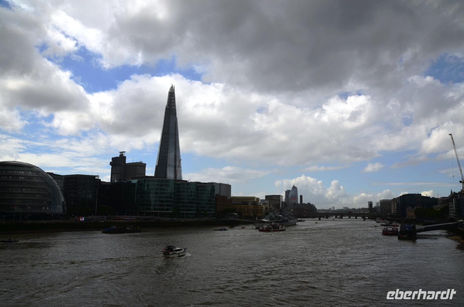 Es regnet uns stürmt jetzt, wir gehen trotzdem zum Themseufer und auf die Tower Bridge, schließlich müssen wir einmal dort gewesen sein.