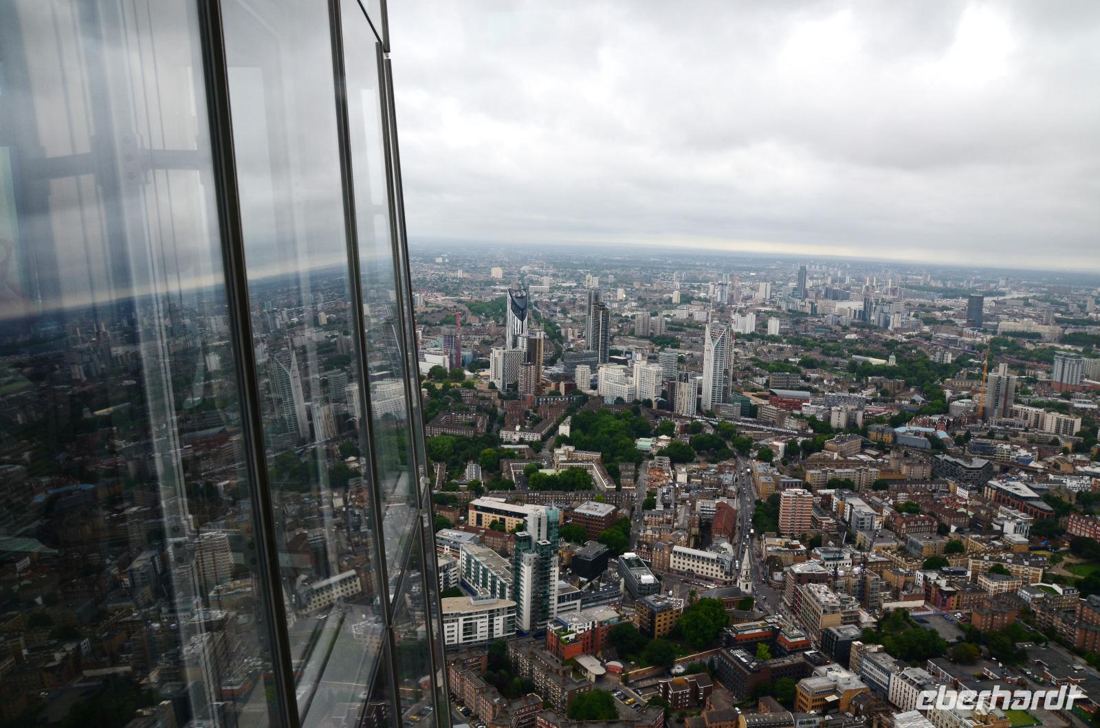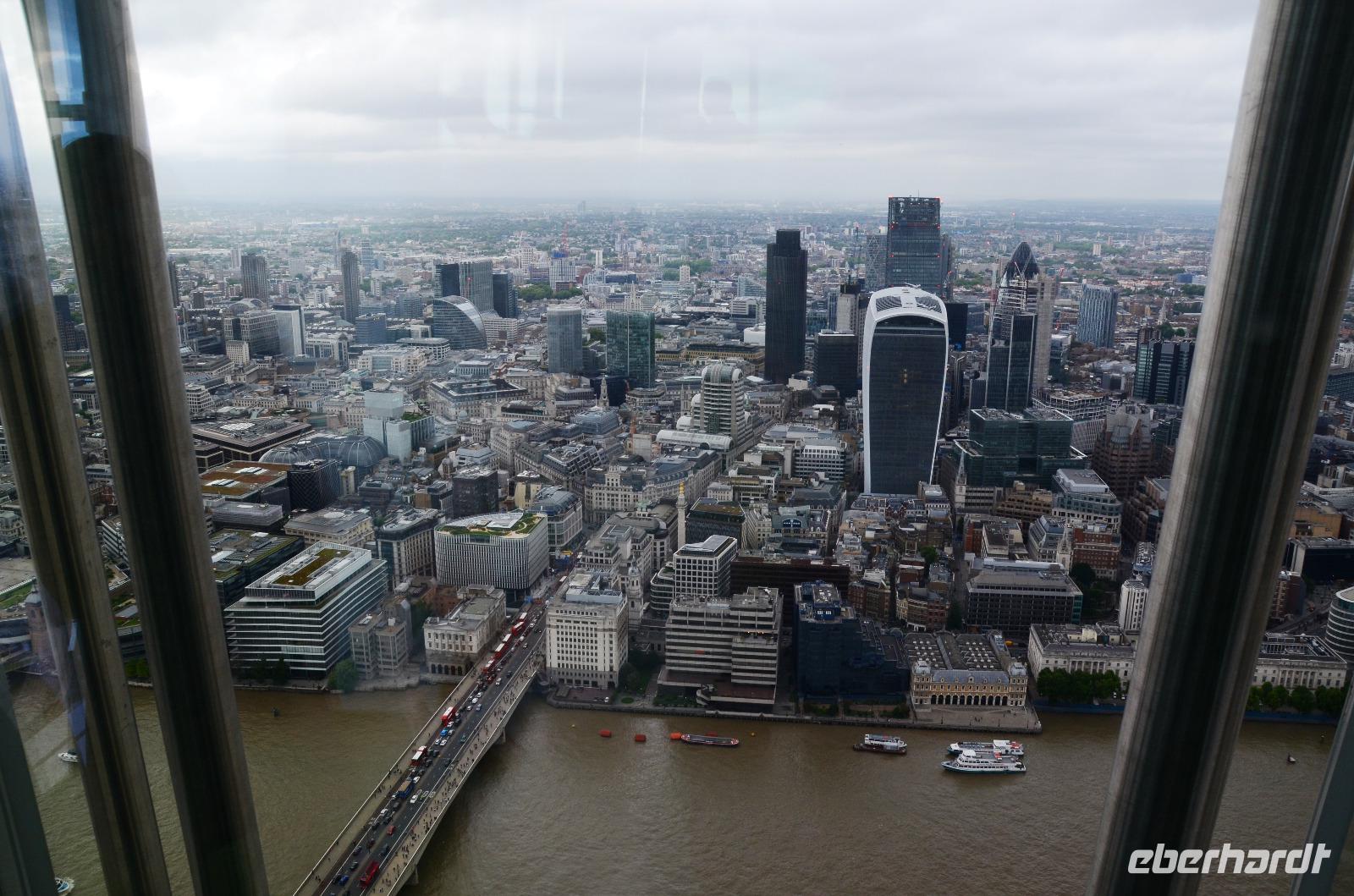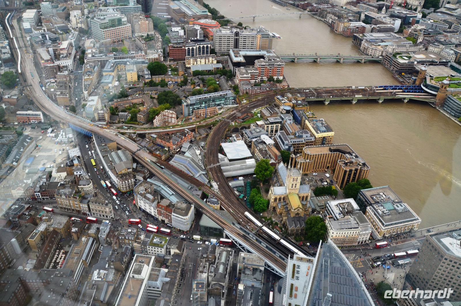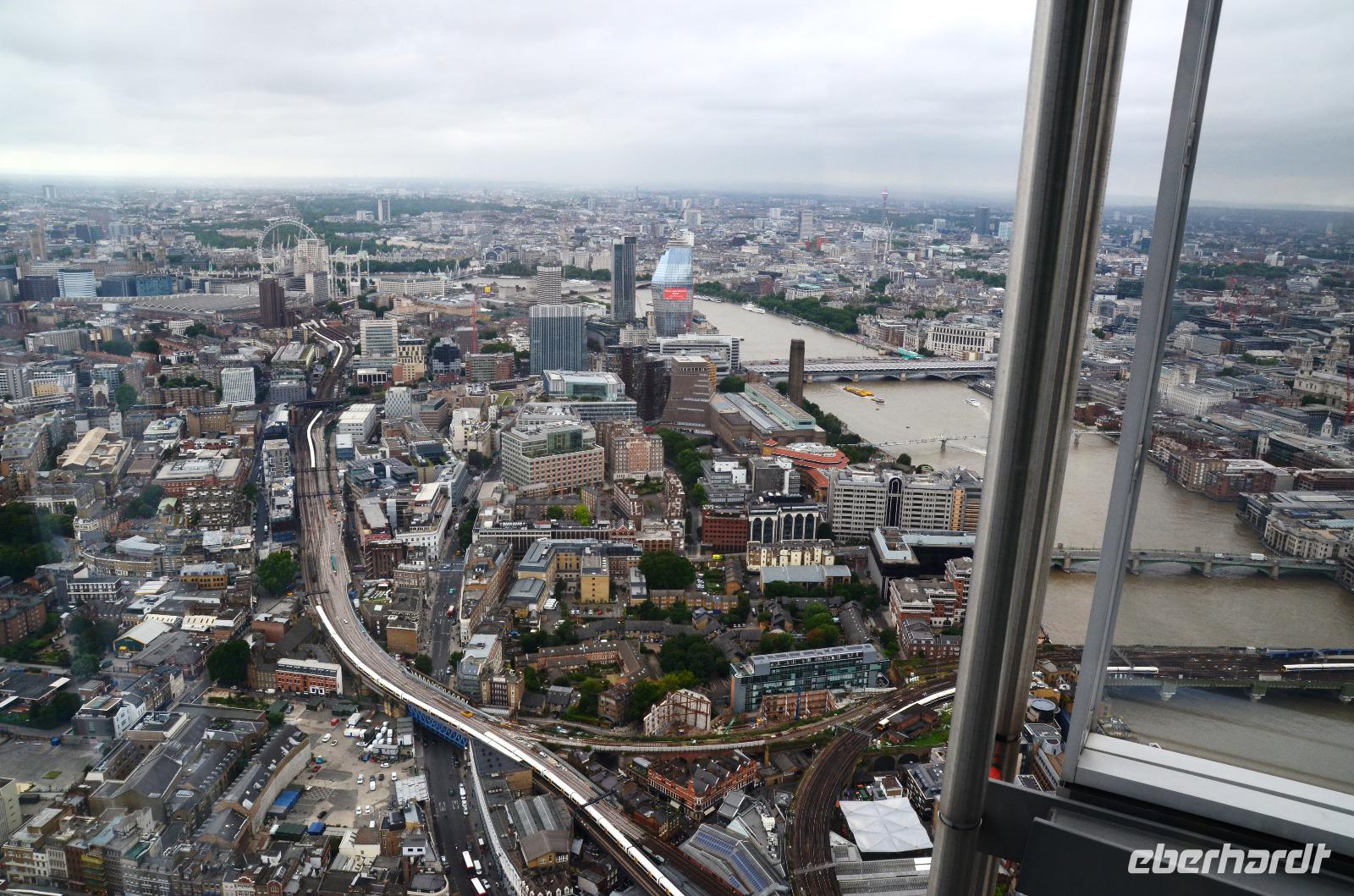 Mit dem Bus 24 fahren wir zurück zur Westminster Station und von hier mit der Jubilee Line nach London Bridge. Durch die Shard-Galeria gelangen wir schnell zum „Shard"-Hochhaus - machen die gemeinsame Auffahrt und genießen die tolle, einfach überwältigende Aussicht mit einem Glas Sekt. Im Fischrestaurant am Borough Market klingt der schöne Tag bei einem gemeinsamen Umtrunk und der herzlichen Verabschiedung von Ulla aus.