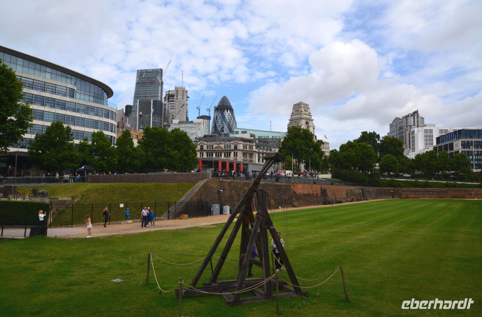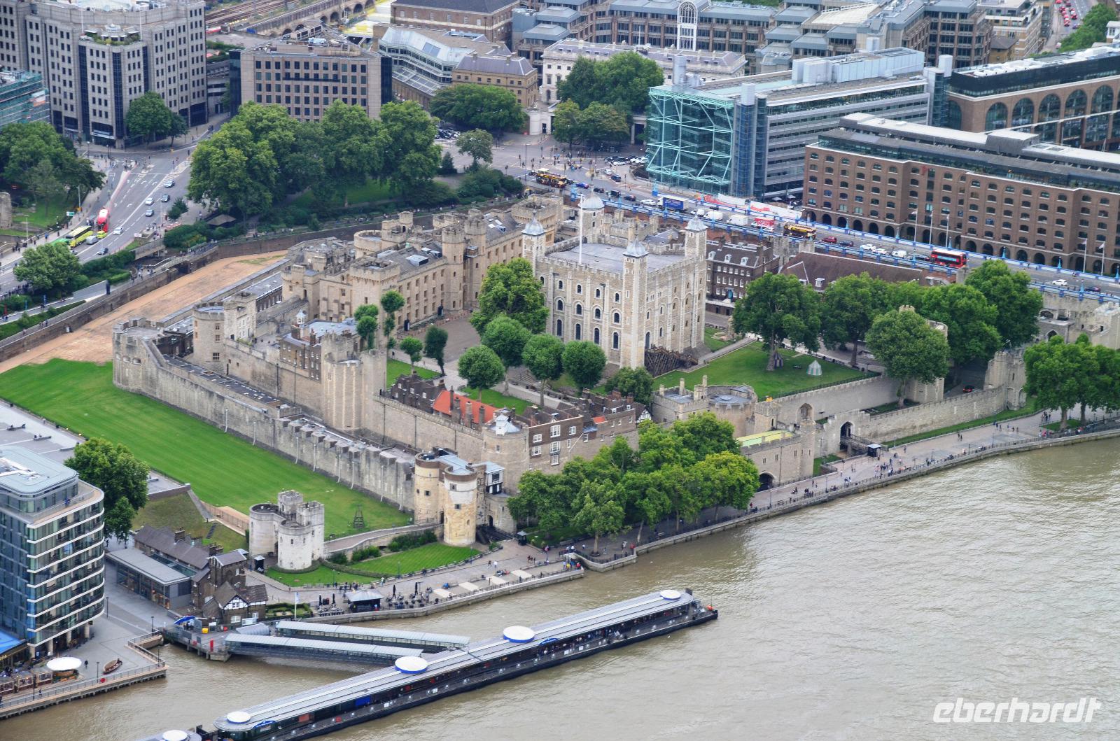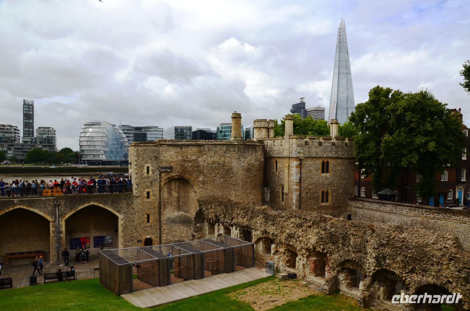 Die gemeinsame Tube-Fahrt bringt uns heute zum Tower of London. Dazu spazieren wir bis zur nahen Station Bayswater und nehmen ab hier die Circle Line bis Tower Hill. Die Tickets sind mit dem Voucher schnell geholt, Übersichtsplänen ausgeteilt und dann geht es durch die stark befestigten Tore hinein in eines der ältesten Bauwerke Londons. Das heißt, eigentlich ist es der Weiße Turm, heute mit der Rüstkammer versehen, ist der Keep aus der Zeit Wilhelm des Eroberers.