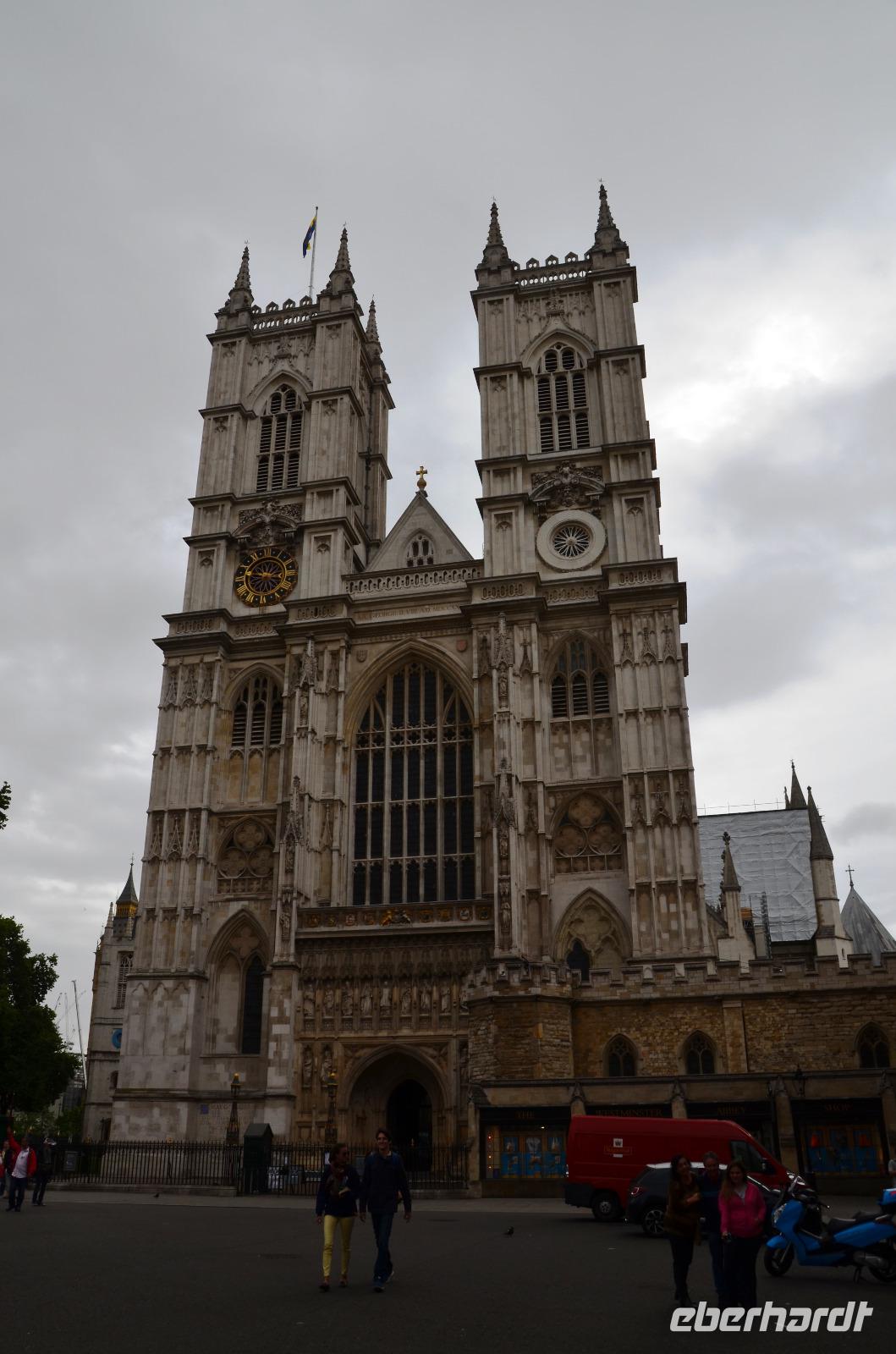 Ausgeruht und gestärkt machen wir uns auf den Weg zur Bushaltestelle der Linie 485, fahren bis Westminster Abbey. Ein Fotostopp vor der Westfassade ist natürlich Pflicht. Dann der kurze Fußweg zum Abbey-Eingang, wo wir unsere Gästeführerin Ulla wieder herzlich begrüßen. Sie beginnt mit uns die Führung durch die Berühmte Westminster Abtei, diesen bedeutendsten historischen Kirchenbau Englands.