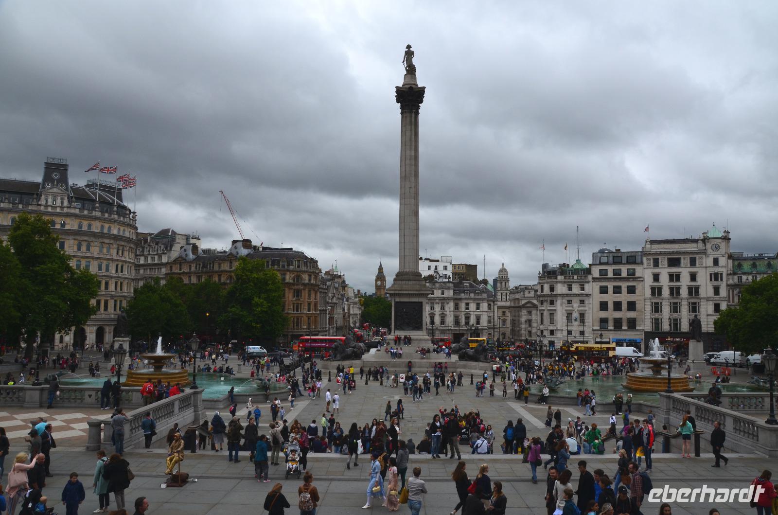 Den Abschluss bildet der schöne Blick aus der Säulenhalle über den Trafalgar Square.