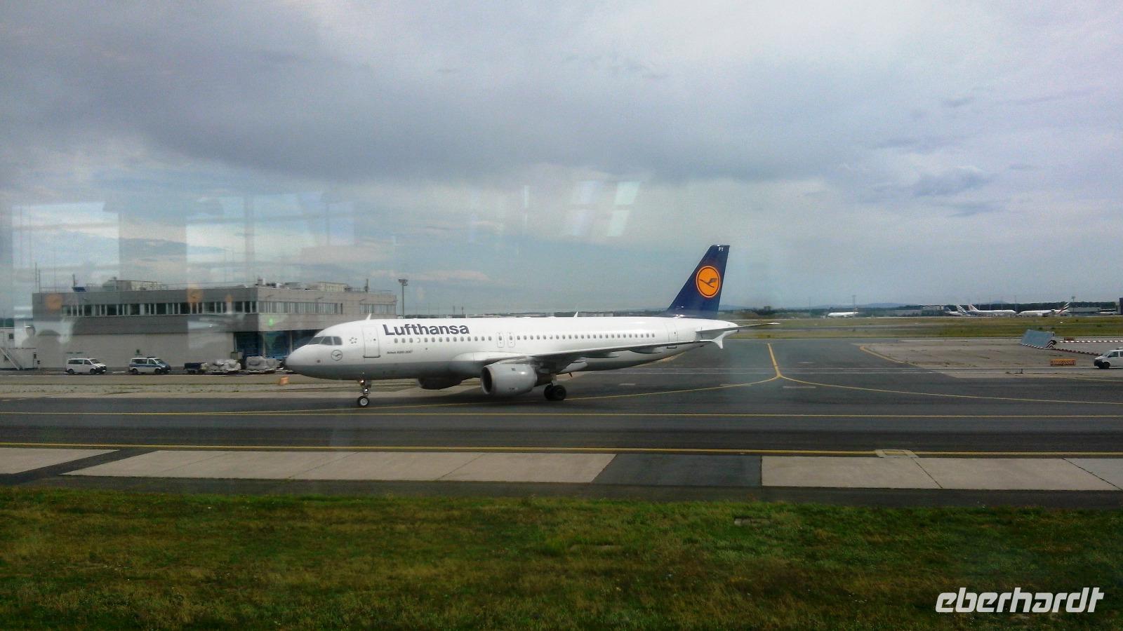 06:50 Uhr treffen wir uns an der Infotafel im Flughafen Dresden und begrüßen einander, geben unser Gepäck auf und checken ein. Der Flug von Dresden nach Frankfurt ist kurz und im Frankfurter Flughafen treffen wir noch unsere drei Thüringer Gäste am Abfluggate nach London.