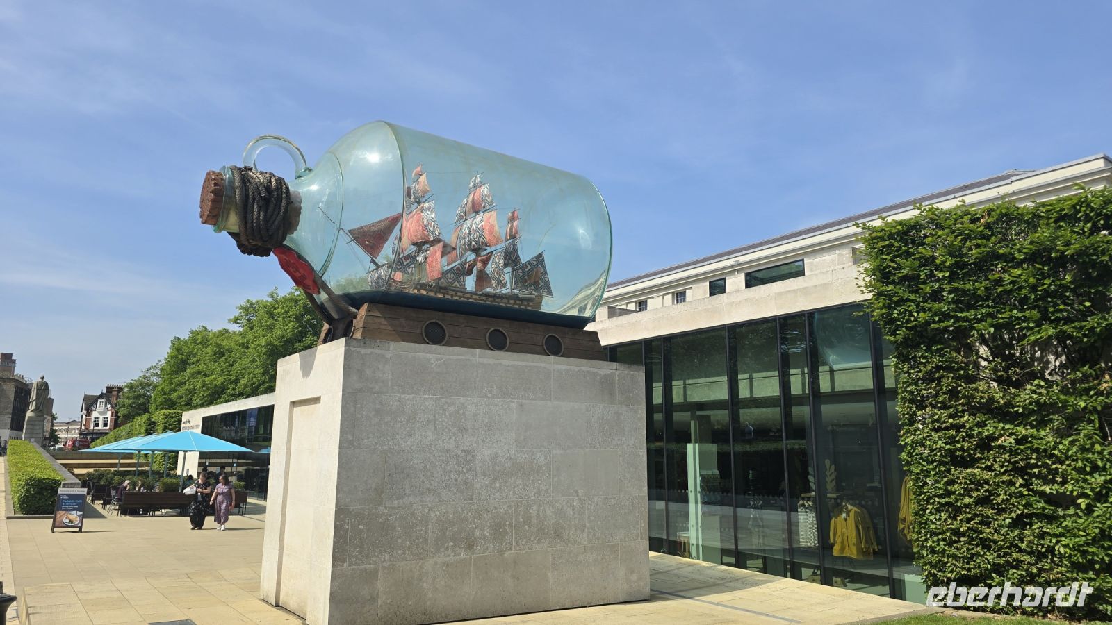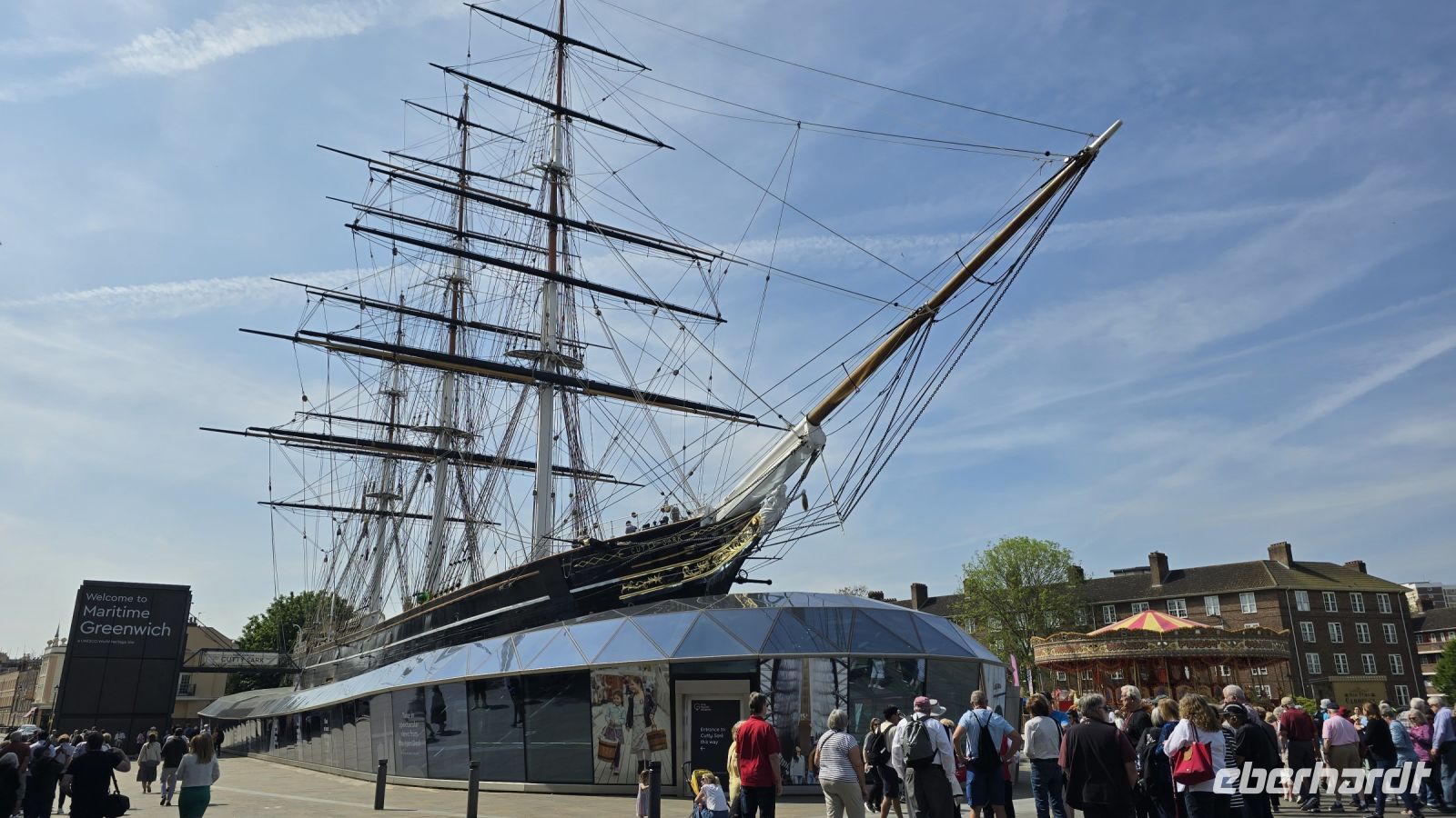 Da heute keine Wachablösung vor dem Buckingham Palast stattfindet ändern wir kurzfristig unser Programm. Aber erst einmal heißt es: ordentlich frühstücken, das Buffet hält für jeden etwas bereit und so starten wir gut gelaunt in den Tag. Unser erster Spaziergang führt uns zur Metrostation Embankment, oder zur Tube, wie die Londoner ihre U-Bahn nennen. Hier laden wir unsere Oyster-Cards auf, mit denen kann man mit Tube, Bus und Zug bequem durch die ganze Stadt fahren. Hat man ein Tageslimit erreicht- derzeit 8,10 - 13,90 £ je nach Zone- kann man quasi kostenfrei fahren. Außer man fährt mit dem Boot, das kostet extra und das nehmen wir jetzt auch: wir wollen nach Greenwich. Am königlichen Observatorium befindet sich der Null-Meridian, den wollen wir uns ansehen. Also spazieren wir zum Westminster Pier, sehen hier bei strahlendem Sonnenschein Big Ben und das Riesenrad und steigen in das Schnellboot der Thames-Klipper ein. Das bringt uns zur Cutty Sark. Einst der schnellste Teesegler der Welt liegt er nun als Museumsschiff am Greenwich Pier. Wir erfahren die Geschichte um den Namen des Schiffes und warum es heute hier liegt. Gleich nebenan liegt das Royal Naval College. Einst als Königspalast geplant wurde es eine Berherbergungsstätte für pensionierte Seemänner, bis zu 2000 von ihnen lebten einst hier. Die heutige Painting Hall- mit wunderschönen Gemälden- diente einst als Speisesaal. Bis hierher spazieren wir, weiter dann zum Queens House, das immer noch den Mittelpunkt des Areals darstellt. Das Maritime Museum schließt sich an- das größte Museum mit maritimen Gegenständen der Welt. Wir wollen aber noch höher hinaus: zum Königlichen Observatorium. Hier oben liegt das Flamsted House. Der leuchtend rote Ball auf dem Dach ist von den Schiffen auf der Themse gut zu sehen gewesen, pünktlich 13.00 Uhr fiel die Kugel herunter und die Seeleute konnten ihre Instrumente danach stellen. Eine Baustelle zwingt uns noch zu einem kleinen Uweg, dann erreichen wir den Prime-Meridian. Keiner läßt es sich entgehen, einmal mit den Füßen im westlichen und östlichen Längengrad gleichzeitig zu stehen. Ab hier kann jeder selbst erkunden, was interessiert, das Observatorium, das Maritime Museum oder doch lieber ein Bummel in Greenwich. Nach dem Mittag treffen wir uns zur Rückfahrt an der Cutty Sark. Wir nehmen wieder das Boot und steigen dieses Mal am Tower Pier aus. Eine Runde um den Tower läßt uns die Größe der Anlage erahnen, besuchen werden wir ihn am Sonntag. So orientieren wir uns- dort die Metro Tower Hill, da die St. Katharine´s Docks. Gemeinsam geht es nun auf die Tower Bridge. Eine ganz besondere Erfahrung (Experience) wartet auf uns. Wir erklimmen die Treppen hinauf auf die Verbindungsstege der Türme in 43 Metern Höhe. Schon beim Aufstieg und in den kleinen Räumen gibt es viel Wissenswertes zur Tower Bridge, wir werden in die Zeit der Eröffnung zurückversetzt, als die Männer noch Anzug und Zylinder trugen und Kutschen das Stadtbild beherrschten. Unzählige Boote brachten Waren aus aller Herren Länder in die Stadt, London war der größte Hafen der Welt. Und hier wurde nun 1894 die Tower Bridge über die Themse eröffnet. Um den Schiffsverkehr weiter zu ermöglichen wurde sie mit einem dampfbetriebenen System ausgerüstet, dass die Brücke innerhalb kürzester Zeit öffnen und schließen konnte. 1976 erhielt sie eine elektrifizierte Hydraulik. Ihre heutigen Farben erhielt sie 1977 zum silbernen Thronjubiläum der Queen, die Originalfarben können wir im Maschinenraum später sehen. Jetzt heißt es aber: Mutig sein. Der Glasboden in 43 Metern Höhe ist nicht jedermanns Sache, aber fast alle trauen sich dann doch. WOW! Im Südtower steigen wir wieder hinab und folgen der blauen Spur im Fußboden zum Maschinenraum. Man kann nachvollziehen, wie hier tonnenweise Kohle geschaufelt wurde, die Maschinen werden auch heute noch liebevoll gepflegt und instand gehalten. Und sie tragen die Originalfarben dunkelbraun und grün. Durch den obligatorischen Souvenirshop erreichen wir wieder die Straße und fahren erst einmal eine Station mit dem Bus. Ein kleiner Spaziergang noch und dann warten wir am Ende der Schlange, dass wir den Fahrstuhl nehmen können in die 15. Etage. Hier, Fenchurch 120, ist nämlich ein Dachgarten, wo wir eine tolle Sicht auf die Stadt haben können. Es geht zügig voran und nach der Sicherheitskontrolle dürfen wir nach oben. Was für ein Anblick! Der Blauregen blüht und duftet und man kann ringsherum laufen, mal mit Blick auf die Hochhäuser mit der "Gurke", mal mit Blick zur Themse und der Tower Bridge. Ich hatte einige Kleinigkeiten zum Knabbern mitgenommen, die breiten wir nun aus und alle lassen es sich schmecken. Als Höhepunkt erleben wir auch noch, wie die Tower Bridge geöffnet wird, um ein kleines Kreuzfahrtschiff durchzulassen. Perfektes Timing. Wir genießen ausgiebig die letzten Sonnenstrahlen des Tages und dann geht es wieder zurück zum Hotel. Abendessen ist wieder individuell und wir verabschieden uns- bis morgen.