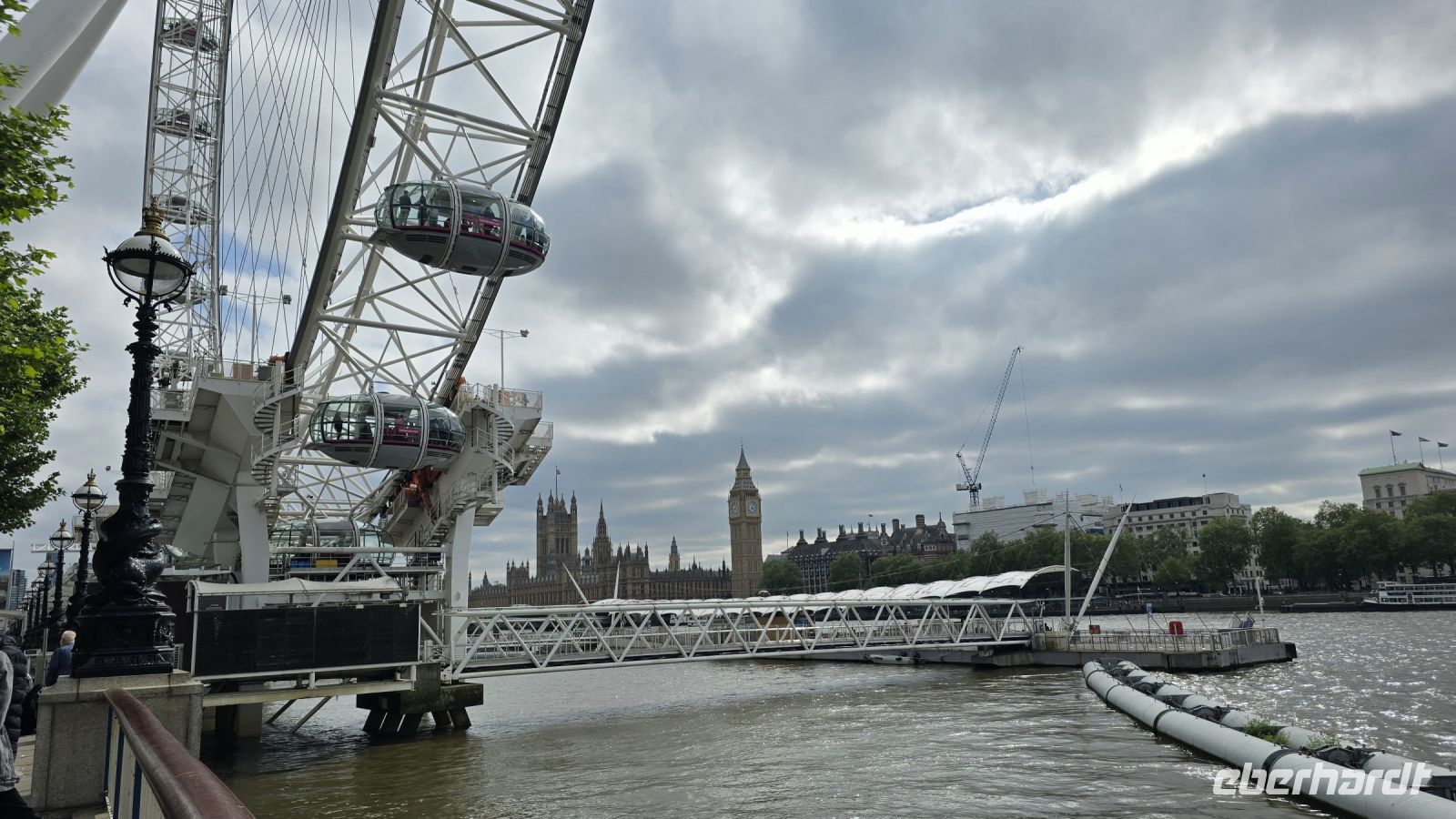 Der Tag heute beginnt mit einer Busfahrt zur St. Pauls Kathedrale. Die wollten wir wenigstens sehen für einen Fotostopp, also spazieren wir zur Millenium Bridge- von hier aus ist sie besonders eindrucksvoll. Dann geht es zur Westminster Kathedrale. Gar nicht so einfach, welcher Eingang für uns als Gruppe der richtige ist, aber dann bekommen alle ihre Tickets und die Audio Guides und schon kann die individuelle Erkundung losgehen. Was für eine Pracht! Die Buntglasfenster, das Chorgestühl, die Marienkapelle mit den Bannern der Ritter des Bath-Ordens, die Fächergewölbe... eindrucksvolle Zeugnisse der gotischen Baukunst. Das älteste religiöse Gebäude Englands zieht uns mit den Geschichten zu den Persönlichkeiten, die hier begraben wurden oder die hier gekrönt oder verheiratet wurden in seinen Bann. Natürlich besuchen wir die Poet´s Corner -die Dichter-Ecke mit den berühmten Künstlern, inklusive Georg Friedrich Händels, der hier große Erfolge feierte und hier begraben wurde. Ein Spaziergang durch die Kreuzgänge des Klosters und ein Blick auf den Krönungsstuhl runden unseren Besuch ab. Mit der Metro geht es nun zum V&A. Dem Victoria und Albert-Museum. Es ist die größte Sammlung von Kunstgewerbe und Design der Welt. Kunstschätze aus allen Epochen und Ländern sind hier ausgestellt- jeder kann seinen Vorlieben entsprechend die Etagen oder Räume aussuchen. Was auf keinen Fall fehlen darf ist ein Abstecher zum den Cafes, ob draußen im Innenhof oder drinnen in gediegener Atmosphäre, es ist einfach schön hier. Und ein paar Minuten der Ruhe tun auch gut. Viele unserer Gäste hatten ja noch einen wichtigen Termin: eine Fahrt mit dem Riesenrad - dem London Eye. Also fahren wir zurück nach Westminster und spazieren zum Südufer der Themse. Hier steht das viertgrößte Riesenrad der Welt- 135 Meter hoch- und verspricht eine atemberaubende Aussicht auf London. Das Wetter spielt mit und so genießen sie ihre Fahrt mit dem als Millenium-Projekt erbauten Riesenrad, das eigentlich nur 5 Jahre stehen bleiben sollte. Nun steht es fast 25 Jahre hier und niemand kann sich London ohne sein Riesenrad vorstellen. Der restliche Nachmittag ist frei und auch der Abend, so besuchen viele noch Covent Garden mit seinen Märkten oder genießen einen Bummel durch die Victoria Embankment Gardens.