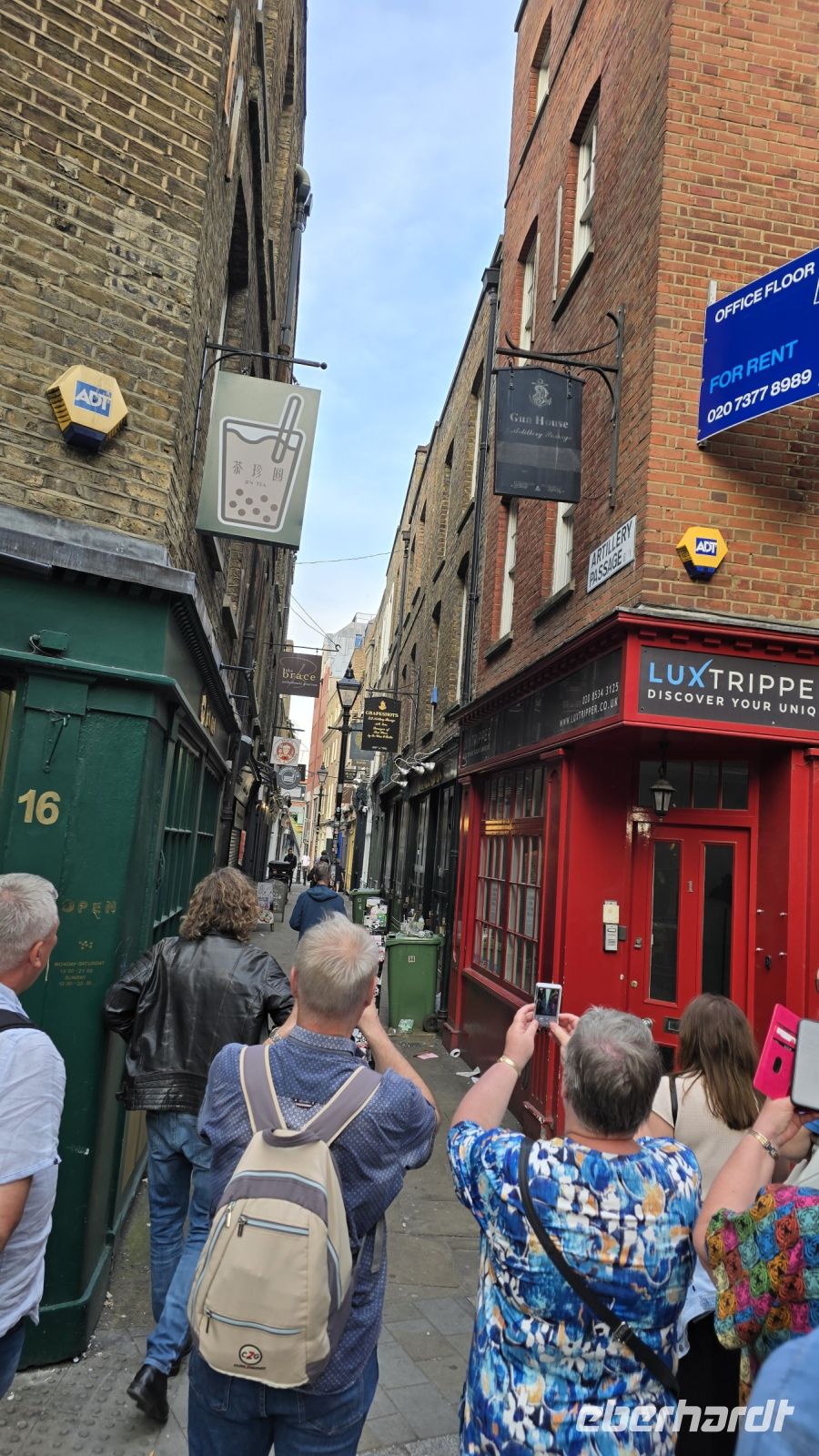 Heute endlich besuchen wir die mehr als 700- jährige Tradition der Wachablösung am Buckingham Palast. Vom Hotel spazieren wir gemeinsam zum Trafalger Square, bewundern die Nationalgalerie, die Säule mit dem Denkmal für Lord Admiral Nelson und die Löwen zu seinen Füßen. Weiter spazieren wir zur Horse Guarde Parade, um diese frühe Zeit sind noch keine berittenen Wachen vor Ort, durch den mittleren Torbogen (der eigentlich den Königlichen Hoheiten vorbehalten ist) geht es zum großen Platz, auf dem die Trooping the Colour- die Parade zum Geburtstag des Königs- abgehalten wird. Durch den St. James´s Park, einen der schönsten Parks Londons, spazieren wir weiter zu den Wellington Barracks. Hier marschiert die neue Wache zum Buckingham Palast und auch die alte Wache kommt hierher zurück. Ein perfekter Ort also, um die Wachen zu sehen. Wie zu erwarten standen die Menschen vor dem Zaun des Buckinham Palastes bereits dicht gedrängt und auch auf dem Brunnen mit dem Victoria Memorial war es schon sehr eng. Also blieben die meisten hier und vefolgten die Vorbereitungen hier an den Wellington Barracks. Vom St. James´S Palast kam dann die alte Wache zum Buckingham Palast marschiert, die neue folgte von den Wellington Barrracks aus. Wir warteten noch, bis die alte Wache zurück zu den Wellington Barracks marschierte, dann machten wir uns auf den Weg zum Canada Gate, unserem vereinbarten Treffpunkt. Durch den Green Park spazierten wir zur Metro Station, die uns zur London Bridge und zum Borough Market brachte. Einer der ältesten Märkte der Stadt empfing uns mit den Düften internationaler Küchen, Fisch, Fleisch, Räucherwaren, Käse, Delikatessen, Weine und Biere, Drinks und Säfte, Honig und Jam, Senf und Chutneys... es gab nichts, was es nicht gab hier. Also genossen wir eine ordentliche Lunchpause. Danach wartete der Tower of London auf uns. Wir spazieren über die London Bridge und am Ufer der Themse entlang. So erreichen wir den fast 1000-jährigen Gebäudekomplex um den White Tower herum. Ausgerüstet mit Audio Guides erkunden nun alle die verschiedenen Tower, Museen und Ringmauern. Natürlich darf ein Besuch bei den Kronjuwelen genause wenig fehlen wie an der Hinrichtungsstätte, wo auch Anne Boyleen, die zweite Frau Heinrich VIII. , ihr Leben verlor. Ein zeitiges Abendessen brachte uns dann im Vicinity zusammen. Von hier hatten wir einen tollen Blick auf die Tower Bridge und gerade jetzt wurde diese nochmals geöffnet, um ein Schiff durchfahren zu lassen. Ein perfektes Timing. Pünktlich starteten wir dann mit unserem Guide zur Jack The Ripper Tour quer durch Whitehall und durch die Brick Lane. Zwar ist wenig von den alten Häusern erhalten, trotzdem konnte man gut die Situation dieser Zeit nachvollziehen und Mark, unser Guide, erzählt die Geschichten sehr anschaulich. Am späten Abend dann geht es zurück zum Hotel und wir verabschieden uns- bis morgen.