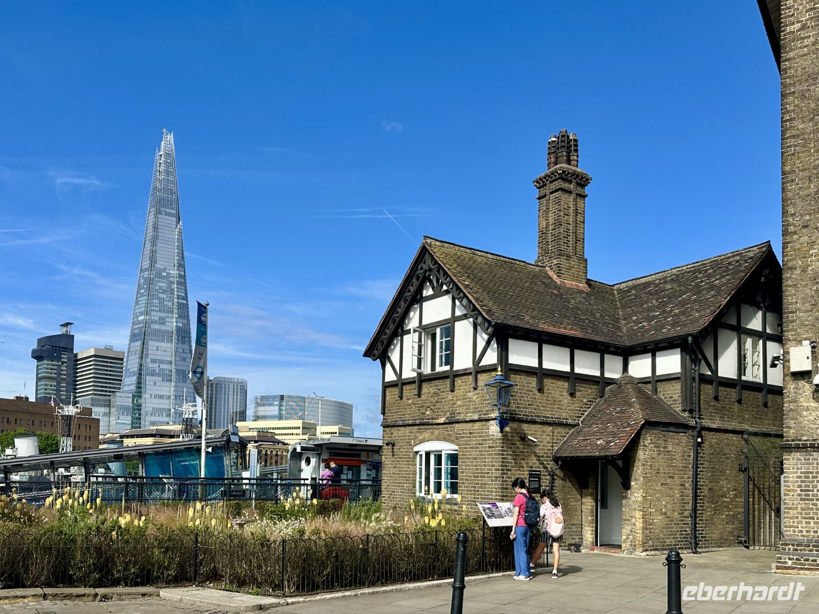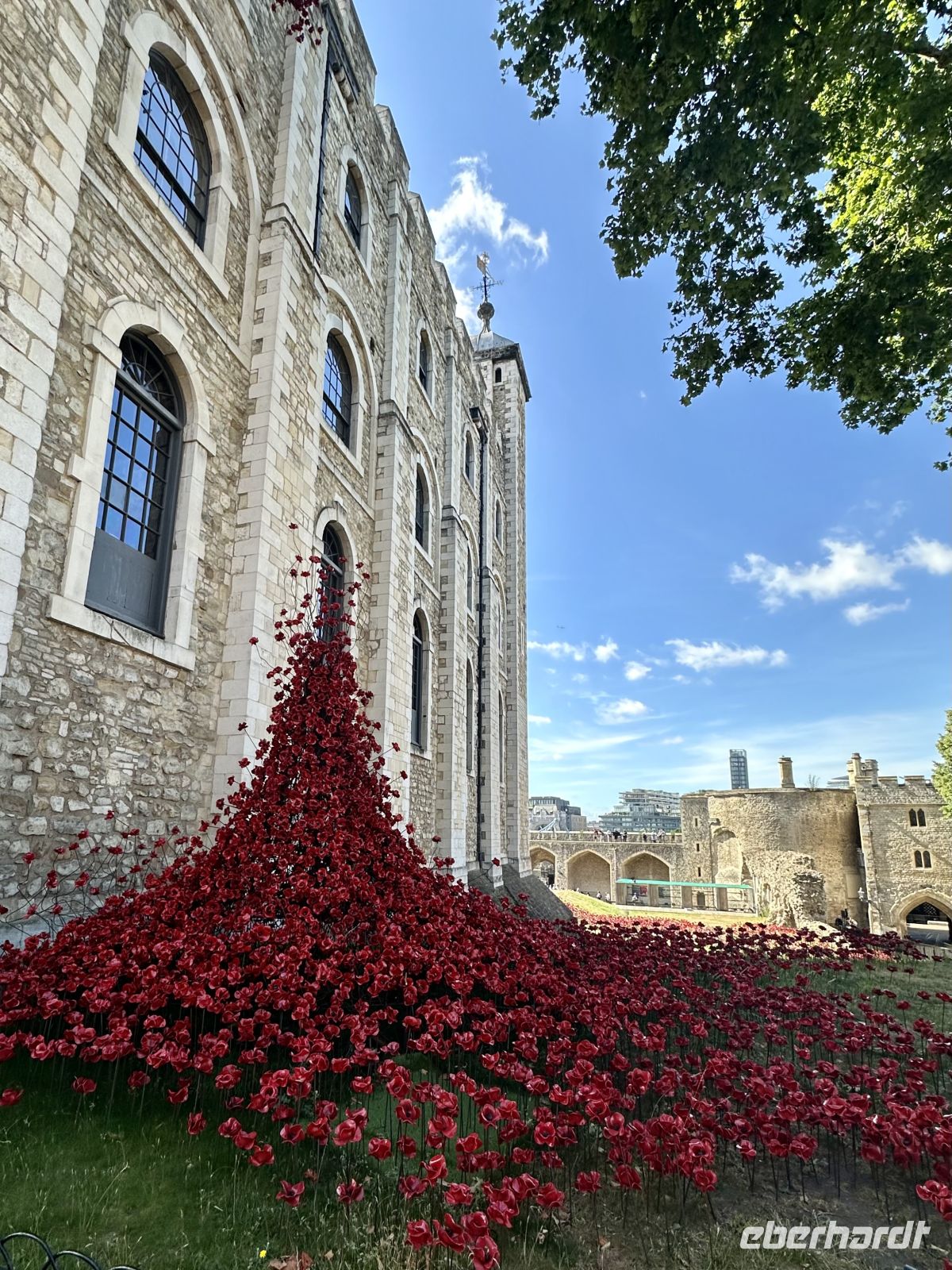 In gemütlicher Runde brechen wir auf zu einem abendlichen Spaziergang Richtung Tower of London. Hier wird Geschichte plötzlich spürbar. Massive Mauern, eisernes Tor, die Silhouette des White Tower – ein Ort, der ebenso majestätisch wie düster wirkt. Hier wurde gekrönt, geplündert, verbannt und enthauptet. Doch das ist lange her und heute wirkt alles friedlich.