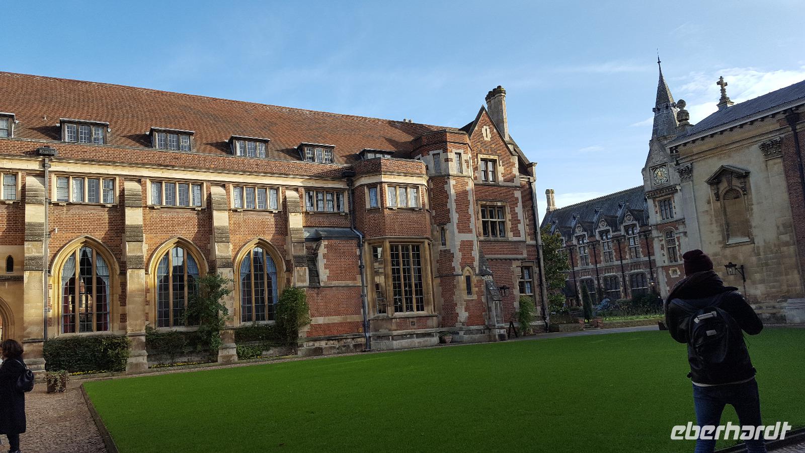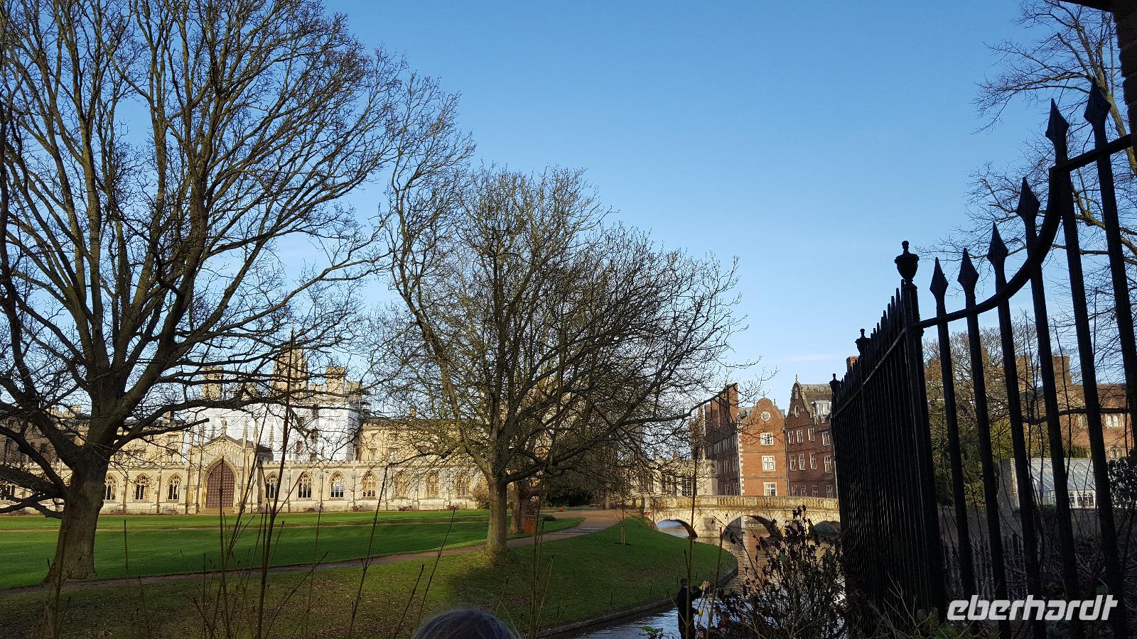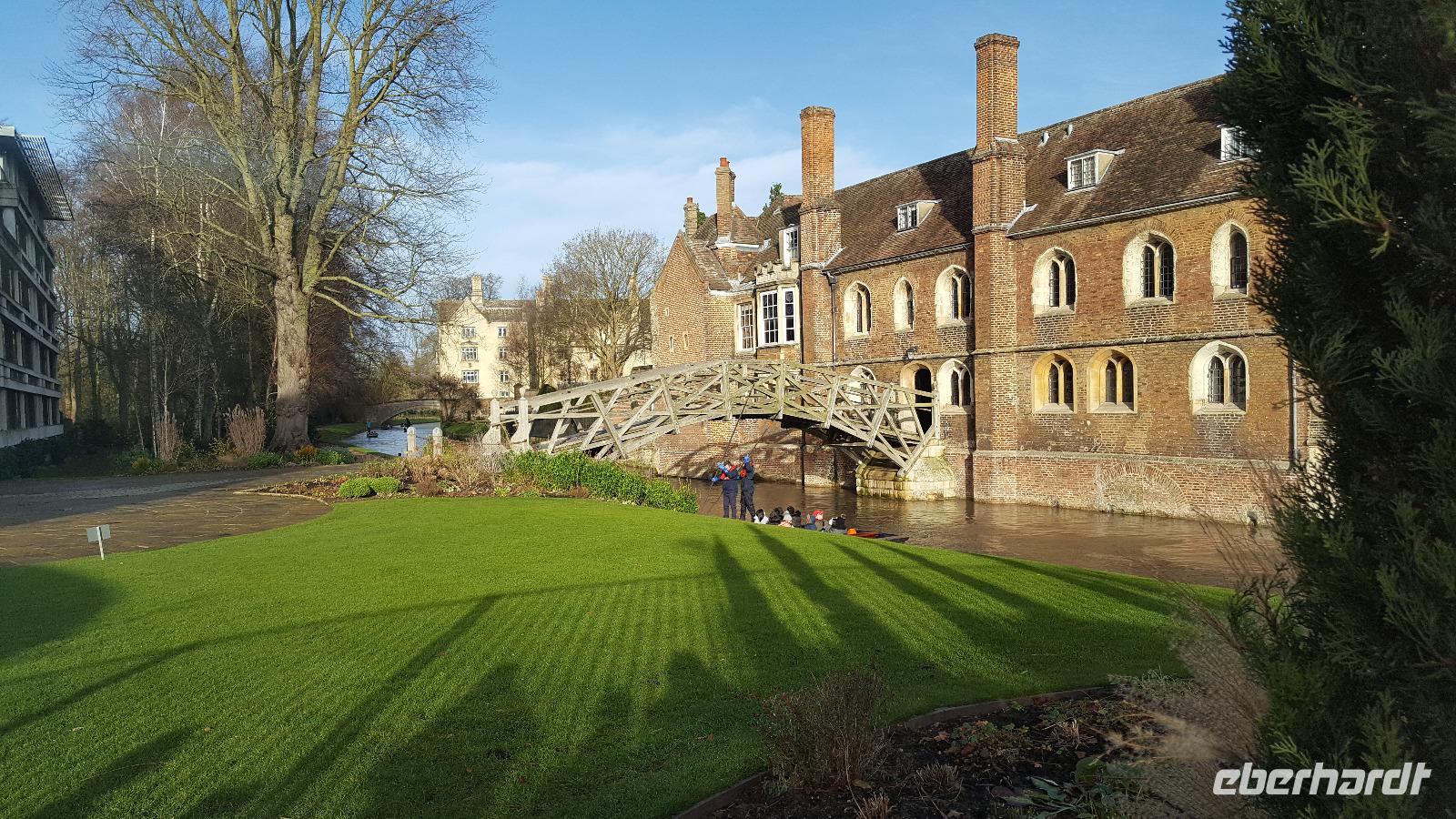 Der vorletzte Tag des Jahres startet mit einem tollen Frühstücks-Buffet. Für jeden ist etwas dabei und wer möchte gönnt sich ein traditionelles englisches Frühstück mit Würsten, Schinken, Eiern, Pilzen, gegrillten Tomaten und den berühmten baked Beans. Dann wartet bereits unser Busfahrer Roberto auf uns. Er bringt uns heute nach Cambridge. Unser erstes Ziel ist die Silver Street- an der Bootsanlegestelle sehen wir dann die Boote, sie erinnern ein wenig an Gondeln, damit kann man auf dem Fluss Cam tolle Ausflüge machen, Studenten staken die Boote auf dem Fluß und den Kanälen durch die herrlichen Parks der Colleges. Unsere Stadtführerin Margot zeigt uns ihre Satdt bei einer kurzen Rundfahrt, dann erkunden wir die Gassen zu Fuss. Strahlender Sonnenschein begleitet uns, Margot hat für uns einen Besuch des Pembroke College organisiert, dessen Mensa ist eine der Vorlagen für den großen Speisesaal in den Harry-Potter-Filmen, für die Fans natürlich ein absoluter Höhepunkt. In der Chapel schließlich sitzen wir wie die Dozenten, Followers und Studenten, Margot erzählt aus dem College-Leben, den Regeln und beantwortet viele Fragen dazu. Unser Spaziergang führt uns dann am Queens College vorbei, wir bestaunen die Chapel des Kings College, den alten Pub "The Eagle", das Trinity College und die Seufzerbrücke, die Bridge of Sighs. An der Tourist Information werden alle mit Stadtplänen ausgerüstet und dann ist Zeit für eigene Erkundungen, kleine Stärkungen und tolle Fotos. Roberto bringt uns dann schließlich sicher wieder zurück und souverän durch den Londoner Verkehr. Wir verabreden uns zum Dinner im Hotel und jeder verbringt die Zeit dahin wie es ihm beliebt.