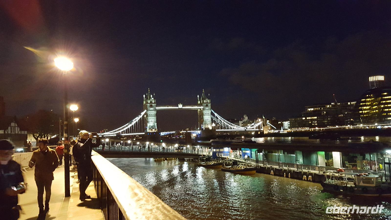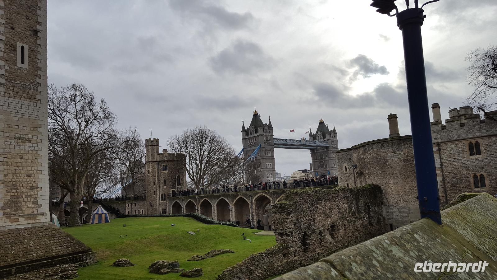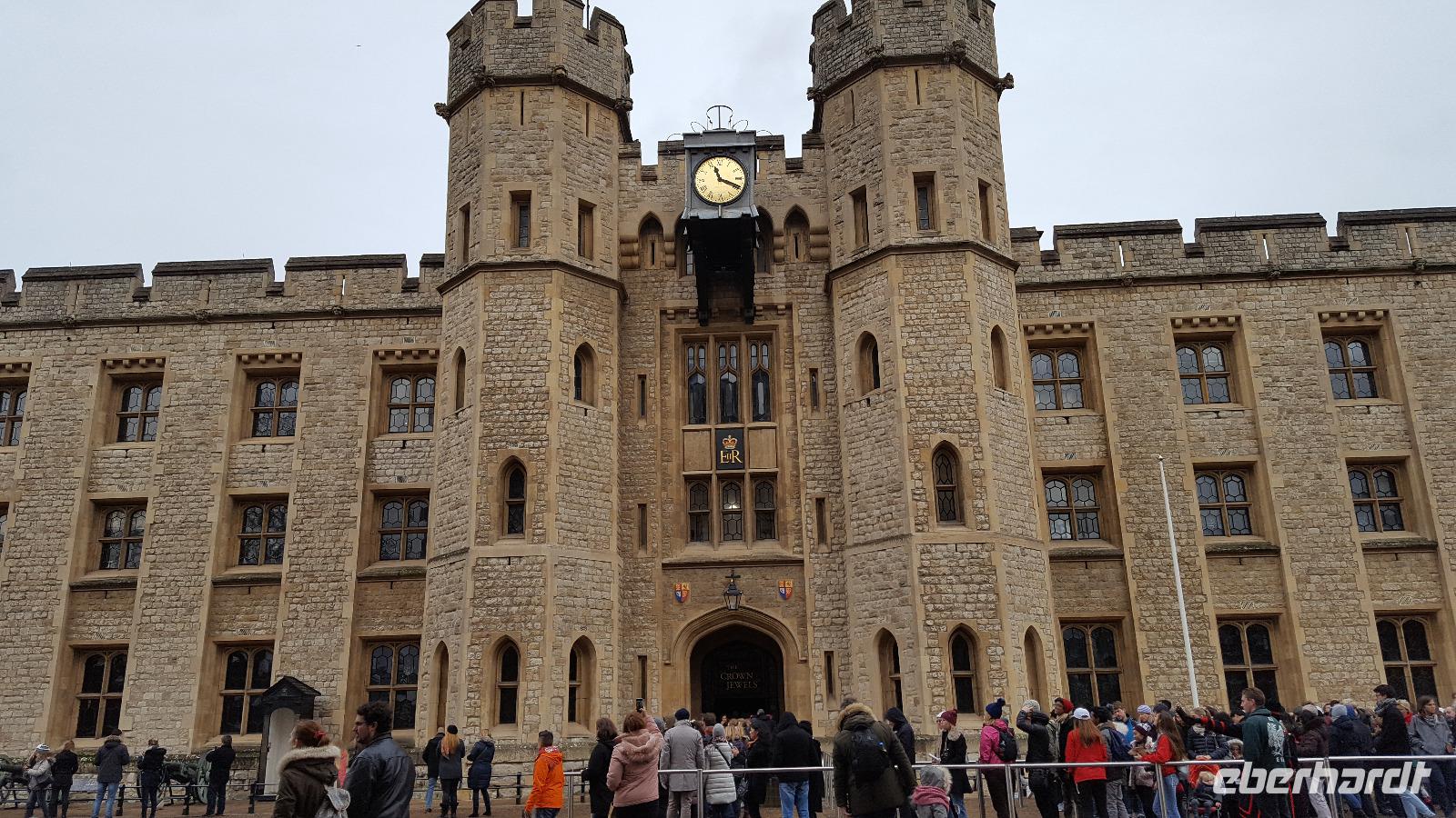 Auch der letzte Tag des Jahres beginnt mit einem leckeren Frühstück im Restaurant des Hotels. Dann treffen wir uns in der Lobby, ausgerüstet mit der Day-Travelcard kann heute jeder individuell mit den öffentlichen Verkehrsmitteln kreuz und quer durch London fahren. Die erste Fahrt zum Tower of London unternehmen wir gemeinsam mit der U-Bahn, ven den Londonern liebevoll "Tube" genannt. Natürlich besichtigen wir den Tower, er war Sitz der Könige, Münzprägestelle, Gefängnis und Hinrichtungsstätte, aber auch Zoo und Waffenlager und ist heute Aufbewahrungsort der berühmten Kronjuwelen. Entsprechend viel gibt es zu sehen und wir entscheiden uns für eine individuelle Erkundung mit (Eberhardt-Travel machts möglich) Audio-Guides. Als Highlight sehen wir den Einzug der Königin auf ihr Schloss und erleben mittelalterliche Unterhaltung mit Feuerkünstlern. Auch die Raben fehlen nicht, es sind immer 6 Raben, die hier gehalten werden, denn die alte Prophezeiung sagt, dass der White Tower und die Monarchie zusammenbrechen, sollten die Raben je den Tower verlassen. Es ist bereits Mittag, als wir den Tower verlassen und uns zum gemeinsamen Spaziergang über die Tower Bridge treffen. Aber was wäre ein Spaziergang über die Tower Bridge ohne auf den berühmten Glasböden in 43 Metern Höhe stehen zu können: also gibt es ein zusätzliches Eberhardt-Travel-WOW für alle, mit Tickets für die Tower Bridge Exhibition gelangen wir zur Fußgängerbrücke oben, zur Ausstellung und zu den Maschinenräumen. Wer clever war nahm den Fahrstuhl- alle anderen durften die mehr als 200 Stufen hinaufsteigen (uff) und wurden dann aber mit atemberaubenden Ausblicken belohnt. Es heißt, die Glasböden haben eine Tragkraft von 1 Heuballen - und 6 Elefanten...es erforderte doch etwas Mut, sich darauf zu stellen. Dann ging es wieder hinunter zum Maschinenraum. Hier stehen die Zeitzeugen der technischen Meisterleistung des ausgehenden 19. Jahrhunderts: Kolbendampfmaschinen, die mittels Hydraulik die Brücke innerhalb von nur 2 Minuten öffneten. Dann verabschieden wir uns voneinander, ausgestattet mit Übersichtskarten und Plänen fahren einige zum "Harrods", andere zum "London Dungeon", wieder andere zum Buckingham Palace. Die letztere Gruppe hat es dann erwischt, ausgerechnet in der Zeit in der sie von der U-Bahn-Station zum Buckingham Palace laufen regnet es wie aus Kübeln, alle werden pitschnass und nach einem kurzen Blick auf den Buckingham Palace zieht es sie wieder zurück zum Hotel. Hier treffen sich am Abend wieder alle in der Lobby und gemeinsam geht es mit einem Bus zum Pub "The Princess of Wales". Beim 3-Gänge -Menü mit Räucherlachs und Lendenbraten darf als Abschluss natürlich der berühmte Christmas Pudding nicht fehlen. Unser Pub befindet sich direkt am Primrose Hill- ein Geheimtipp, wenn man das Feuerwerk live erleben möchte. Allerdings hat sich dieser Geheimtipp wohl herumgesprochen und Tausende Feierlustige standen mit uns hier und schauten sich das Spektakel um Mitternacht an. Dann hieß es Happy New Year! Alles Gute für das Neue Jahr! Wir hatten uns entschlossen, zusammen zu bleiben und gemeinsam zum Hotel zurück zu fahren, gar nicht so einfach, wenn so viele Leute unterwegs zu Bus und Bahn sind. Und so fielen wir doch ziemlich müde nach der nächtlichen Stadtfahrt in unsere Betten.