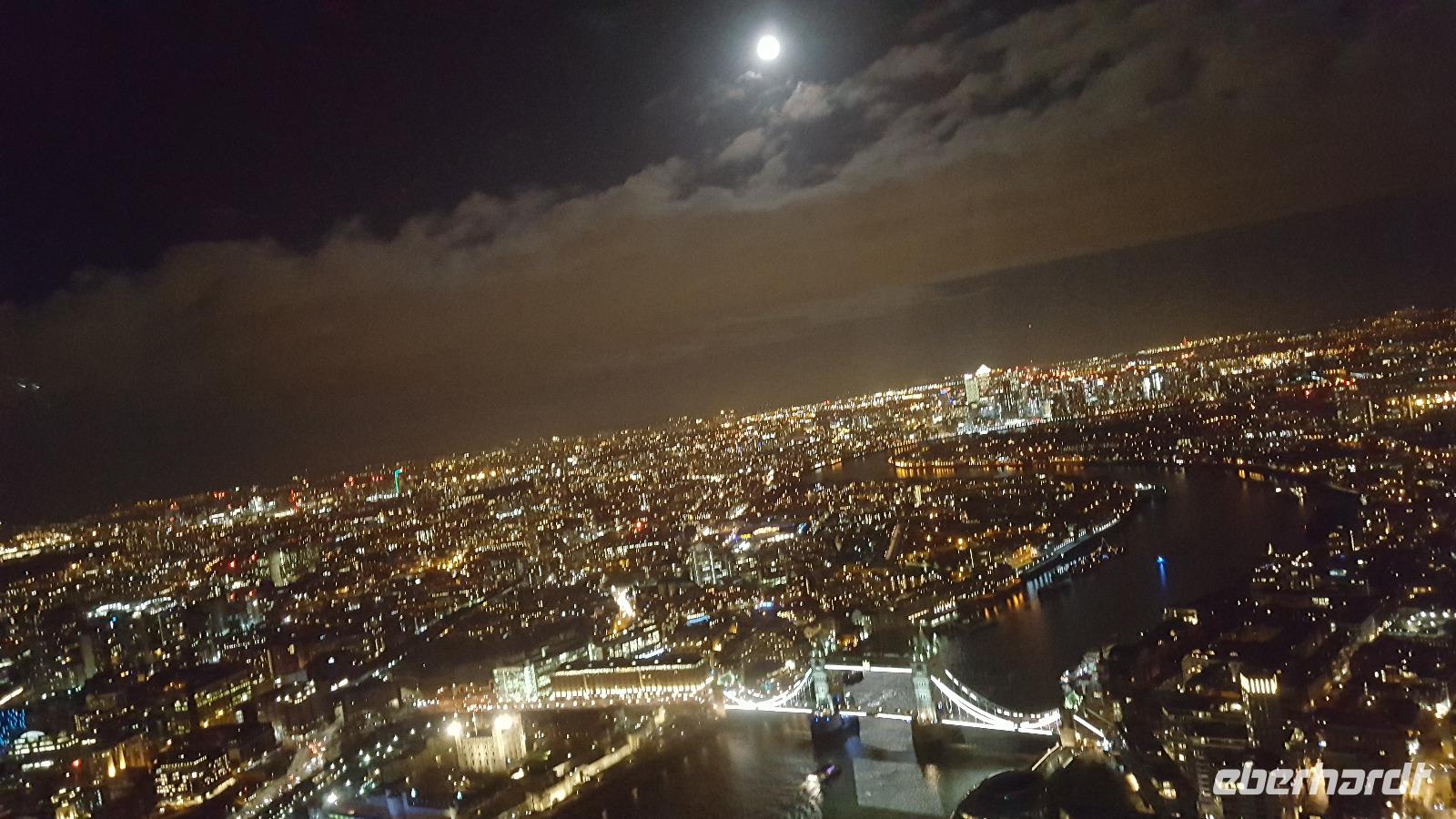 Nach einer recht kurzen Nacht treffen wir uns kurz vor 10 Uhr. Mit dem Bus der Linie 74 geht es heute zuerst zu Madame Tussauds. Wir genießen die kleine Stadtrundfahrt zur Baker Street und können schon das berühmte Wachsfiguren-Kabinett betreten. "Empfangen" werden wir von dem Mitgliedern der königlichen Familie, berühmten Männern und Frauen der Geschichte und natürlich Stars und Sternchen. Jeder findet seine persönlichen Lieblinge, und so werden viele Fotos gemacht, der Film in 4D überrascht und natürlich dürfen die Filmklassiker nicht fehlen. Die anschließende Freizeit nutzen einige von uns und besuchen die London New Year Parade. Eine Institution am Neujahrstag und ein mitreißendes Spektakel. Am Nachmittag dann treffen wir uns dann am Tower Pear unterhalb des Towers. Eine Bootsfahrt auf der Themse mit Afternoon Tea steht im Programm. Unsere Erwartungen werden weit übertroffen: Unsere Plätze im Boot sind bereits reserviert und die Köstlichkeiten zu Kaffee oder Tee sind umwerfend. Dann wird es dunkel und die Lichter der City und der Vollmond ziehen uns vollends in ihren Bann. Was für eine tolle Bootsfahrt- so der einhellige Tenor. Doch damit nicht genug. Wer noch konnte, der kam mit auf "The Shard". Wir laufen über die London Bridge zu The Shard, zur "Glasscherbe". Der Eingang war aufgrund der Bauarbeiten an der Tube nicht so einfach zu finden, dann warteten wir auf unsere 18-Uhr-Auffahrt. Es geht hinauf zum 69. Stockwerk. Wer möchte läuft zum Freiluftdeck im 72. Stock und und wird mit atemberaubenden Blicken über die Stadt belohnt. Das Wetter meint es gut mit uns- wir haben wieder tolle Ausblicke auf die ganze Stadt.