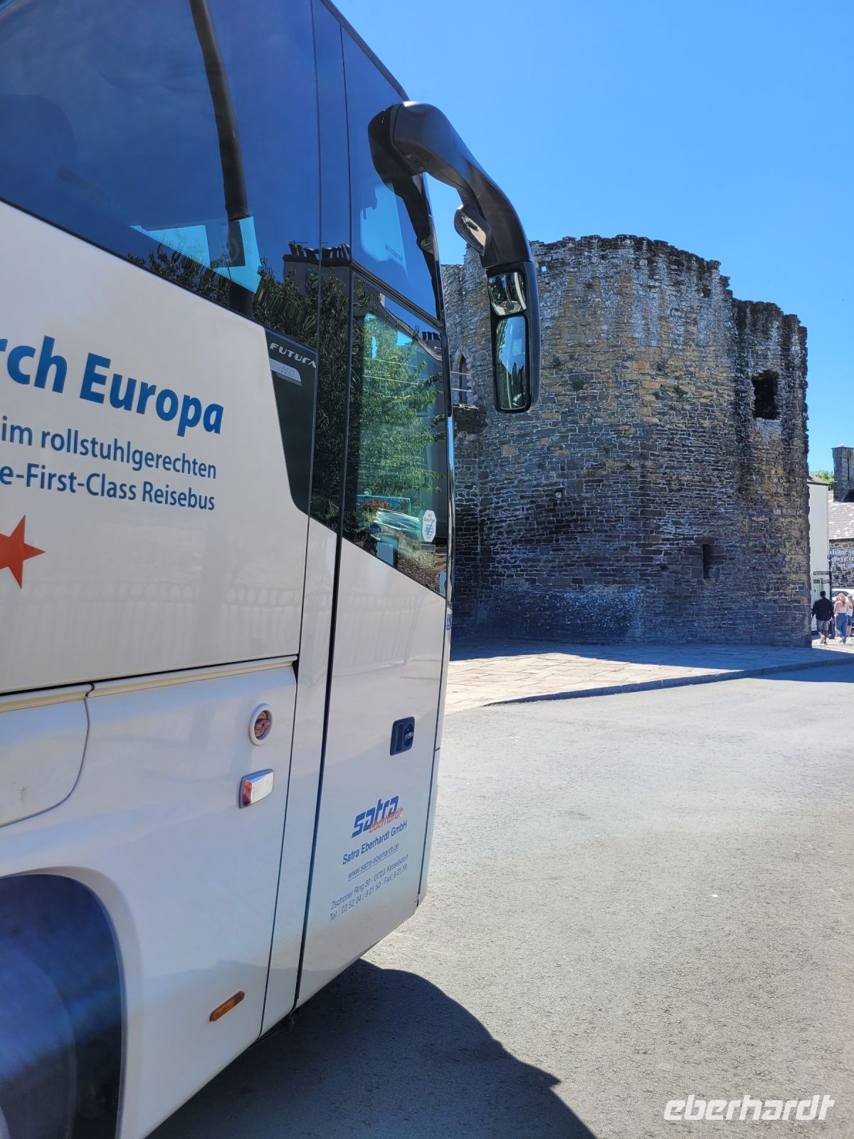 Entspannt startet der behindertengerechte Reisebus gegen acht Uhr morgens mit ersten Gästen vom Eberhardt Travel Betriebsgelände. Vorbei an Chemnitz, quer durch Thüringen und Hessen weiter Richtung Limburg an der Lahn erreichen wir so, ab Koblenz idyllisch dem Rhein folgend Bad Honnef bei Bonn. Hier komplettiert sich dann auch unsere Reisegruppe auf fünfzehn Gäste mit und ohne Rollstuhl. Ein erstes gemeinsames Abendessen im Hotelrestaurant rundet den ersten Reisetag ab.