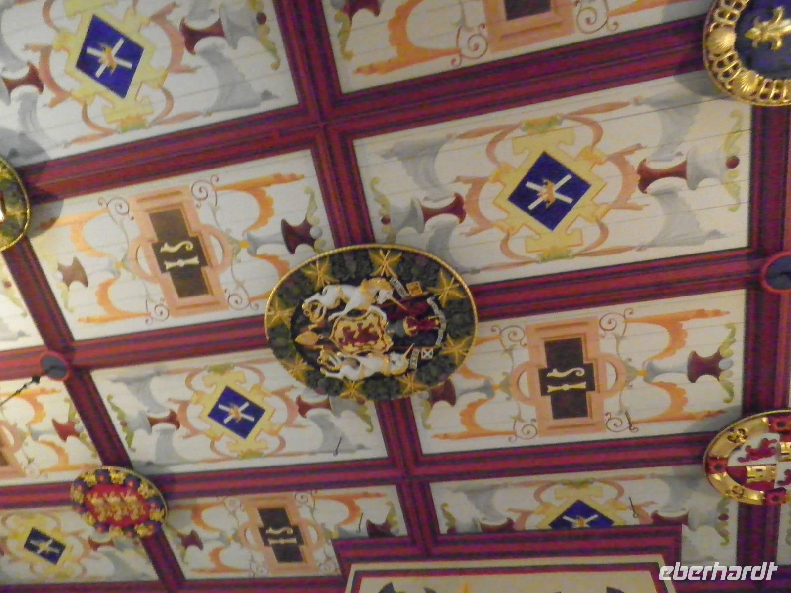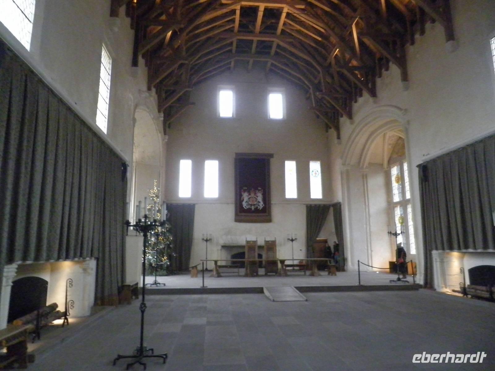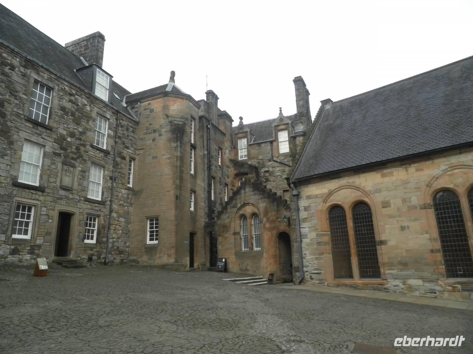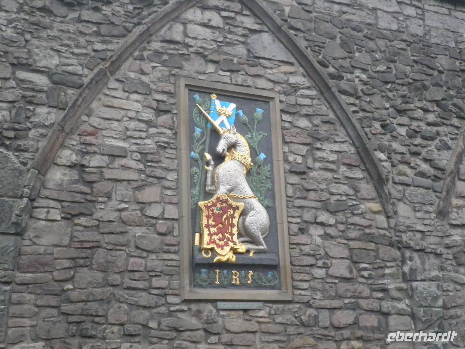 Heute fuhren wir noch einmal hinaus aus der Stadt. Unterhalb von Edinburgh verläuft der Firth of Forth, der hier von drei imposanten Brücken in einer Breite von 2500 m überspannt wird. Die berühmteste der drei ist die Eisenbahnbrücke, eine waghalsige und beeindruckende rot angestrichene Eisenkontruktion, die bereits seit 1890 in Betrieb ist. Daneben zieht sich eine graue Spannbrücke aus dem Jahr 1964 über den Fluss, diese dient noch heute den zahllosen Autos, Lastwagen und Bussen zum Überqueren des Firth of Forth. Bald jedoch wird es eine weitere moderne Brücke hier geben, die der alten Straßenbrücke Entlastung bringen wird. Man sieht schon die Pfeiler im Wasser stehen und die ersten Stahlseilbespannungen. Wir machten oberhalb der Brücken halt, um einen Blick darauf zu werfen und das ein oder andere Foto davon zu machen, bevor wir weiter fuhren, um Stirling Castle nach kurzer Fahrt zu erreichen. Hier hatten wir die Gelegenheit, diese historische Burg zu besichtigen. Einige nutzten einen deutschsprachigen Audiogiude, andere folgten der englischen Führung, die gerade begann, als wir den Innenhof des Schlosses erreicht hatten. Stirling Castle war über Jahrhunderte eine der wichtigsten Burgen der schottischen Könige. In und um die Burg hatte es mehrere wichtige Schlachten gegeben, die zwischen England und Schottland ausgetragen worden sind. 1314 zum Beispiel gab es eine solche Schlacht in Bannockburn in Sichtweite des Castles. Der damalige schottische König Robert de Bruce hatte die Engländer erfolgreich geschlagen, und so steht er heute in Stein gehauen auf einem Sockel vor dem Castleeingang und grüßt die Besucher schon von Weitem. Ebenfalls in der Nähe auf einem Hügel steht ein weiteres Denkmal, das Wallace Monument. Dieser Turm erinnert an William Wallace, der als Anführer der schottischen Kämpfer die Engländer bei Stirling Bridge im Jahre 1297 geschlagen hatte. Der Film Braveheart erinnert an diesen schottischen Freiheitskämpfer.