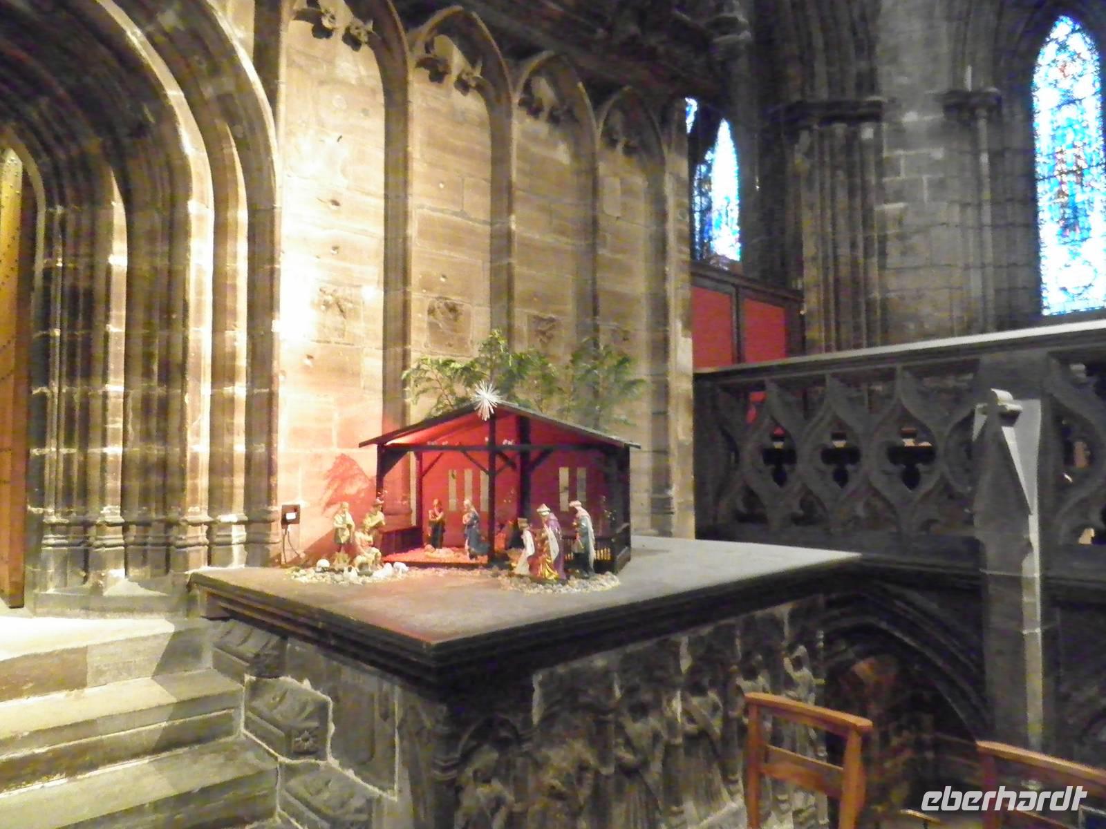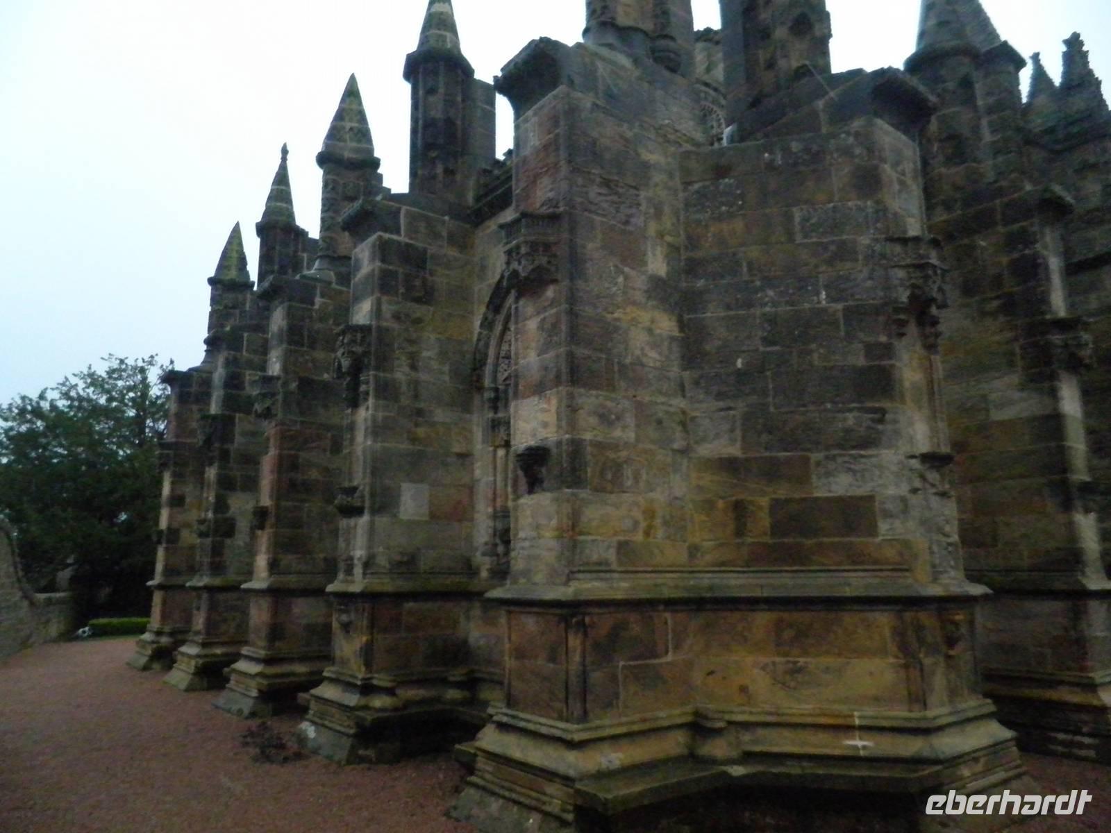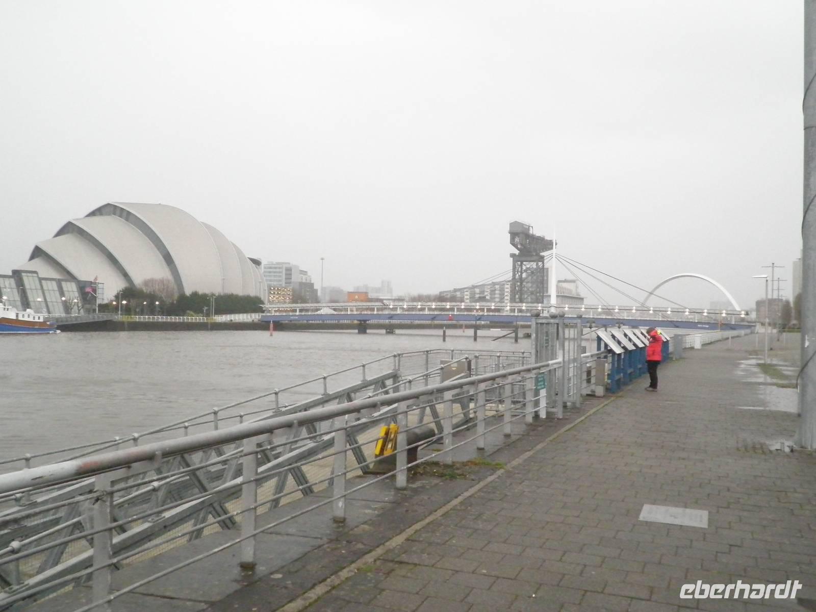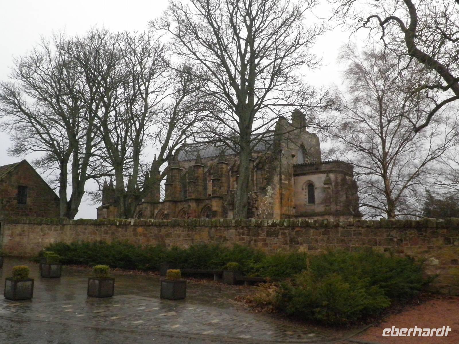 Heute morgen verließen wir Edinburgh schon wieder, aber nur für ein paar Stunden. Unser erster Halt war in Roslin, ein kleiner Ort, dessen Berühmtheit neben dem Cloneschaf Dolly auch die bekannte Rosslyn Chapel aus dem 15. Jahrhundert ist. Eine Führerin erklärte uns zu Beginn unseres Besuches viele Details aus der Geschichte und den in Stein gehauenen Darstellungen in der Kapelle. Danach hatten wir Gelegenheit, uns weiter in der Kapelle umzusenen oder interessante Dinge im neu gestalteten Besucherzentrum von Rosslyn Chapel zu erfahren. Anschließend fuhren wir weiter nach Glasgow, das ist die größte Stadt in Schottlland. Wir besichtigten die St. Mungo Kathedrale und verbrachten ein wenig Freizeit am George Sqare, dem Hauptplatz der Stadt, auf dem während dieser Zeit des Jahres bunt beleuchtete Fahrgeschäfte, ein Riesenrad und eine Schlittschuheisbahn Besucher anlocken. In der Nähe befindet sich die Fußgängerzone, die Buchanan Street. Dort hatten wir Gelegenheit für einen Imbiss oder einen Bummel durch die zahllosen Geschäfte. Danach zeigte uns unsere Reiseleiterin Constanze noch einige Sehenswürdigkeiten in Glasgow. Mit dem Bus fuhren wir durch die Straßen der Stadt, vorbei am imposanten Gebäude aus rotem Sandstein der Kelvingrove Art Gallery, bis hinunter zum Fluss der Stadt, dem Clyde. Dort sind in den letzten Jahren sehr moderne Gebäude mit außergewöhnlicher Architektur entstanden: Science Centre, Glasgow Tower, Amarillo, Hydro und das Transportmuseum. Wir stiegen aus unserem Bus und unternahmen am Ufer des Clyde einen Spaziergang, der allerdings recht kurz ausfiel, denn gerade jetzt begann es zu regnen und ein heftiger Wind kam auf.