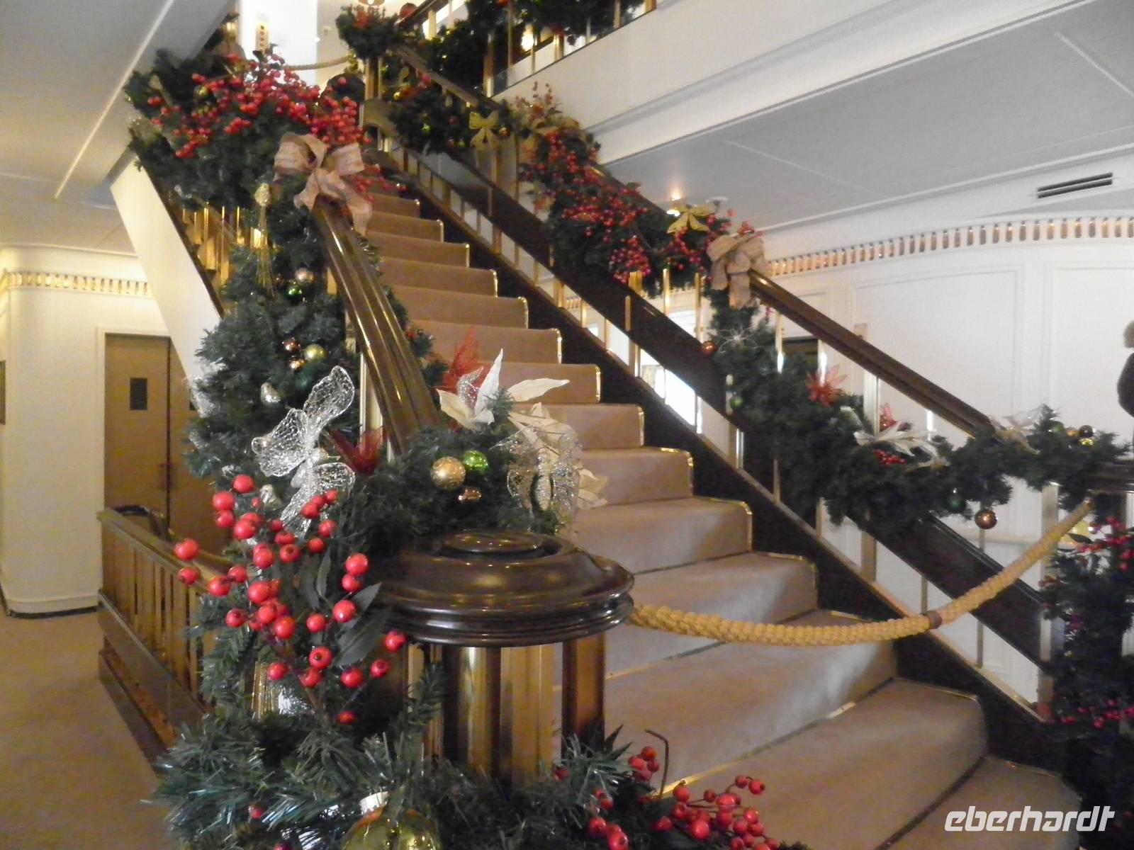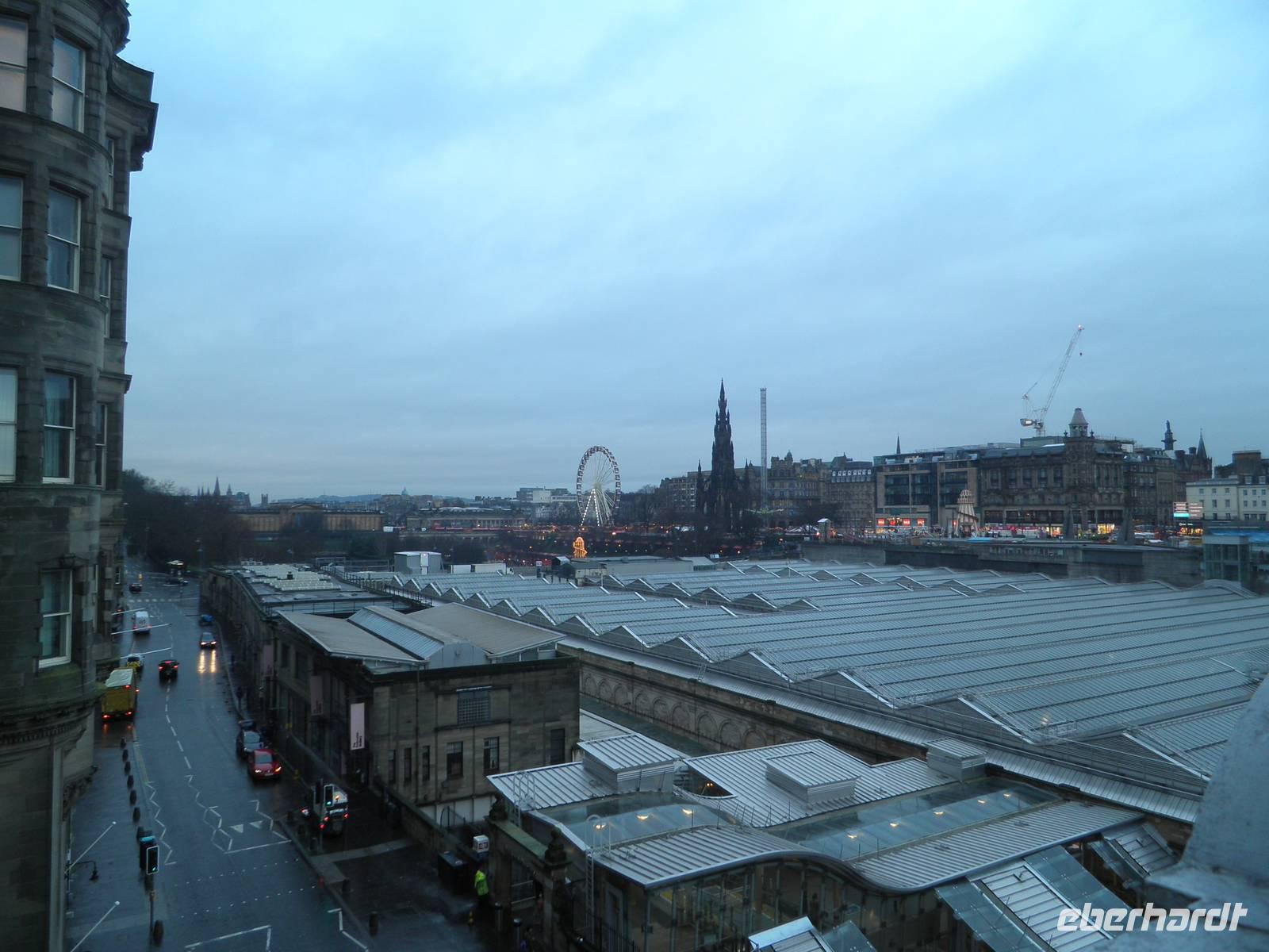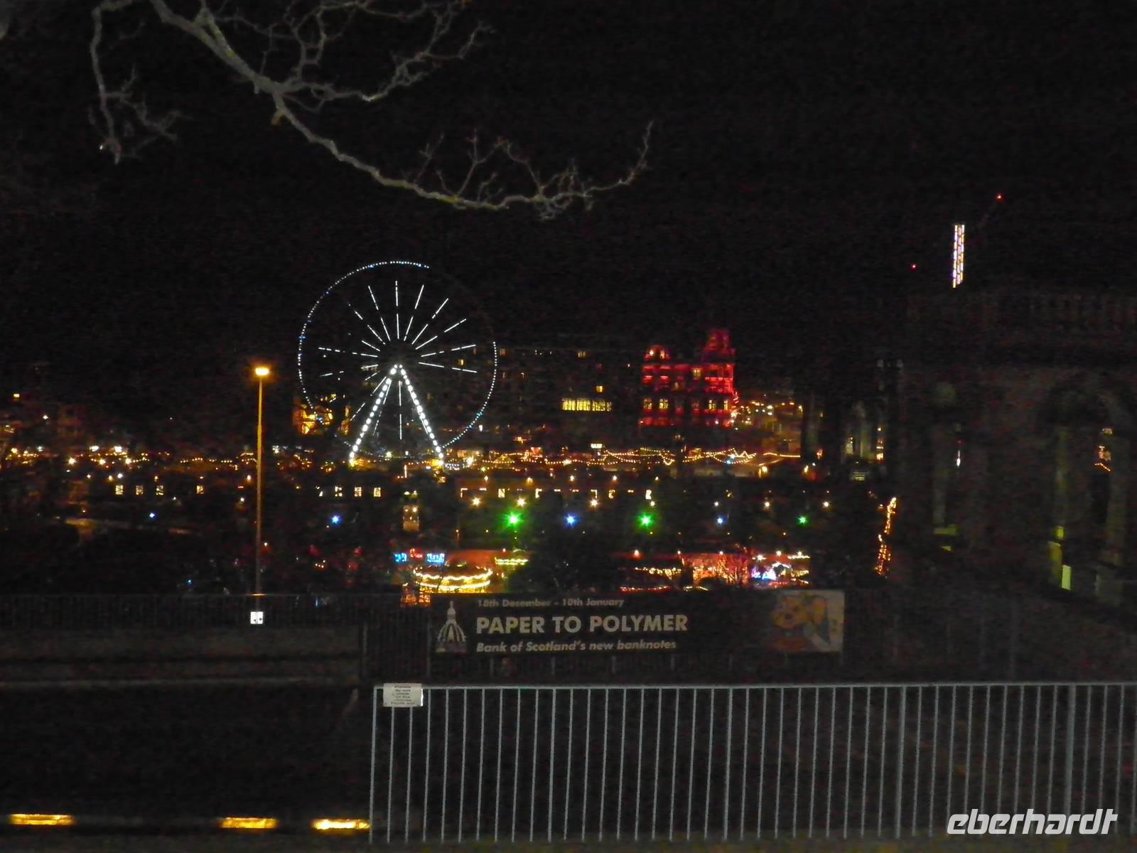 Der heutige Tag stand uns fast gänzlich zur freien Verfügung für Entdeckungen in Edinburgh. Unsere Reiseleiterin Constanze hatte uns einige Tipps gegeben, was wir ansehen könnten. Und so verbrachten alle den Tag unterschiedlich, einige besuchten das Edinburgh Castle, andere Holyrood Palace oder die Royal Yacht Britannia, andere gingen in eines der großen Museen oder Galerien der Stadt. Den europäischen Weihnachtsmarkt haben sicher alle besucht und noch einmal weihnachtliche Atmosphäre genossen. Am Nachmittag trafen wir uns dann alle wieder unterhalb der Burg. Dort befindet sich die Whisky Experience, wo wir eine unterhaltsame Stunde erlebten. Wir erfuhren wieder viel über das schottische Nationalgetränk und die unterschiedlichen Geschmacksrichtungen des Whiskys, der in verschiedenen Regionen Schottlands gebrannt wird. Wir kosteten und hatten wieder Gelegenheit, hochprozentige Souvenirs zu erstehen. Danach wurden wir schon bald im traditionsreichen Pub "The Advocate" erwartet. Wir stießen mit Prosecco auf die letzten Stunden des Jahres 2015 an und genossen ein leckeres Drei-Gänge-Menü, begleitet von Livemusik, die die Stunden im Pub für uns zu einem tollen Erlebnis machte. Nach dem Essen gingen wir nicht ins Hotel, sondern wieder hinaus in die Stadt. Heute erlebten wir den Jahreswechsel in der schottischen Hauptstadt, der hier über drei Tage unter der Bezeichnung Hogmanay gefeiert wird. Es gibt eine Straßenparty mit vier Bühnen und stündlich Feuerwerk, bis schließlich um Mitternacht zwei große Feuerwerke erstrahlten, eins über der Burg, ein weiteres über Calton Hill. Wir genossen die Zeit bis dahin und wünschten uns natürlich ein gutes und gesundes Neues Jahr. Auch andere Gäste der Streetparty gratulierten uns, ein buntes Treiben mit vielen Nationalitäten, die hier gemeinsam den Jahreswechsel feiern.