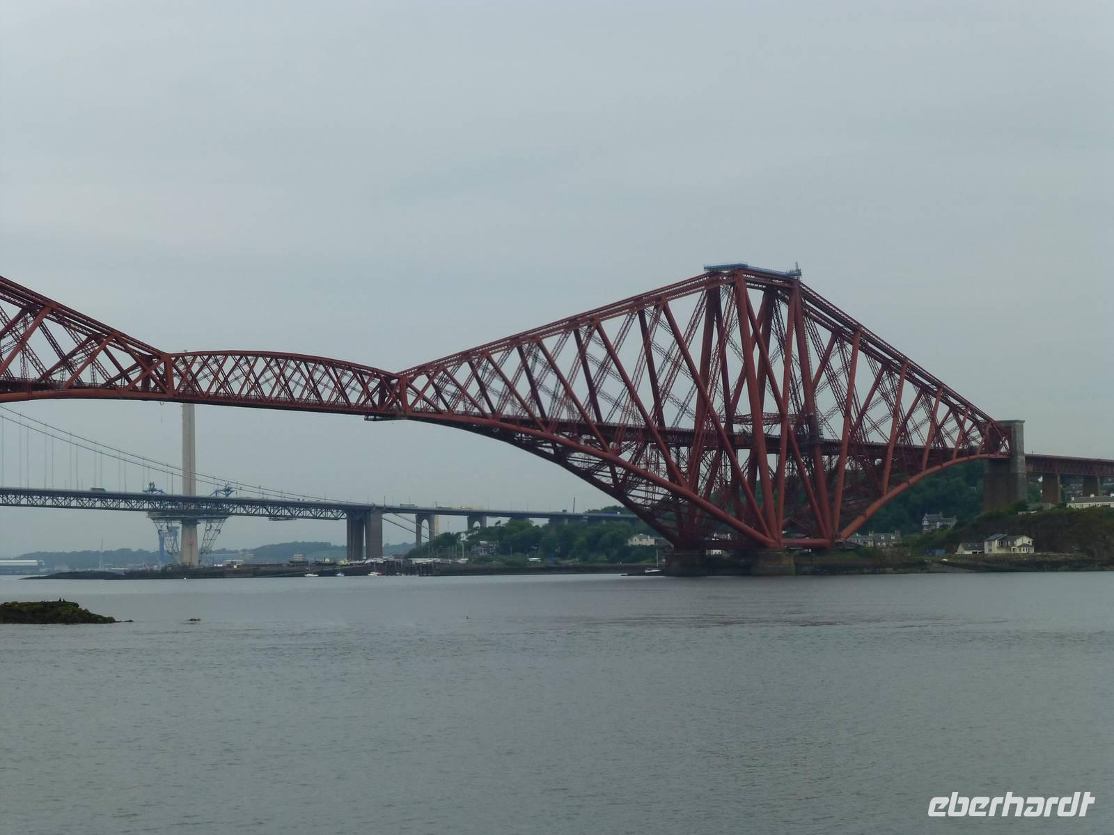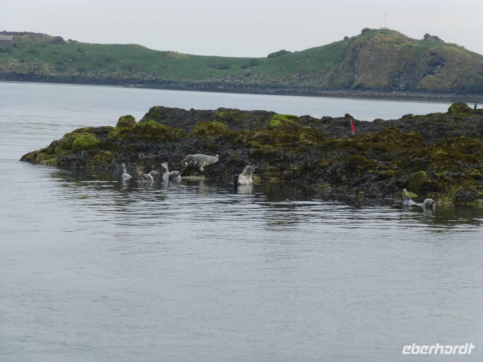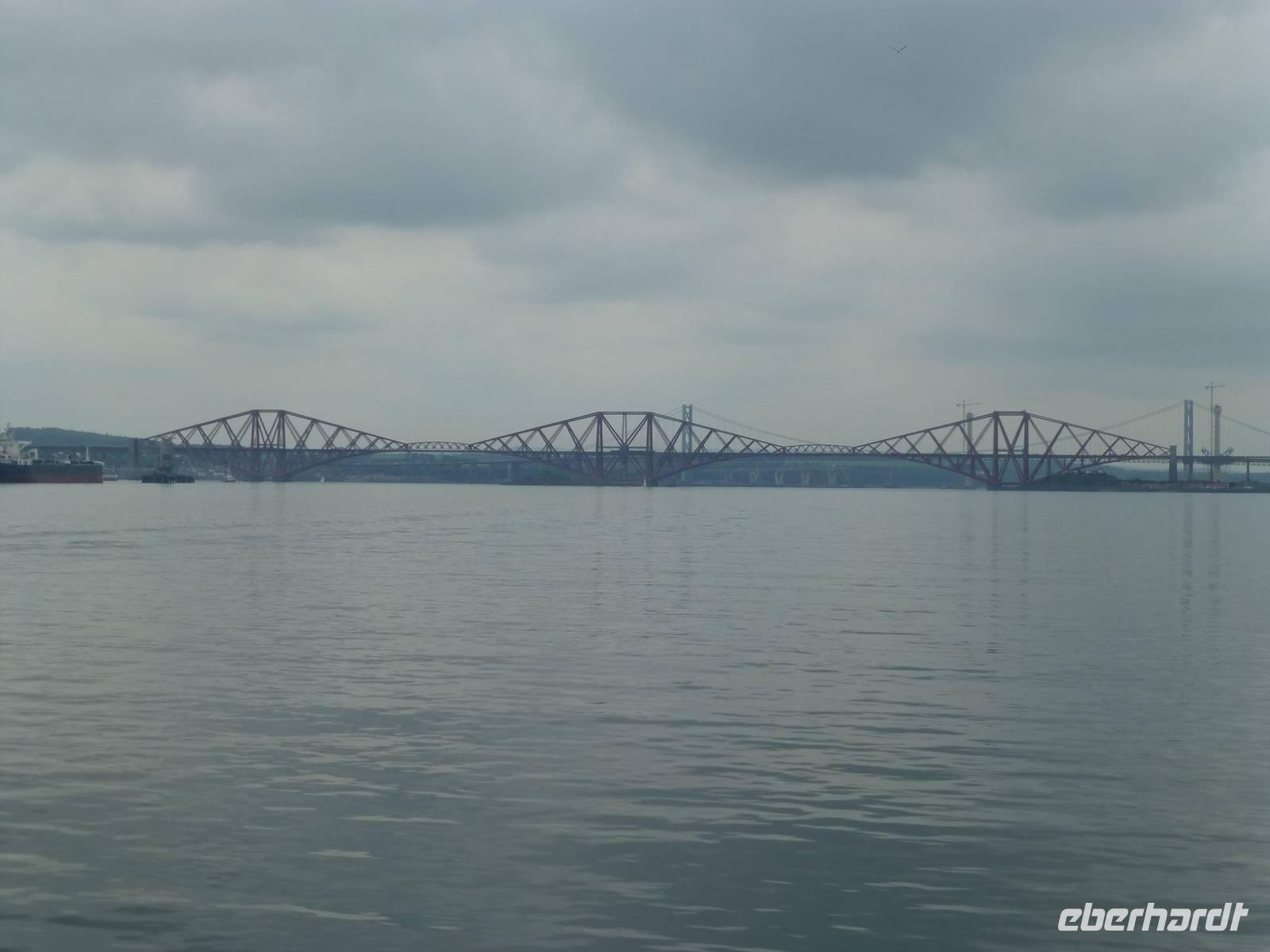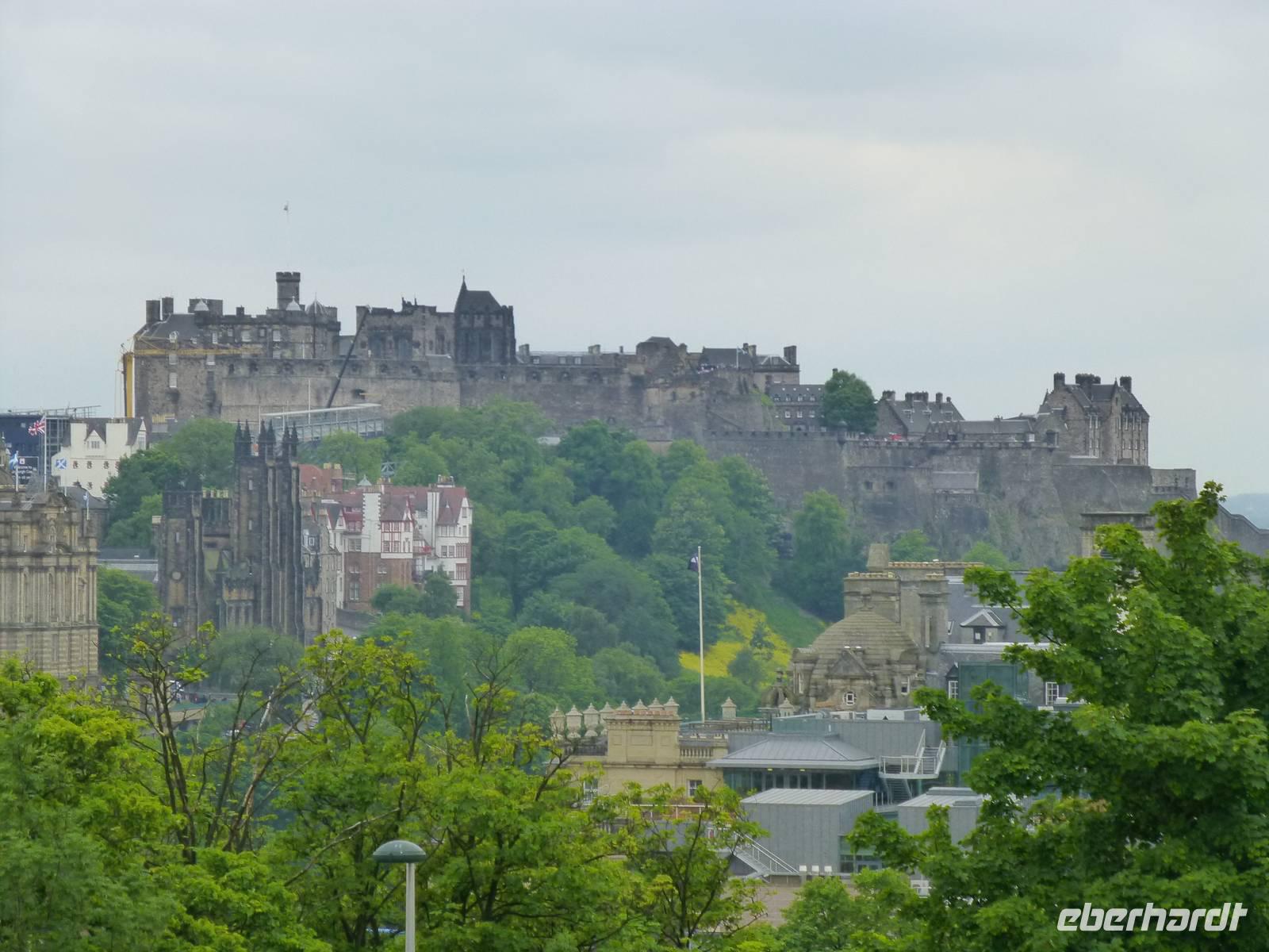 Heute besuchen wir Edinburgh. Doch bevor es soweit ist, bringt uns Esther, unsere heutige Chauffeurin, zuerst nach South Queensferry. Bevor wir unsere Bootsfahrt starten gibt es zuerst einmal Gelegenheit die Brücken über den Firth of Forth zu bestaunen. Im Vordergrund steht dabei die 1890 eröffnete Eisenbahnbrücke, ein ingenieurtechnisches Meisterwerk des 19. Jahrhunderts. Aus mehr als 50000 t Stahl gebaut und mit etwa 8 Millionen Nieten zusammen gehalten. Züge, welche die Brücke nutzen, sehen immer aus wie Spielzeug. Die andere Brücke ist die Forth Road Bridge, also die Straßenbrücke aus dem Jahr 1964, welche demnächst durch einen Neubau ersetzt werden wird. Die Bootstour auf dem Fjord, das bedeutet das Wort Firth, führt uns vorbei an einigen kleinen Inseln. Bei der Insel Inishcombe können wir zahlreiche Seevögel sehen und auch einige Robben. Von South Queensferry fahren wir dann in das Zentrum von Edinburgh, der Hauptstadt Schottlands. Am Charlotte Square treffen wir unsere Stadtführerin Beryl. Wir sehen zuerst die Neustadt mit ihren vielen georgianischen Häusern, verschaffen uns vom Calton Hill einen Überblick über die gesamte Stadt, halten am königlichen Palast, dem Holyrood Palace. Über die Royal Mile und den Grasmarket erreichen wir schließlich das Edinburgh Castel. Auf dem Vorplatz wird bereits wieder die Tribüne für das alljährliche Edinburgh Tattoo Festival aufgebaut. Jetzt hat jeder die Möglichkeit noch etwas auf eigene Faust zu unternehmen bevor wir wieder nach Pebbles zurück fahren, wo im Hotel schon das Abendessen auf uns wartet.