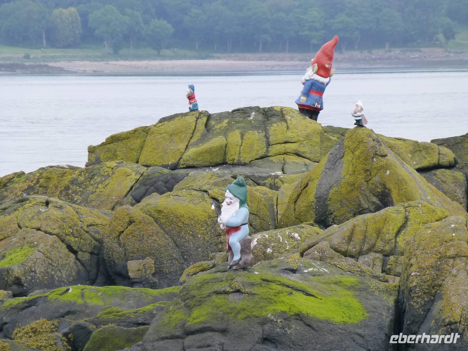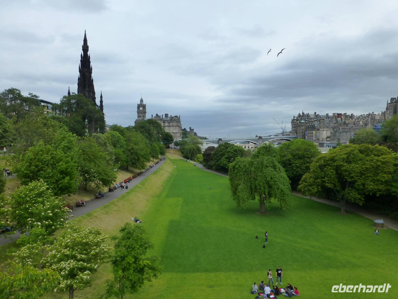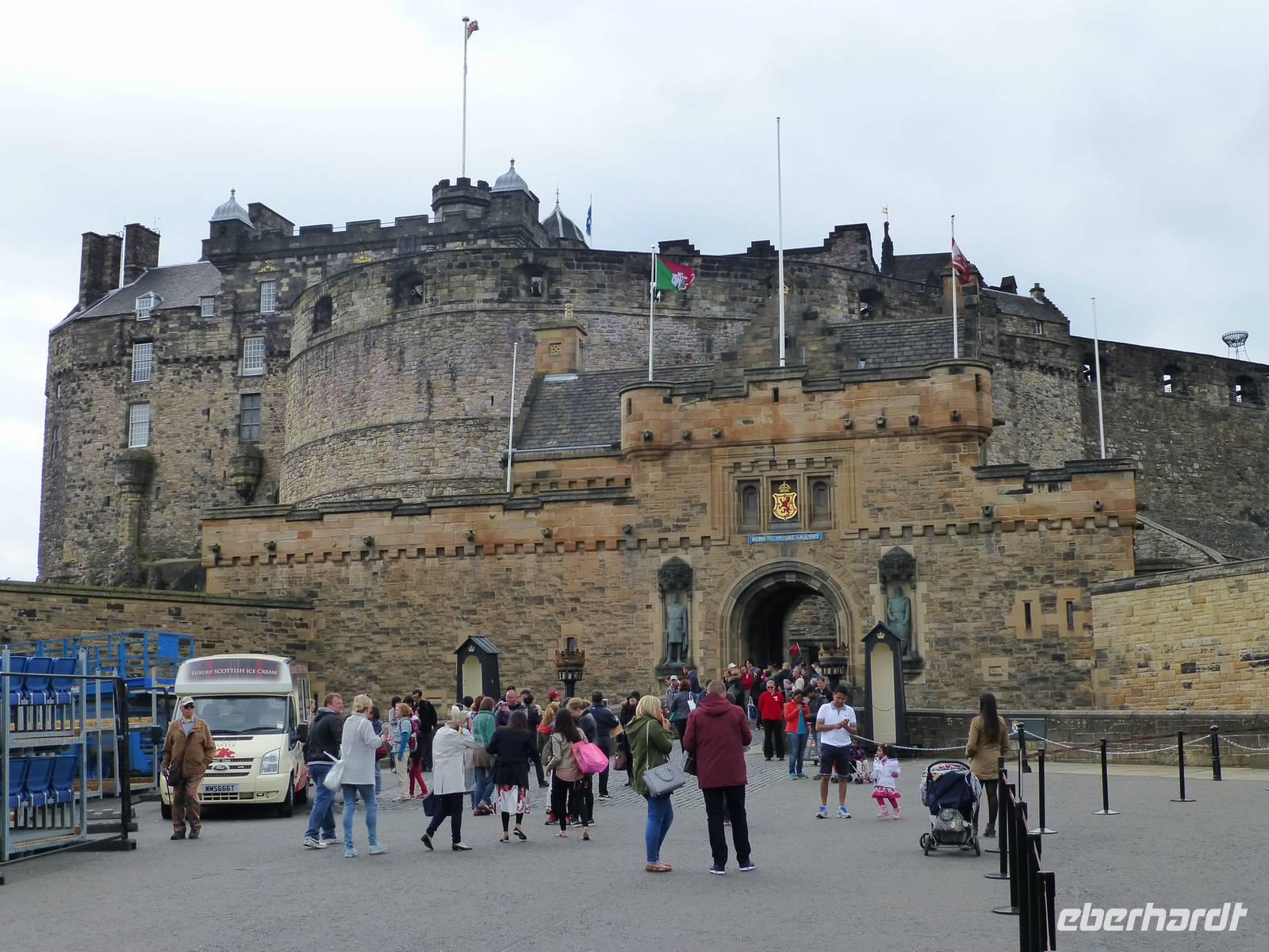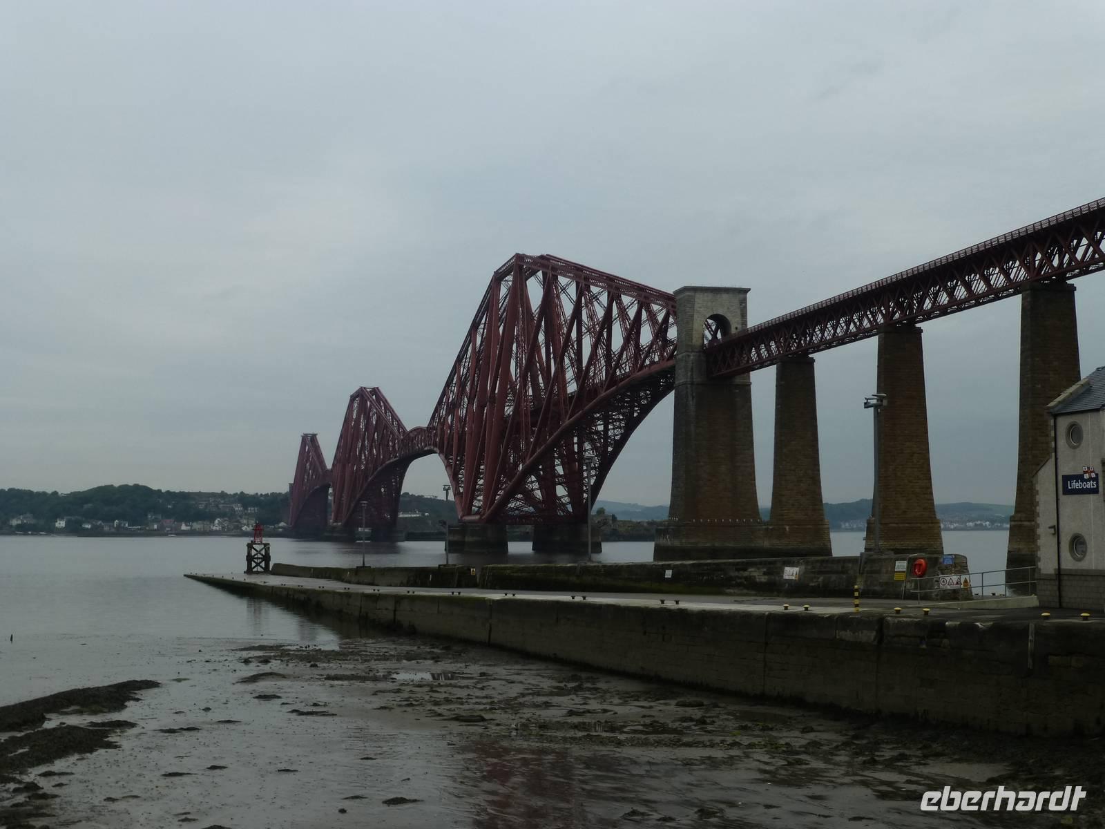 Heute besuchen wir Edinburgh. Doch bevor es soweit ist, bringt uns Esther, unsere heutige Chauffeurin, zuerst nach South Queensferry. Bevor wir unsere Bootsfahrt starten gibt es zuerst einmal Gelegenheit die Brücken über den Firth of Forth zu bestaunen. Im Vordergrund steht dabei die 1890 eröffnete Eisenbahnbrücke, ein ingenieurtechnisches Meisterwerk des 19. Jahrhunderts. Aus mehr als 50000 t Stahl gebaut und mit etwa 8 Millionen Nieten zusammen gehalten. Züge, welche die Brücke nutzen, sehen immer aus wie Spielzeug. Die andere Brücke ist die Forth Road Bridge, also die Straßenbrücke aus dem Jahr 1964, welche demnächst durch einen Neubau ersetzt werden wird. Die Bootstour auf dem Fjord, das bedeutet das Wort Firth, führt uns vorbei an einigen kleinen Inseln. Bei der Insel Inishcombe können wir zahlreiche Seevögel sehen und auch einige Robben. Von South Queensferry fahren wir dann in das Zentrum von Edinburgh, der Hauptstadt Schottlands. Am Charlotte Square treffen wir unsere Stadtführerin Beryl. Wir sehen zuerst die Neustadt mit ihren vielen georgianischen Häusern, verschaffen uns vom Calton Hill einen Überblick über die gesamte Stadt, halten am königlichen Palast, dem Holyrood Palace. Über die Royal Mile und den Grasmarket erreichen wir schließlich das Edinburgh Castel. Auf dem Vorplatz wird bereits wieder die Tribüne für das alljährliche Edinburgh Tattoo Festival aufgebaut. Jetzt hat jeder die Möglichkeit noch etwas auf eigene Faust zu unternehmen bevor wir wieder nach Pebbles zurück fahren, wo im Hotel schon das Abendessen auf uns wartet.