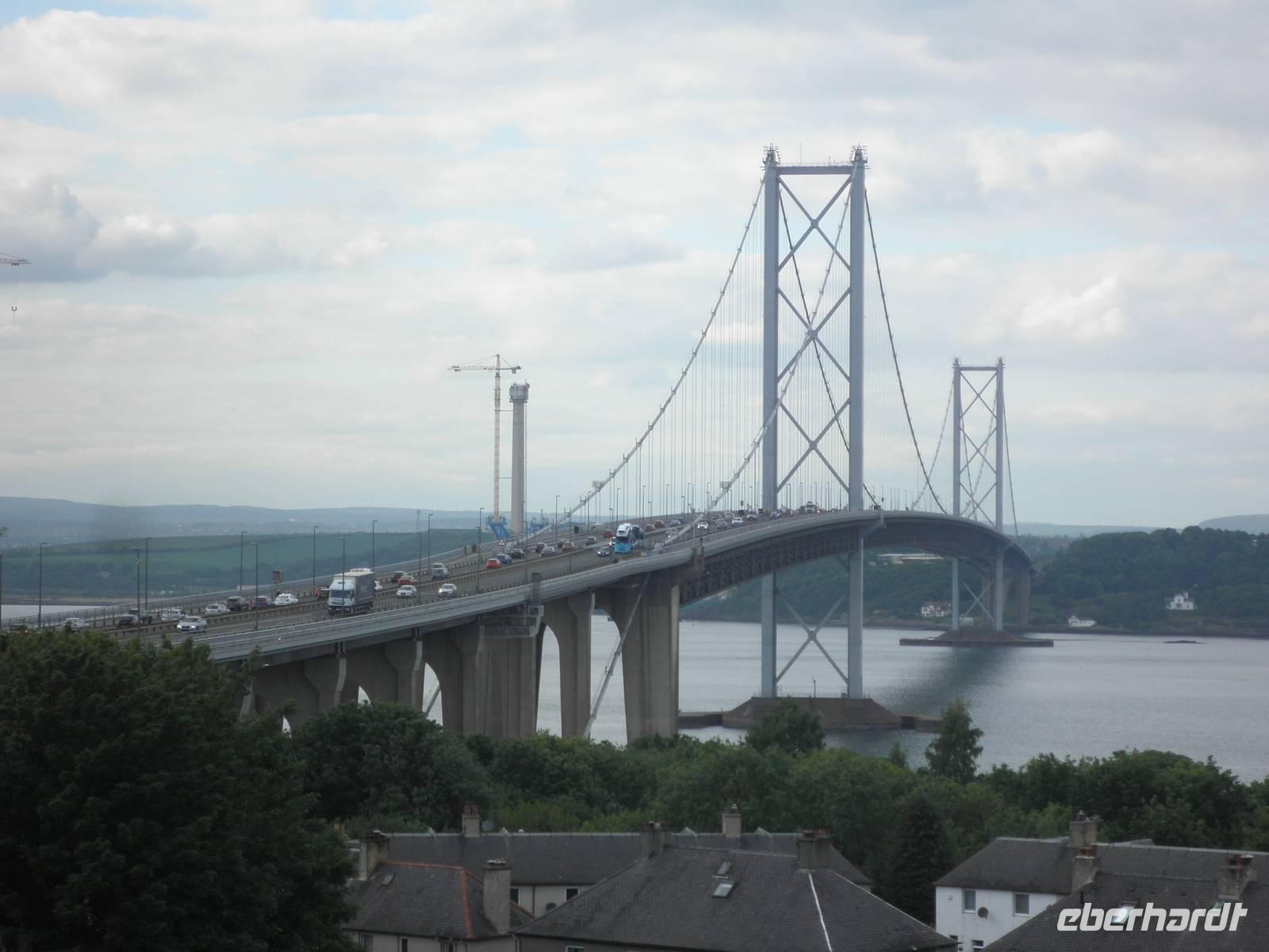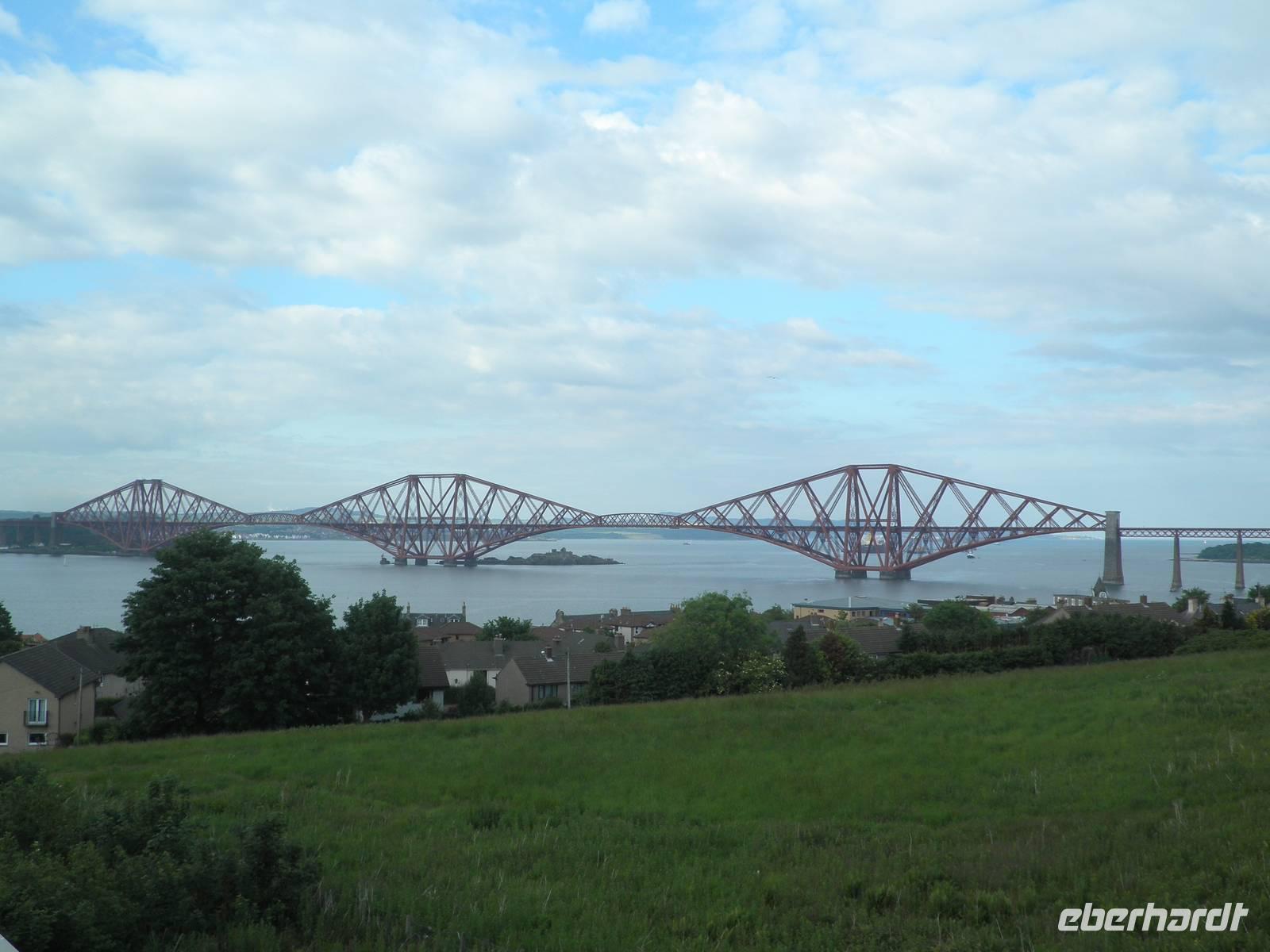 Nach einer Nacht auf See und einem kräftigen Frühstück verließen wir die Fähre und stiegen kurze Zeit später in unseren Bus, der uns am Terminal in Newcastle schon erwartete. Unser erster Halt war am Grenzpunkt England - Schottland, genannt Carter Bar. Dort stimmte uns ein Dudelsackspieler im schottischen Kilt mit Pipemusik auf die kommenden Tage in Schottland ein. In Jedburgh fotografierten wir die imposante Ruine der einstmals wohlhabenden Jedburgh Abbey. Die Größe der Anlage zeugt noch diesen vergangenen Zeiten. Nach weiteren Meilen, die unser Bus natürlich auf der linken Straßenseite zurücklegte, erreichten wir die Hauptstadt Schottlands: Edinburgh. Am Grassmarket trafen wir unsere Fluggäste, die schon eine Nacht in der Stadt verbracht hatten. Hier stieg auch unsere Stadtführerin in unseren Bus und zeigte uns während einer Stadtrundfahrt Edinburgh und seine Sehensürdigkeiten. Im Edinburgh Caste endete unser gemeinsamer Rundgang, wir hatten Freizeit für den Besuch von Burg und Stadt. Wir genossen das bunte Treiben auf der Royal Mile und trafen uns am frühen Abend wieder an unserem Bus. Eine Fahrt über die Firth of Forth Road Bridge rundete diesen Tag ab. Wir überquerten die Mündung des Forth, die hier eine Breite von 2500 m hat, sahen die nahe gelegene berühmte Eisenbahnbrücke, die sich seit 1890 komplett rot angestrichen über den Forth spannt. Bei einem Fotostop am Südufer konnten noch beeindruckende Fotos von beiden Brücken und der neu entstehenden Straßenbrücke gemacht werden. Den Abend ließen wir bei einem Drei-Gänge-Menü in unserem Hotel in Grangemouth ausklingen.