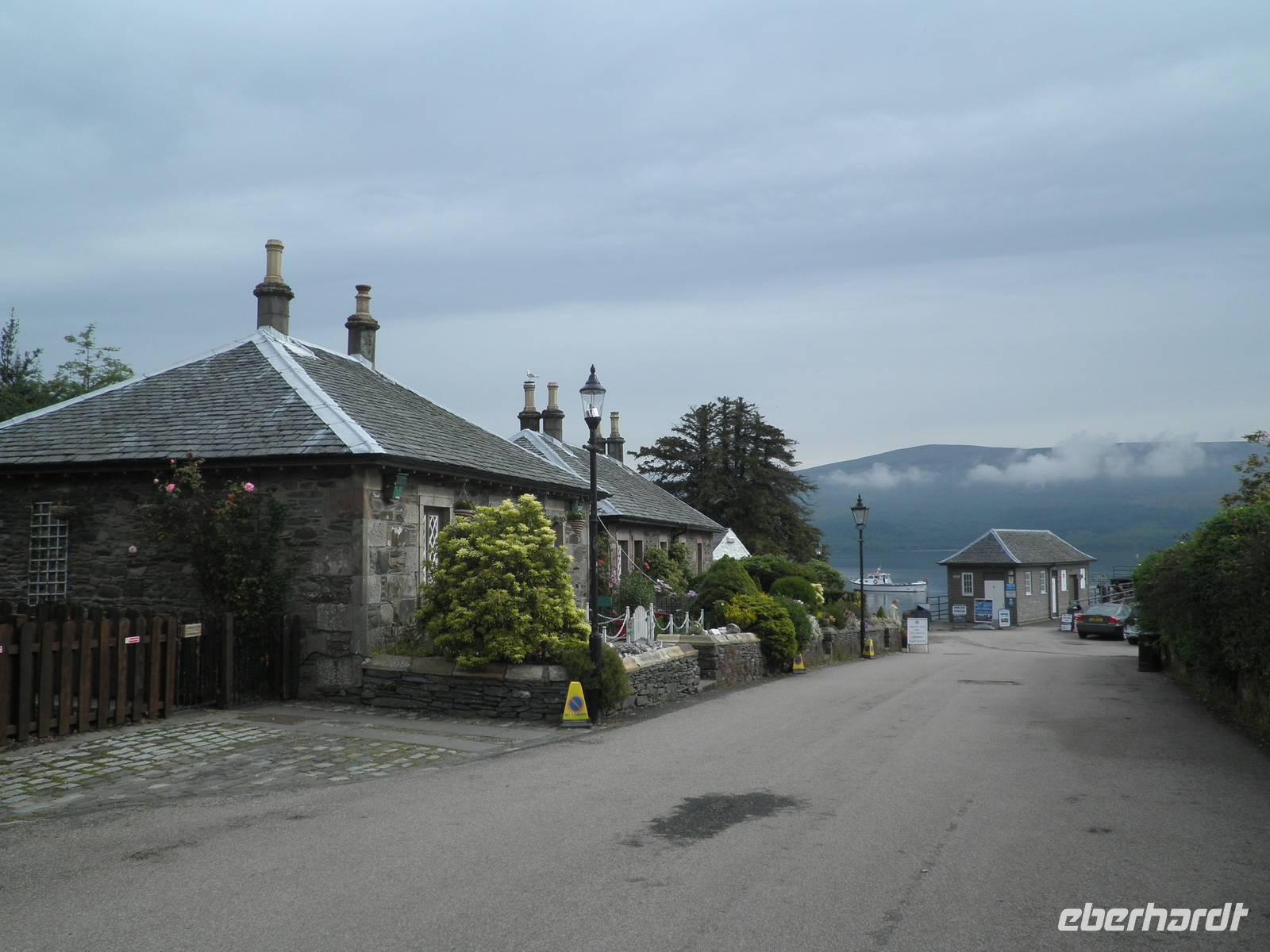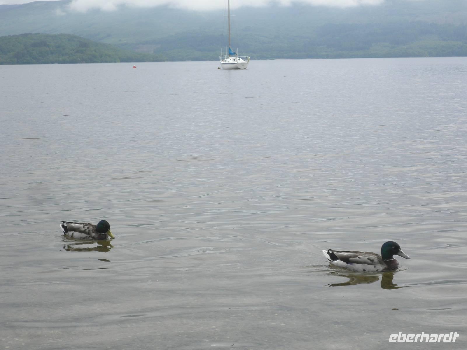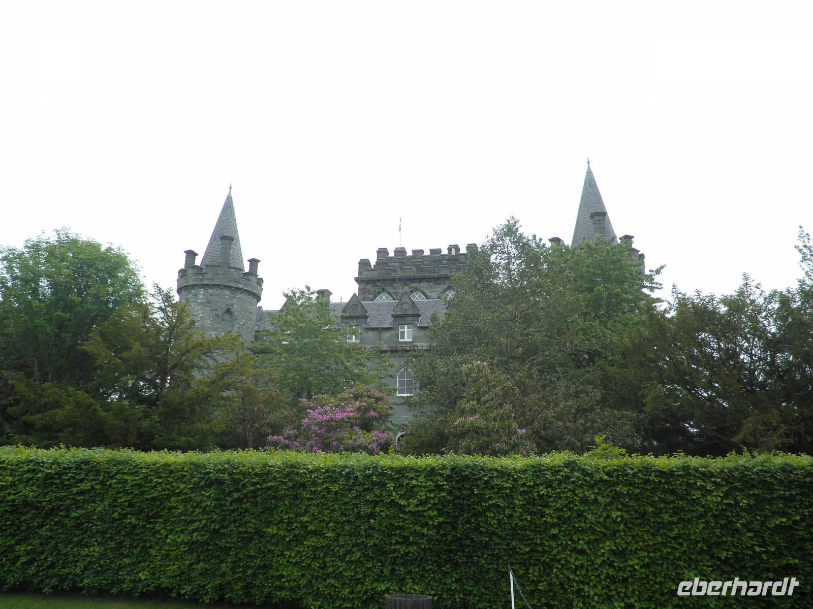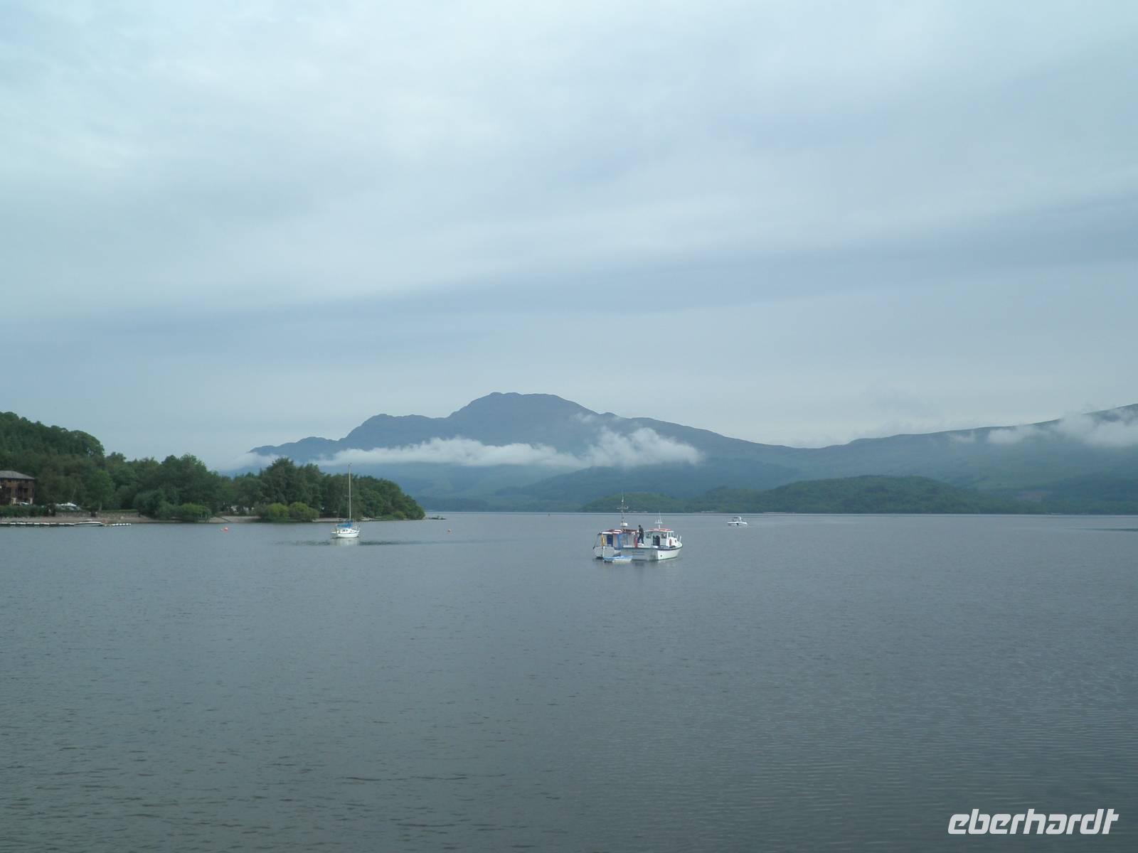 Bereits am Morgen begrüßte uns wieder schottischer Regen, dennoch ließen wir uns die Freude auf den kommenden Ausflug nicht verderben. Gestärkt nach einem kräftigen schottischen Frühstück mit Porridge (Haferbrei), gebratenem Speck, Würstchen und gebackenen Bohnen stiegen wir in unseren Bus. Unser Weg führte uns zunächst an die "bonnie Banks of Loch Lomond", die schönen Ufer des Loch Lomond. Wir hörten die Geschichte der Entstehung des berühmten Liedes, und unsere Reiseleiterin spielte es auch für uns im Bus. Nach einiger Fahrt durch herrliche Landschaft mit kargen Hügeln, Ginster, Farn und Seen erreichten wir Inverary Castle. Wir stiegen aus und nutzten die Gelegenheit, das gepflegte kleine Schloss zu fotografieren. Im schönen Küstenstädtchen Oban, wo man schon nah an den Hebriden ist, verbrachten wir eine ausgiebige Mittagspause. Einige besichtigten die örtliche Destillery und kosteten den dort gebrannten Whisky. Andere nutzten die Gelegenheit, frische Meeresfrüchte oder Fisch zu essen bzw. einen Bummel durch die hübsche Hafenstadt zu machen, über der der McCaigs Tower thront, eine nicht ganz vollendete Nachbildung des Colosseums in Rom mit einem Durchmesser von etwa 200 m. Wir fuhren noch ein Stück weiter nach Norden, bis zum Beginn des Caledonischen Kanals. In Fort William besichtigten wir Neptune's Staircaise, das sind sieben Schleusenbecken, die treppenartig aufgereiht sind und zum Caledonischen Kanal gehören, der Anfang des 19. Jahrhunderts von Thomas Telford gebaut worden ist. Durchs berühmte Glencoe, das Tal der Tränen, ein beeindruckendes breites Gletschertal mit Legenden und viel Einsamkeit, fuhren wir wieder in Richtung Süden. Wir erreichten unser Hotel in Drymen und genossen ein leckeres Abendessen. Der Tag hatte uns einigen Regen beschert, nun hofften wir auf den nächsten Morgen, dass die Sonne die Wolken endlich vertreiben würde.