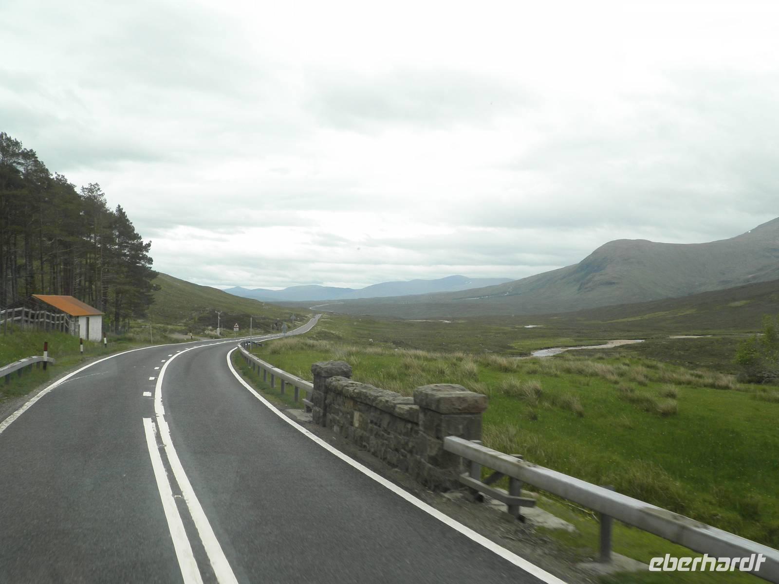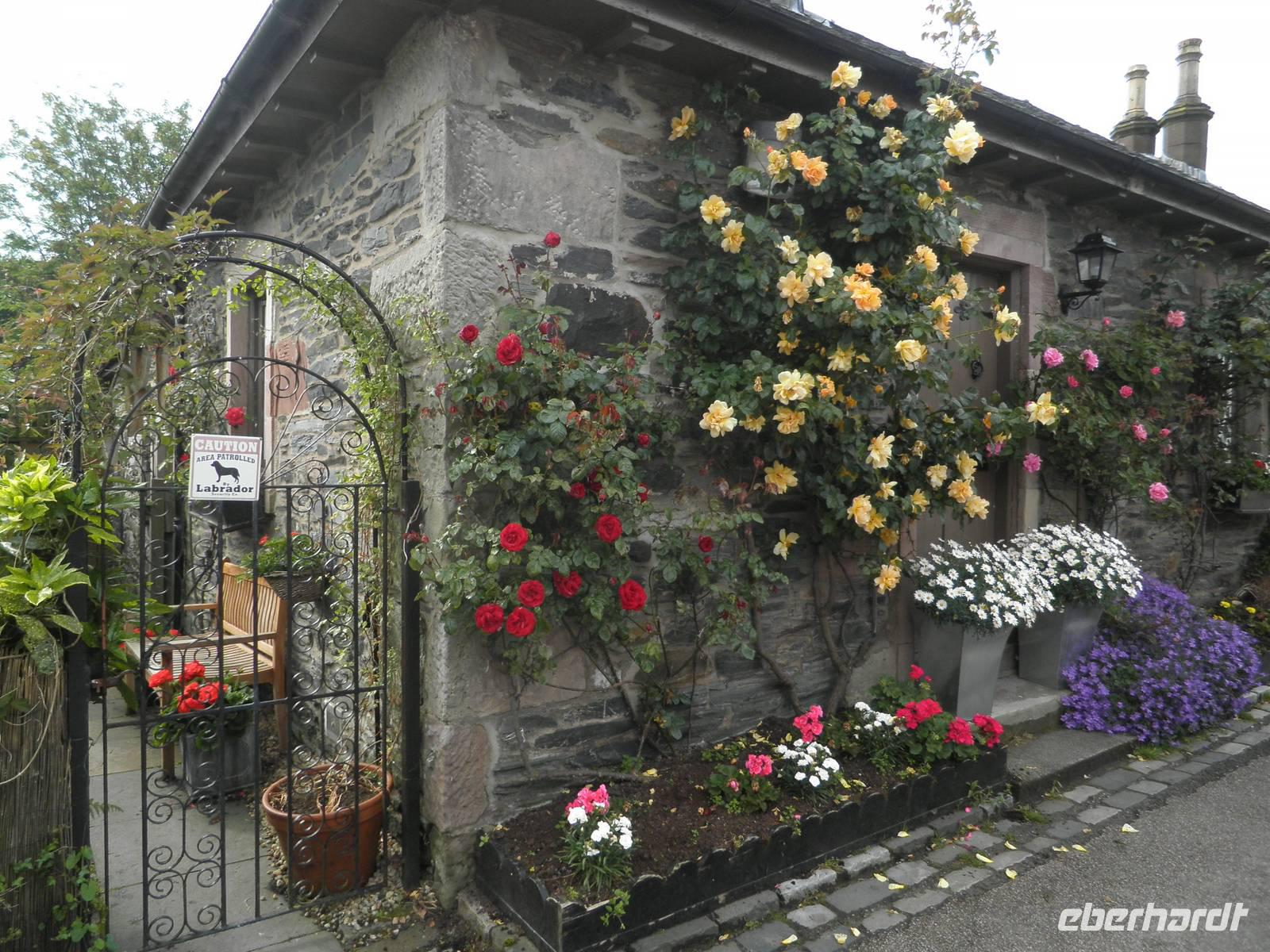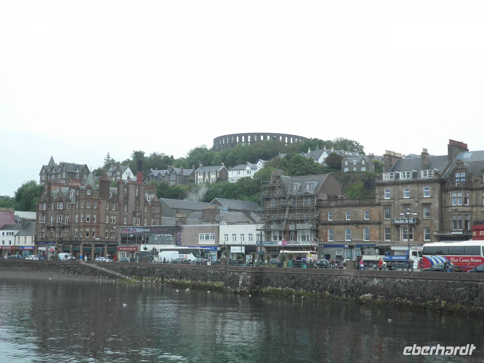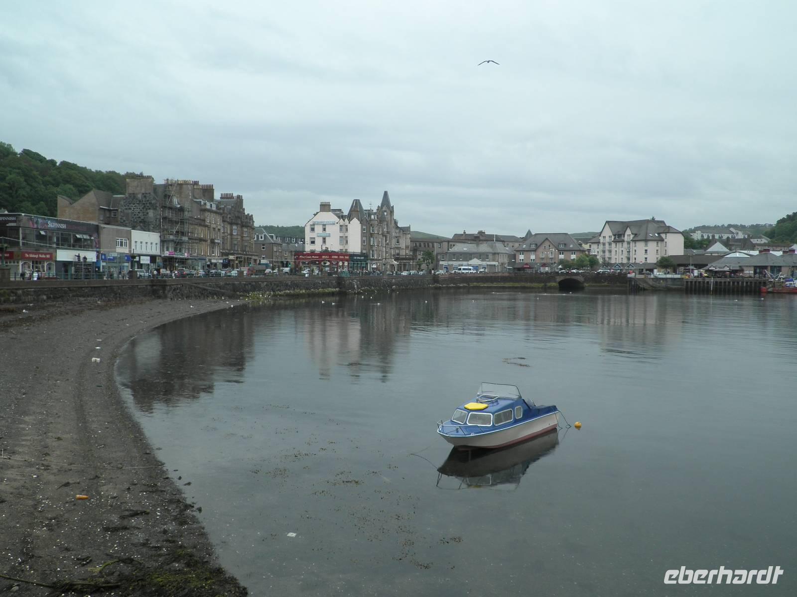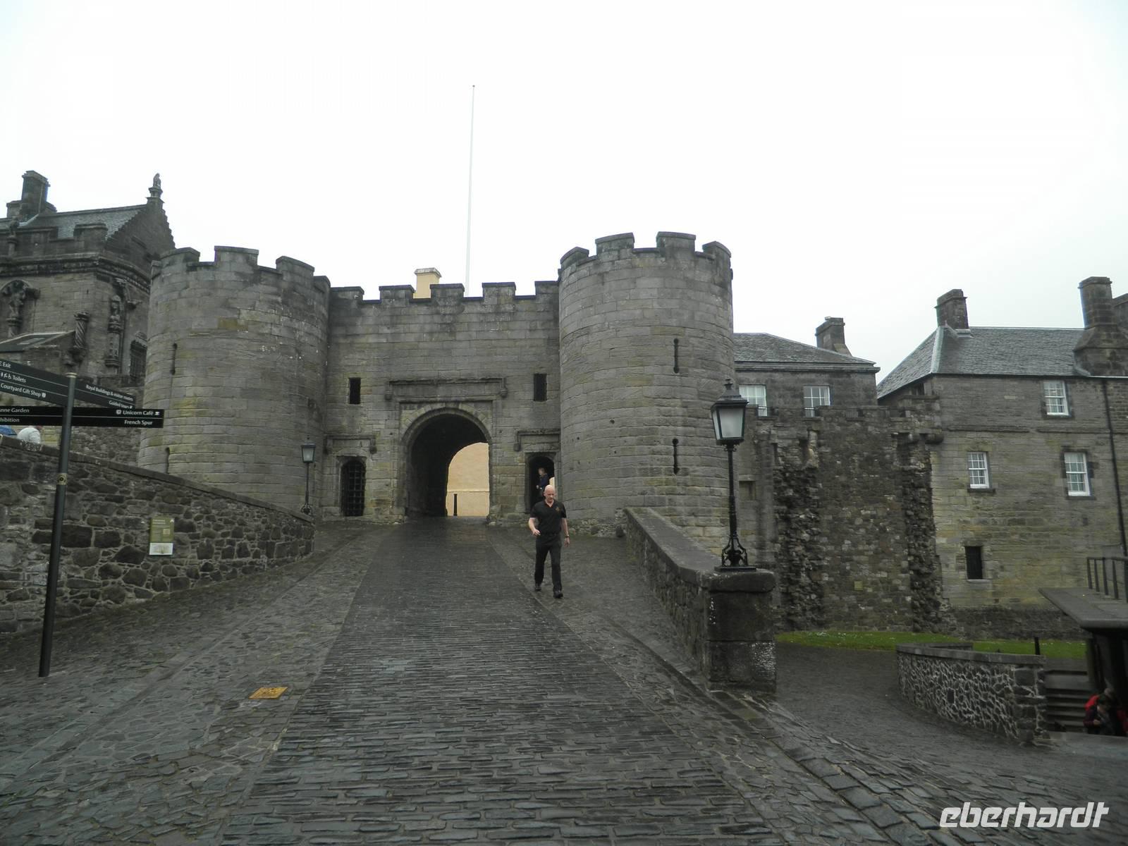 Bereits am Morgen begrüßte uns wieder schottischer Regen, dennoch ließen wir uns die Freude auf den kommenden Ausflug nicht verderben. Gestärkt nach einem kräftigen schottischen Frühstück mit Porridge (Haferbrei), gebratenem Speck, Würstchen und gebackenen Bohnen stiegen wir in unseren Bus. Unser Weg führte uns zunächst an die "bonnie Banks of Loch Lomond", die schönen Ufer des Loch Lomond. Wir hörten die Geschichte der Entstehung des berühmten Liedes, und unsere Reiseleiterin spielte es auch für uns im Bus. Nach einiger Fahrt durch herrliche Landschaft mit kargen Hügeln, Ginster, Farn und Seen erreichten wir Inverary Castle. Wir stiegen aus und nutzten die Gelegenheit, das gepflegte kleine Schloss zu fotografieren. Im schönen Küstenstädtchen Oban, wo man schon nah an den Hebriden ist, verbrachten wir eine ausgiebige Mittagspause. Einige besichtigten die örtliche Destillery und kosteten den dort gebrannten Whisky. Andere nutzten die Gelegenheit, frische Meeresfrüchte oder Fisch zu essen bzw. einen Bummel durch die hübsche Hafenstadt zu machen, über der der McCaigs Tower thront, eine nicht ganz vollendete Nachbildung des Colosseums in Rom mit einem Durchmesser von etwa 200 m. Wir fuhren noch ein Stück weiter nach Norden, bis zum Beginn des Caledonischen Kanals. In Fort William besichtigten wir Neptune's Staircaise, das sind sieben Schleusenbecken, die treppenartig aufgereiht sind und zum Caledonischen Kanal gehören, der Anfang des 19. Jahrhunderts von Thomas Telford gebaut worden ist. Durchs berühmte Glencoe, das Tal der Tränen, ein beeindruckendes breites Gletschertal mit Legenden und viel Einsamkeit, fuhren wir wieder in Richtung Süden. Wir erreichten unser Hotel in Drymen und genossen ein leckeres Abendessen. Der Tag hatte uns einigen Regen beschert, nun hofften wir auf den nächsten Morgen, dass die Sonne die Wolken endlich vertreiben würde.