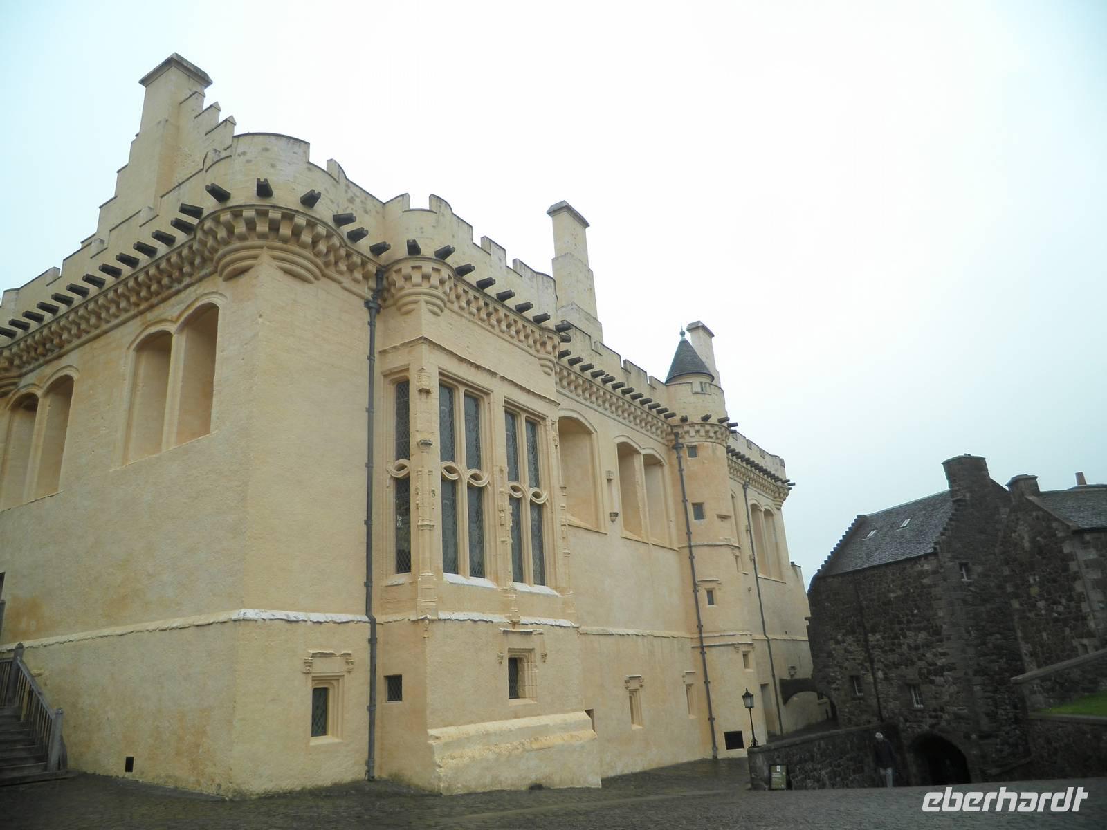 Heute hatten wir nur eine kurze Anfahrt zu unserem ersten Halt: Falkirk Wheel, das drehende Schiffshebewerk. Zunächst konnten wir beobachten, wie das Hebewerk funktioniert, während Boote über eine Höhe von 35 m hinauf- oder hinunter gehoben wurden. Wir stiegen auch in eines der Ausflugsboote und wurden hinauf gehoben, um eine kurze Kanalrundfahrt zu erleben. Wohlbehalten und auf festem Boden zurück bestiegen wir danach wieder unseren Bus, um nach Stirling zu fahren. Wir besichtigten Stirling Castle, eine der wichtigsten Burgen der schottischen Könige, u.a. den Stuarts. Ein Stadtbummel in Stirlings Altstadt zu Füßen der imposanten Burganlage rundete den Nachmittag ab. Auf unserer Fahrt zu unserem nächsten Hotel in Drymen durchquerten wir die Trossachs, Teil des Nationalparks Loch Lomond and the Trossachs. Die Fahrt führte uns entlang der Ufer romantischer Seen, die hier Lochs genannt werden, und durch hügelige Wälder und Felder. Am Loch Katrine stiegen wir aus, gerade legte die SS Sir Walter Scott dort an, ein historisches Dampfschiff, mit dem Besucher Ausflüge auf Loch Katrine Unternehmen können. Anschließend fuhren wir nach Drymen, genossen im Winnock Hotel ein leckeres Abendessen und einige Gäste ließen den Tag im benachbarten Pub The Clachan Inn ausklingen, der der ältesteste Pub Schottlands sein soll, gegründet 1734.