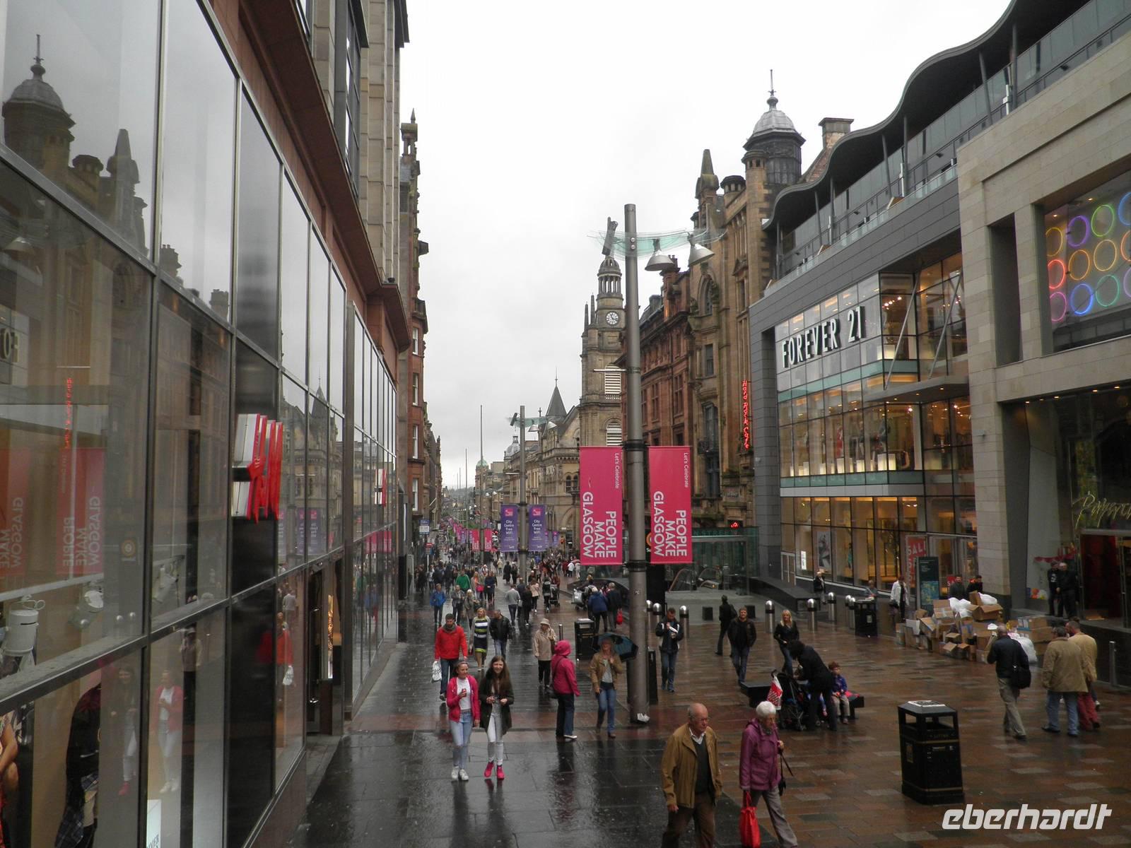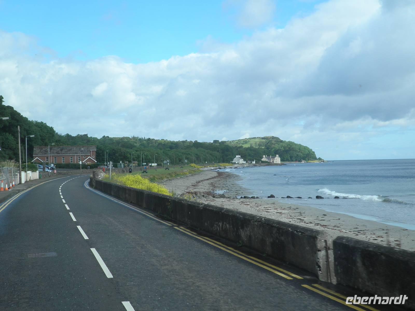 Doch auch dieser Morgen erwartete uns mit Wolken und bescherte uns den ganzen Vormittag immer wieder kurze Regenschauer. In Glasgow besichtigten wir die St. Mungo Kathedrale und am George Square und in der benachbarten Fußgängerzone im Zentrum der Stadt verbrachten wir noch etwas freie Zeit mit bummeln und einkaufen. Am Mittag verließen wir Glasgow, die größte Stadt Schottlands, um in Richtung Fähre nach Nordirland zu fahren. Am kleinen Fischerhhafen von Dirvan hielten wir zum Mittagessen und erreichten pünktlich den Fähranleger von Cairnryan, wo wir mit unserem Bus auf die Fähre der Stena Line fuhren. Auf den verschiedenen Passagierdecks verbrachten wir die gut zweistündige Überfahrt nach Belfast. Es war eine schöne Schiffahrt bei freundlichem Wetter und kaum Seegang. nachdem wir Belfast erreicht hatten, fuhren wir direkt in unser Hotel mit dem Namen Wellington Park Hotel, in dem wir zwei Nächte verbringen würden.