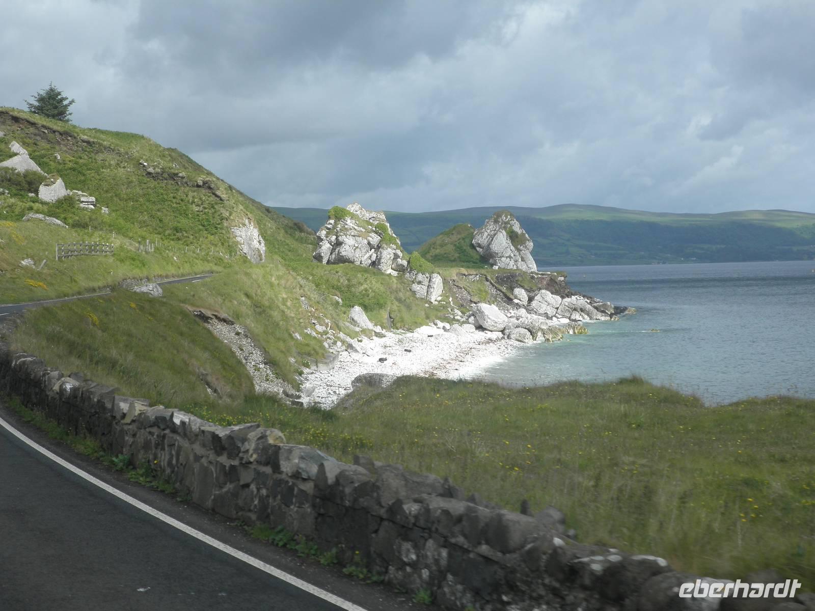 Nach dem Besuch der Stadt fuhren wir in unser Hotel nach Letterkenny, das sich schon auf dem Gebiet der Republik Irland befindet. Wir konnten wieder in Euro bezahlen und die Entfernungsangaben waren nun nicht mehr in Meilen, sondern in km. Dennoch erinnert noch viel an die Engländer: hier herrscht auch Linksverkehr und die Steckdosen sind nur mit dem entsprechenden Adapter auf das britische System zu benutzen.