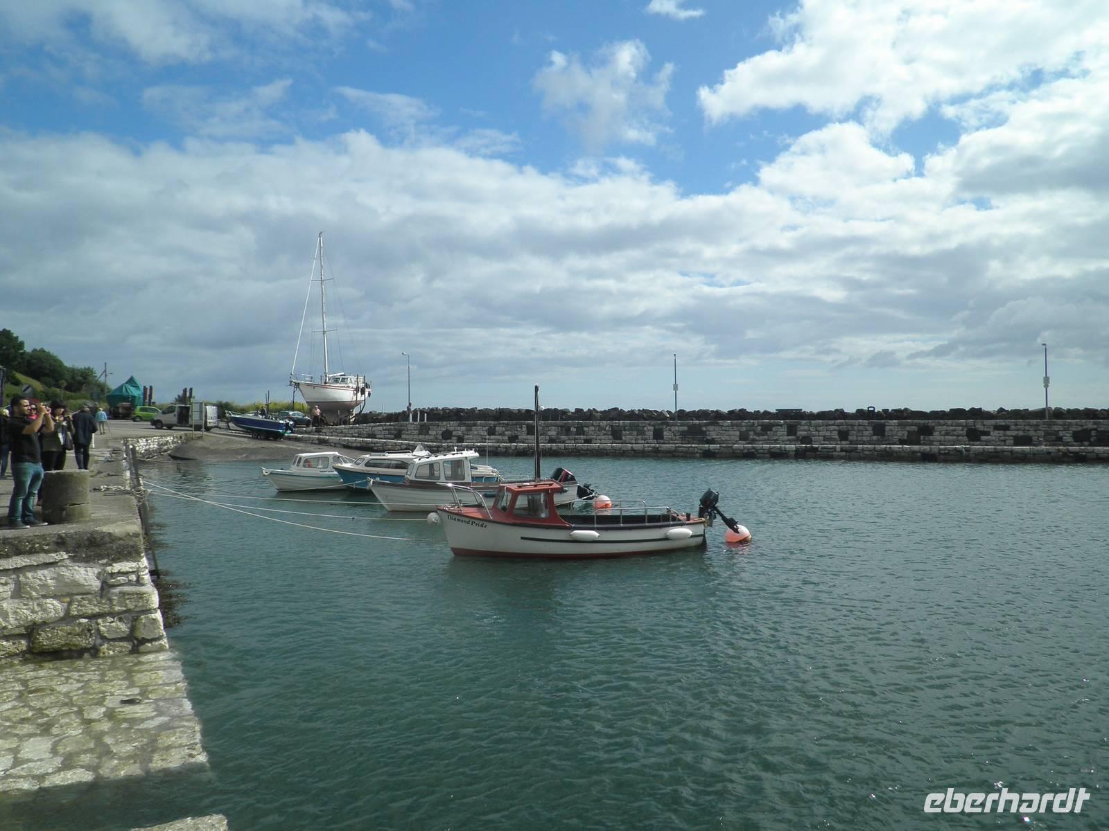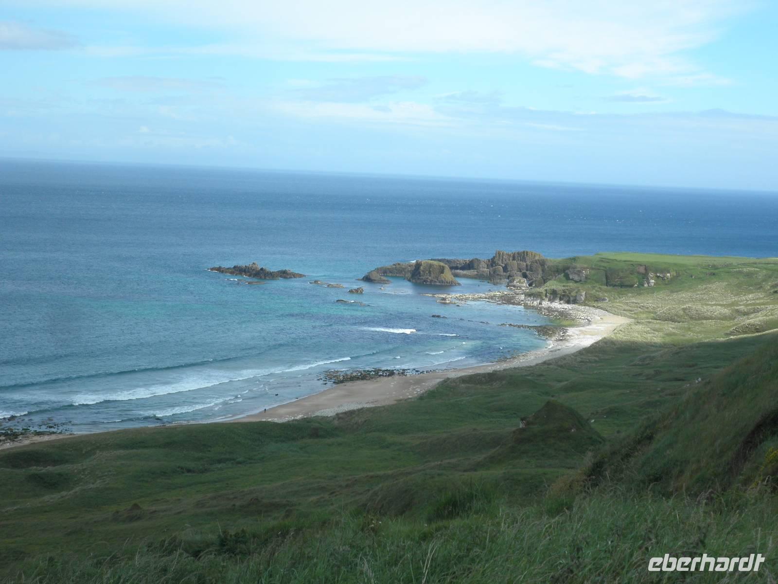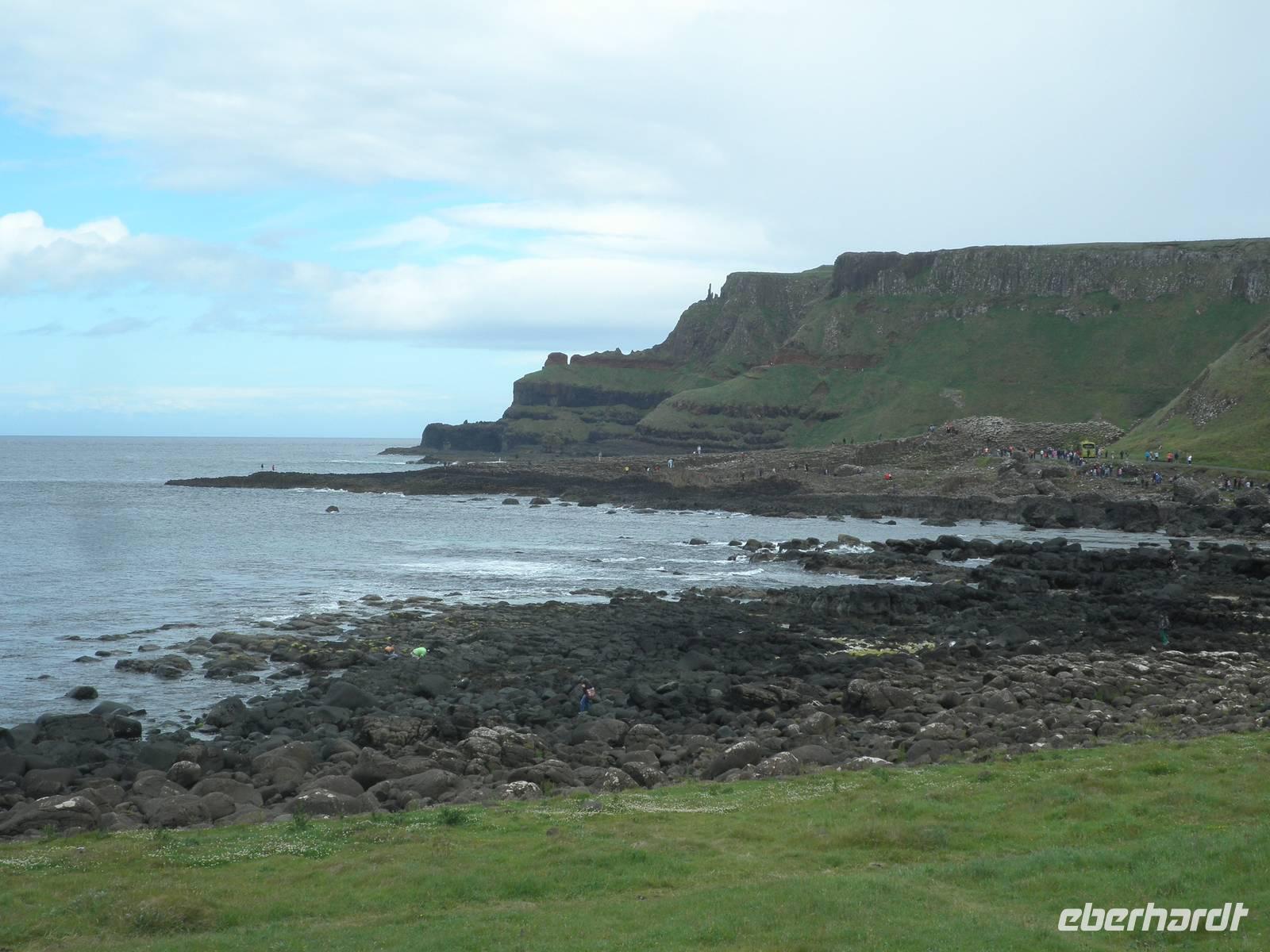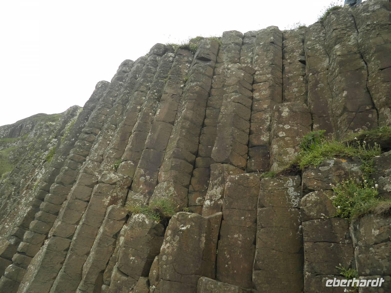 Dieser Tag stand ganz im Zeichen der herrlichen Küste von Nordirland. Nachdem uns das Wetter die vergangenen Tage reichlich Regen beschert hatte, verwöhnte es uns heute mit Sonne und damit mit einer tollen Aussicht. Wir verließen Belgast am Morgen und fuhren entlang der romantischen Küstenstraße, die sich die Antrim Coast entlang schlängelt, Wir sahen malerische Buchten, schöne Fischerorte und graue Felsen, an denen sich die Brandung brach. In Carnlough machten wir Pause und genossen die Seeluft und die Armosphäre im kleinen Fischerhafen des Ortes. Nach einem Kaffee fuhren wir weiter nach Norden. Unser Mittagessen fand am Bus statt direkt an einem Aussichtspunkt hoch über der atemberaubenden Küste. Nach weiterer kurzer Fahrt erreichten wir schließlich die wohl beeindruckendste Sehenswürdigkeit Nordirlands, die die Natur geschaffen hat: Giant's Causeway. Wir spazierten hinunter ans Meer und kletterten auf den beeindruckenden Basaltsäulen umher, die laut einer Legende der Riese Finn hier ins Meer geworfen hat, um einen trockenen Weg hinüber nach Schottland zu bauen. Doch sein schottischer Gegenspieler, der auch ein Riese war, hat bei seiner Flucht über den Causeway die Säulen hinter sich zerstört, so dass heute der Weg des Riesen einfach in den Fluten endet. Diese Legende ist unterhaltsam, aber tatsächlich hat erkaltende Lava diese Basaltsäulen geformt. Ihr besonderes Merkmal ist ihre Form, sie sind alle als 5-, 6- oder 8-Eck geformt, einige weisen sogar eine Höhe von bis zu 12 Metern auf. Nach diesem wirklich beeindruckenden Naturerlebnis fuhren wir nach Derry / Londonderry. Die besterhaltene Stadtmauer in Großbritannien lädt zu einem Spaziergang ein. Etwa eintausendfünfhundert Meter ist sie lang und so kann man eine ganze Runde auf ihr gehen und dabei die Altstadt erkunden. In der Stadt ist die jüngere Vergangenheit noch deutlich zu spüren. Am Eingang des Stadtteils Bogside gibt es verschiedene Wandgemälde, die u.a. an den sogenannten Blutsonntag am 30.01.1972 erinnern. An diesem Tag sind viele junge Menschen bei Unruhen durch Schüsse des britischen Mitiltärs ums Leben gekommen. "Free Derry" steht auf einem weißen Stein, der die irische Fahne trägt.