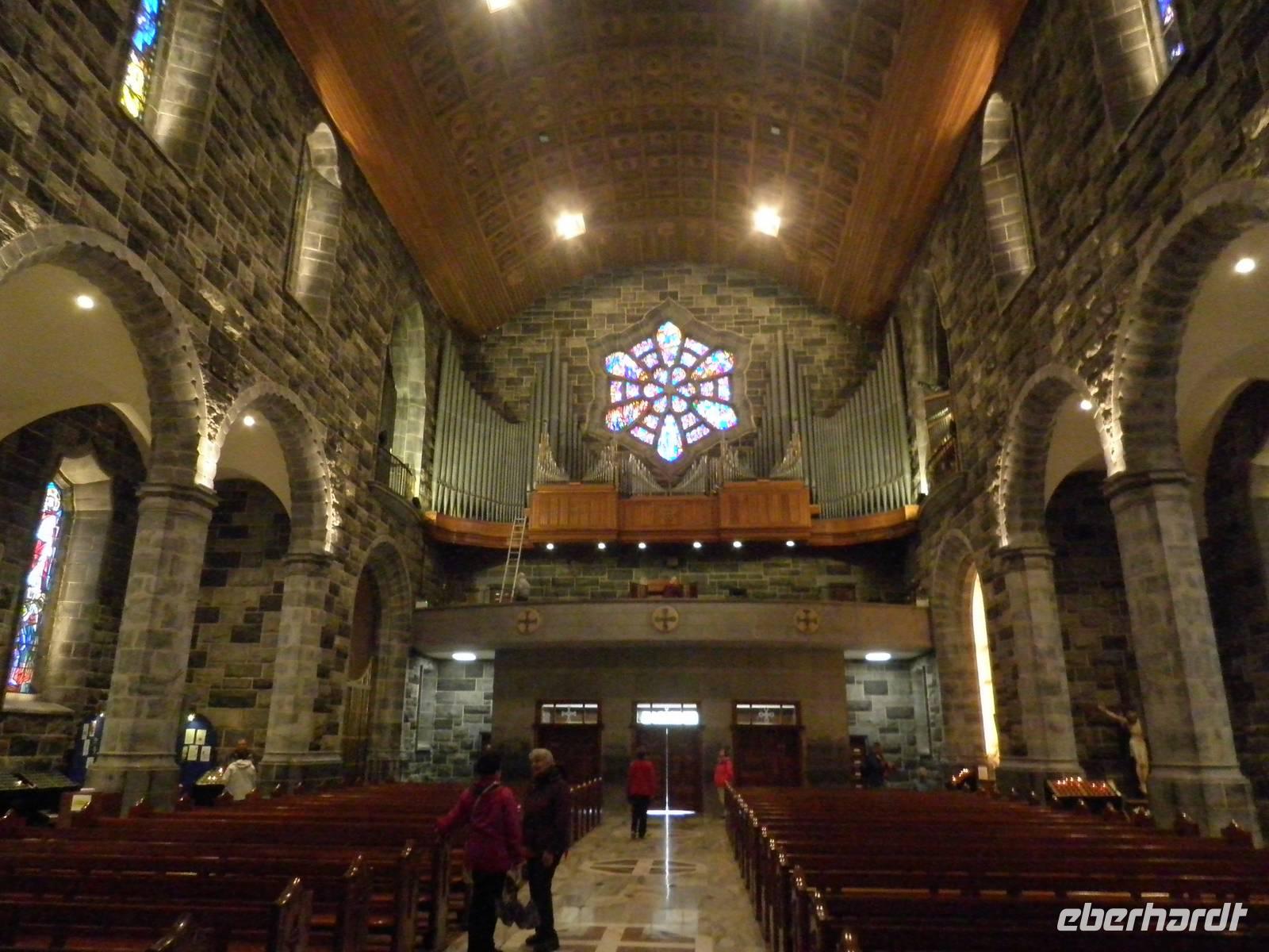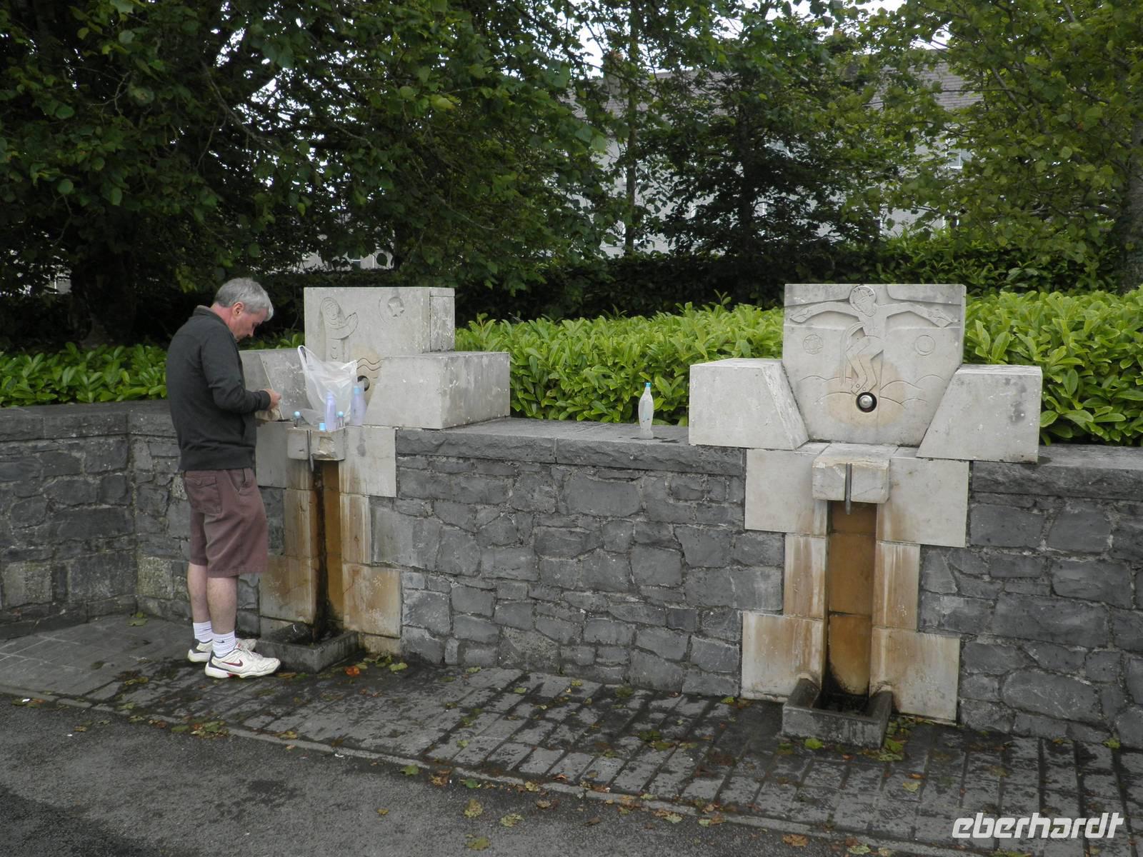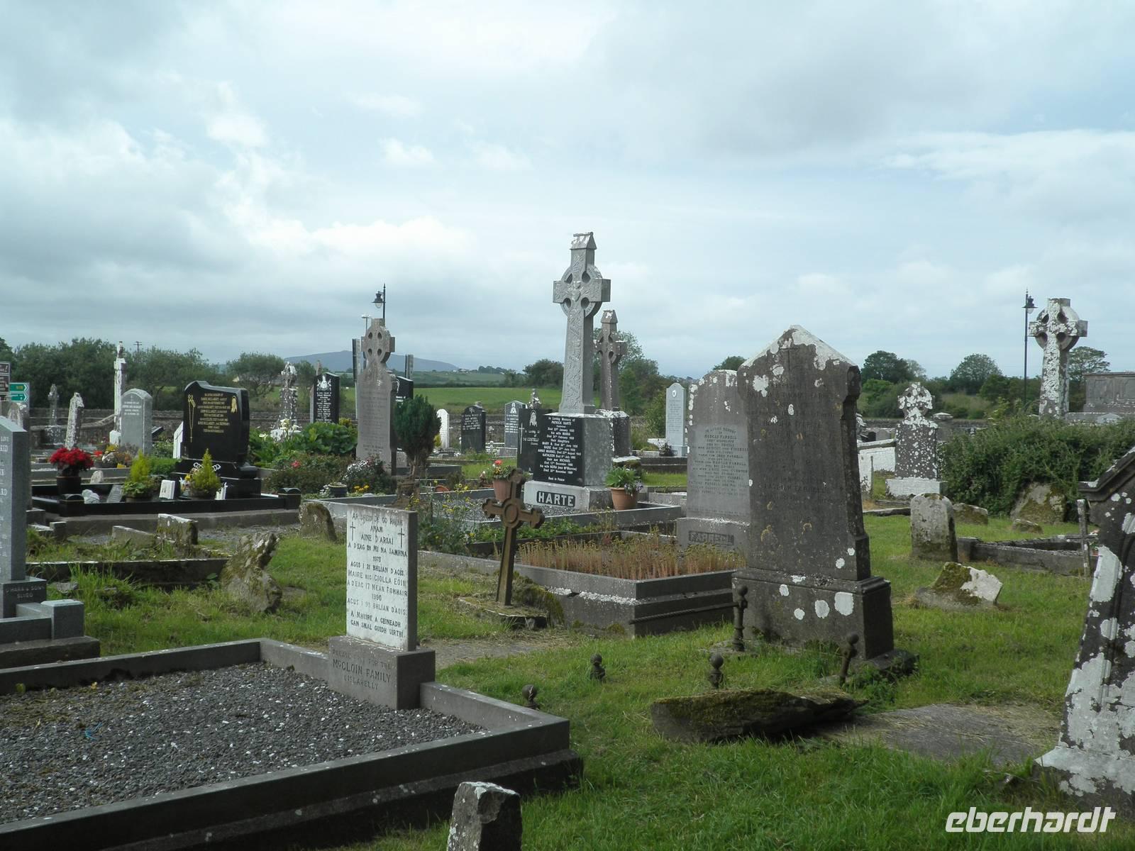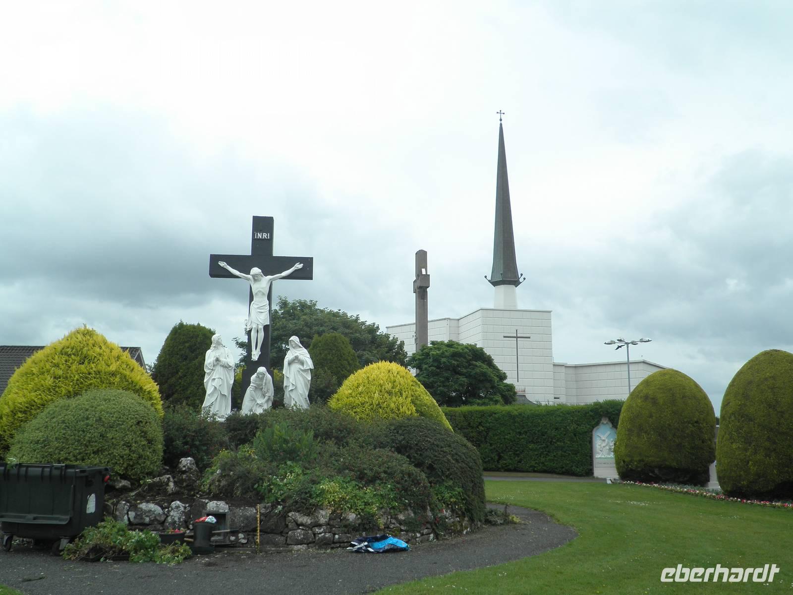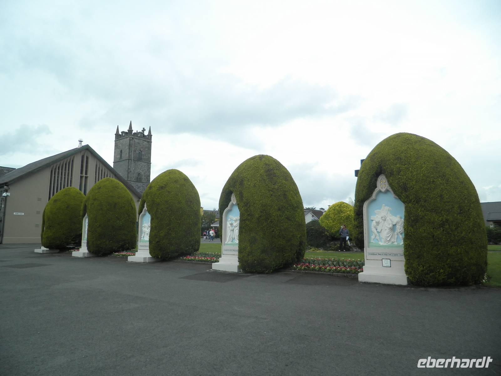 Der erstenPunkt unserer Reise heute führte uns nach Drumcliff. Auf dem Friedhof des kleinen Ortes am Fuße des Tafelberges Ben Bulben liegt der erste irische Nobelpreisträger für Literatur, der Dichter William Butler Yeats, beerdigt. Wir sahen sein Grab, daneben viele irische Hochkreuze, die auch als Keltenkreuz oder Rundkreuz bezeichnet werden. Weiter ging es nach Sligo, einer kleinen Stadt, deren Wahrzeichen ebenfalls Ben Bulben ist. Hier verbrachten wir unsere Mittagspause. Danach fuhren wir nach Knock. Das ist der wichtigste Wallfahrtsort der katholischen Kirche in Irland. Der einstmals kleine Ort entwickelte sich zum Ziel von Millionen von Pilgern, weil hier im Jahre 1879 eine Marienerscheinung beobachtet worden sein soll. Nun kommen Menschen aus allen Teieln der Welt, weil sie sich vom heiligen Wasser, das man sich hier abfüllen kann, und dem spirituellen Ort Heilung versprechen oder Hoffnung finden. Wir besichtigten dir großzügig angelegte Wallfahrtsanlage mit großer Kriche und gepflegten Außenanlagen. Auf unserem Weg nach Loughrea, wo sich das Hotel für diese Nacht befand, hielten wir noch einmal in Galway an. In dieser Stadt gibt es eine imposante Kathedrale, eine lebendige Fussgängezone sowie ein Gedenkfenster an einen Herrn Namens Lynch, von dem vermutlich das heute gebräuchliche Wort "lynchen" stammt. Nach eine kurzen Stadtbummel trafen wir uns wieder an unserem Bus und fuhren ins Hotel, wo wir ein leckeres Drei-Gänge-Menü genossen und den Abend gemütlich verbrachten.