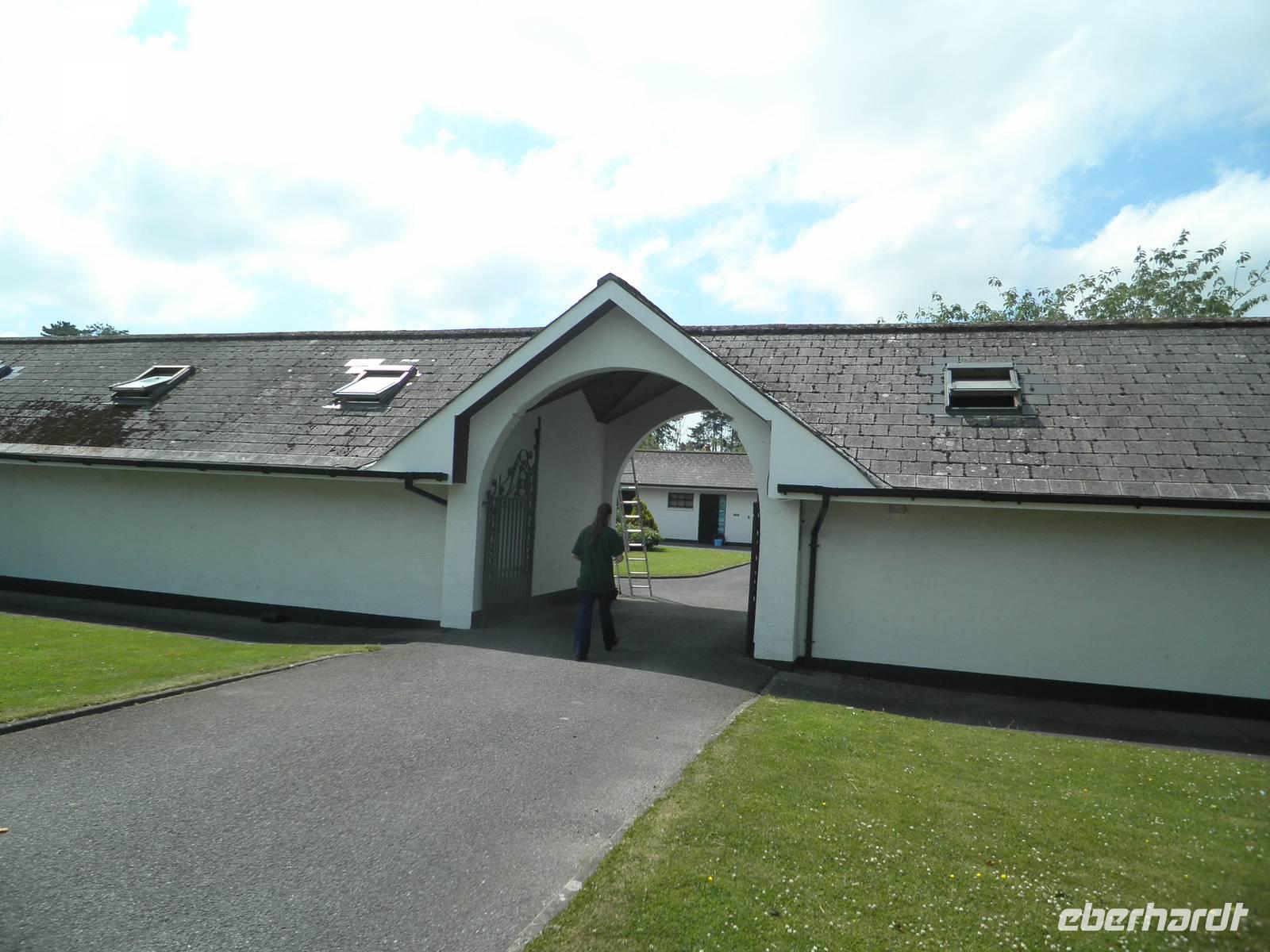 Wir verließen unser Hotel in Loughrea und kamen nach kurzer Fahrt nach Kilbeggan, wo sich die älteste Whiskey-Destillery Irlands befindet. Bereits seit Mitte des 18. Jahrhunderts wird hier Whiskey gebrannt. Bei einer Führung konnten wir uns in die alten Zeiten der früheren Whiskeybrennerei hineinversetzen, aber wir erfuhren auch, wie heute Kilbeggan-Whiskey hergestellt wird. Am Ende der Führung konnten wir einen milden Whiskey probieren und vier Gäste unserer Gruppe errieten, nur mit ihren Geruchs- und Geschmacksnerven, drei verschiedene Whiskeys. Weil sie alle auf Anhieb richtig lagen, bekam jeder von ihnen das Irische Whiskey-Tester - Diplom. Den nächste Höhepunkt an diesem Tag stellte das Irische Nationalgestüt dar. Zunächst hatten wir Gelegenheit, den im Gestüt befindlichen Japanischen Garten zu erkunden. Er zeigt in Form von Pflanzen, Steinen und Wasser den Lauf des menschlichen Lebens. Einige nutzten die Zeit, um im Restaurant des Gestüts einen Imbiss einzunehmen. Auf der folgenden Führung durch das Gestüt erfuhren wir viel über die Zucht von Rennpferden hier, von der Geburt bis zum Gnadenbrot für in die Jahre gekommene Rennlegenden.