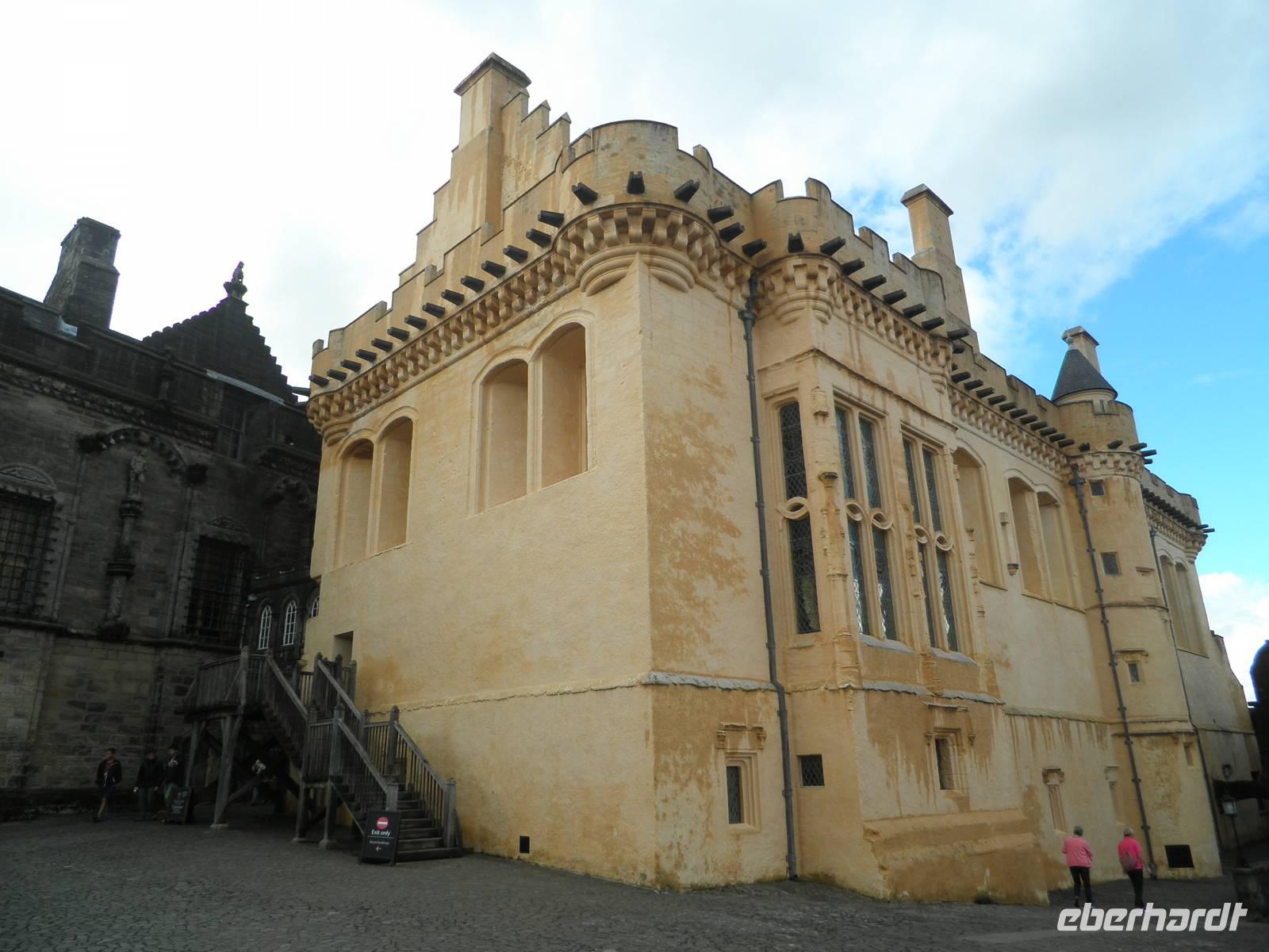 Heute hatten wir nur eine kurze Anfahrt zu unserem ersten Halt: Falkirk Wheel, das drehende Schiffshebewerk. Hier werden Boote über eine Höhe von 35 m hinauf- oder hinunter gehoben. Wir stiegen auch in eines der Ausflugsboote und wurden hinauf gefahren, um eine kurze Kanalrundfahrt zu erleben. Wohlbehalten und auf festem Boden zurück bestiegen wir danach wieder unseren Bus, um nach Stirling zu gelangen. Wir besichtigten Stirling Castle, eine der wichtigsten Burgen der schottischen Könige, u.a. den Stuarts. Ein Stadtbummel in Stirlings Altstadt zu Füßen der imposanten Burganlage rundete den Nachmittag ab. Auf unserer Fahrt zu unserem nächsten Hotel in Drymen durchquerten wir die Trossachs, Teil des Nationalparks Loch Lomond and the Trossachs. Die Fahrt führte uns entlang der Ufer romantischer Seen, die hier Lochs genannt werden, und durch hügelige Wälder und Felder. Am Loch Katrine stiegen wir aus, gerade legte die SS Sir Walter Scott dort an, ein historisches Dampfschiff, mit dem Besucher Ausflüge auf Loch Katrine Unternehmen können. Anschließend fuhren wir nach Drymen, genossen im Winnock Hotel ein leckeres Abendessen und einige Gäste ließen den Tag im benachbarten Pub The Clachan Inn ausklingen, der der ältesteste Pub Schottlands sein soll, gegründet 1734.