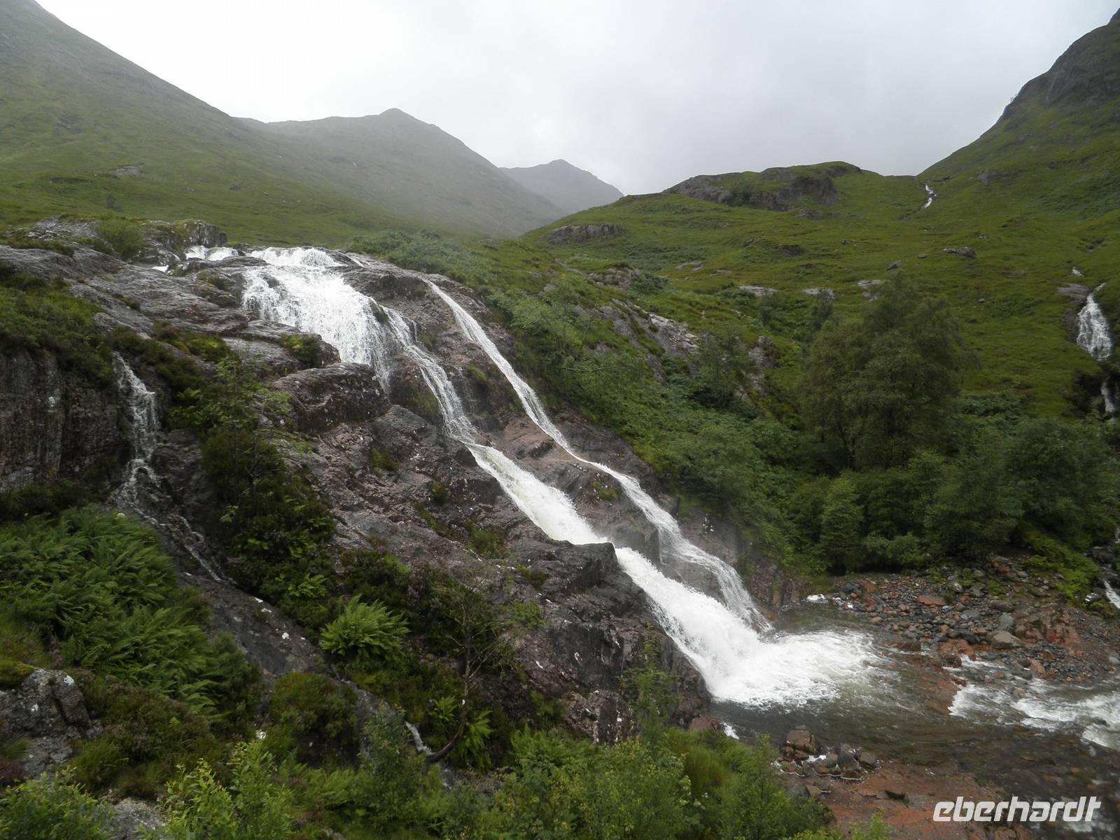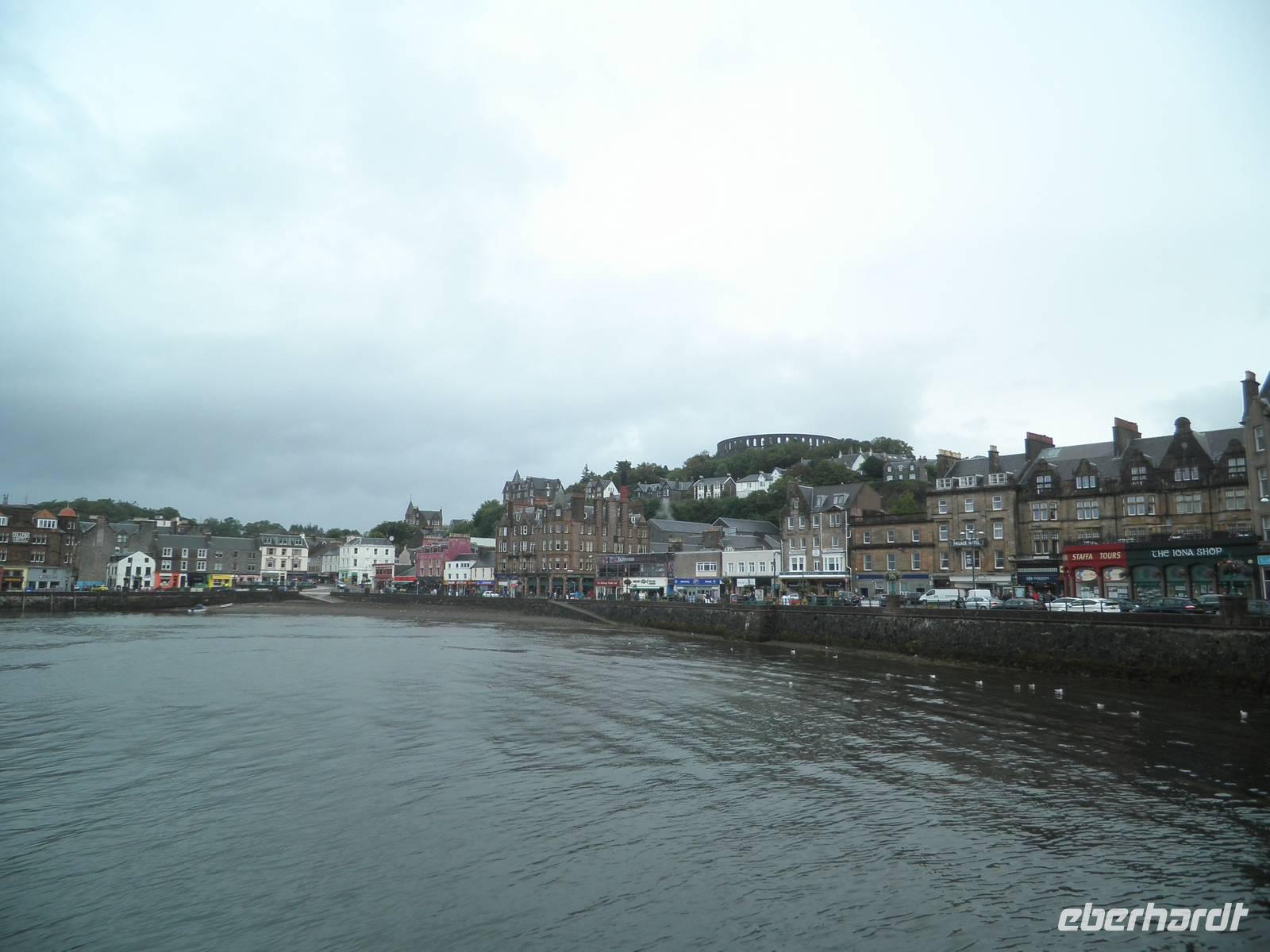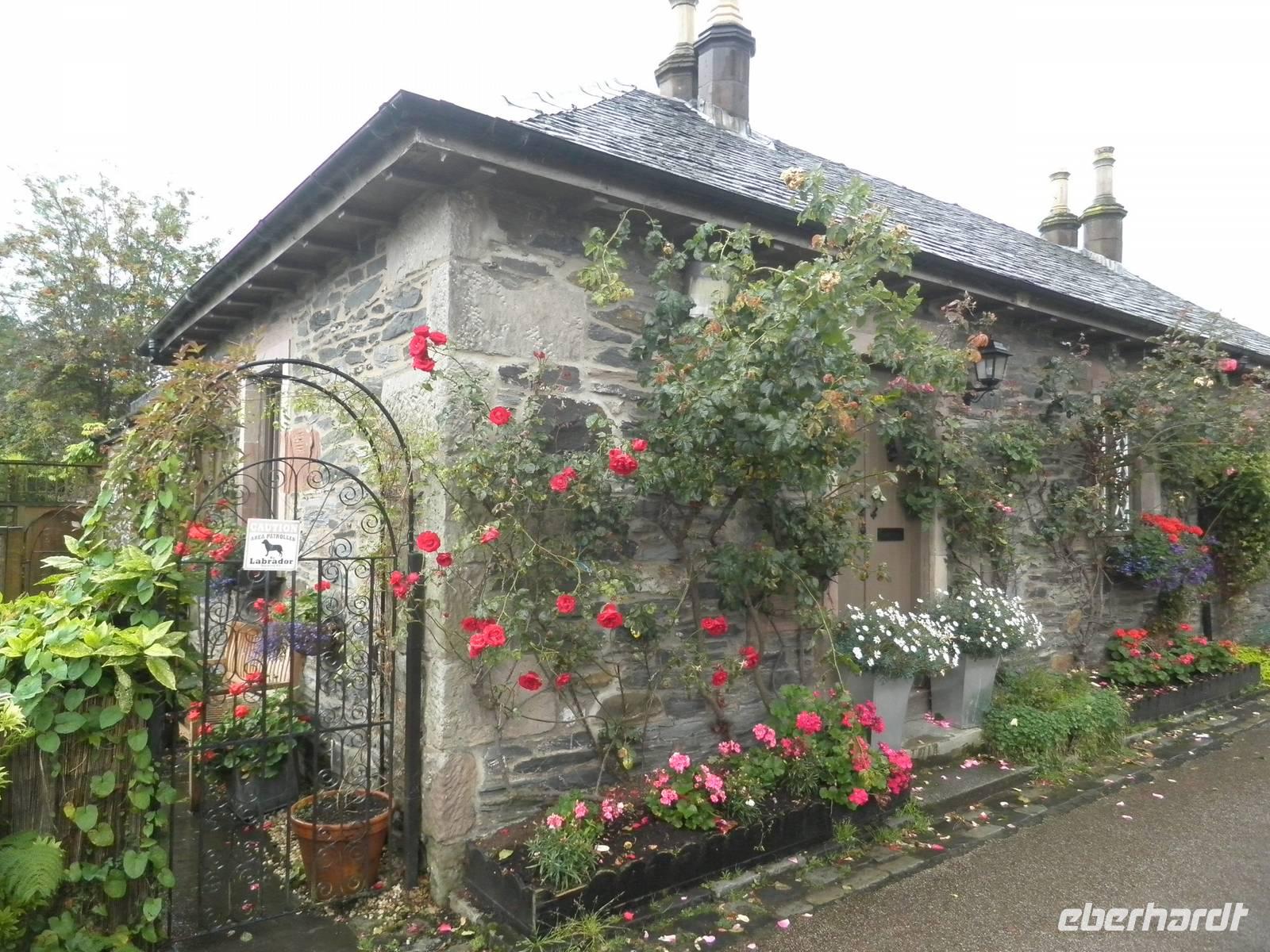 Bereits am Morgen begrüßte uns wieder schottischer Regen, dennoch ließen wir uns die Freude auf den kommenden Ausflug nicht verderben. Gestärkt nach einem kräftigen schottischen Frühstück mit Porridge (Haferbrei), gebratenem Speck, Würstchen, Haggis und gebackenen Bohnen stiegen wir in unseren Bus. Unser Weg führte uns zunächst an die "Bonnie Banks of Loch Lomond", die schönen Ufer des Loch Lomond. Wir hörten die Geschichte der Entstehung des berühmten Liedes, und unsere Reiseleiterin spielte es auch für uns im Bus. Nach einiger Fahrt durch herrliche Landschaft mit kargen Hügeln, Ginster, Farn und Seen erreichten wir Inverary Castle. Wir stiegen aus und nutzten die Gelegenheit, das gepflegte kleine Schloss zu fotografieren. Im schönen Küstenstädtchen Oban, wo man schon nah an den Hebriden ist, verbrachten wir eine ausgiebige Mittagspause. Einige besichtigten die örtliche Destillery und kosteten den dort gebrannten Whisky. Andere nutzten die Gelegenheit, frische Meeresfrüchte oder Fisch zu essen bzw. einen Bummel durch die hübsche Hafenstadt zu machen, über der der McCaigs Tower thront, eine nicht ganz vollendete Nachbildung des Colosseums in Rom mit einem Durchmesser von etwa 200 m. Durchs berühmte Glencoe, das Tal der Tränen, ein beeindruckendes breites Gletschertal mit Legenden und viel Einsamkeit, fuhren wir wieder in Richtung Süden. Wir erreichten unser Hotel in Drymen und genossen ein leckeres Abendessen. Der Tag hatte uns einigen Regen beschert, nun hofften wir auf den nächsten Morgen, dass die Sonne die Wolken endlich vertreiben würde.