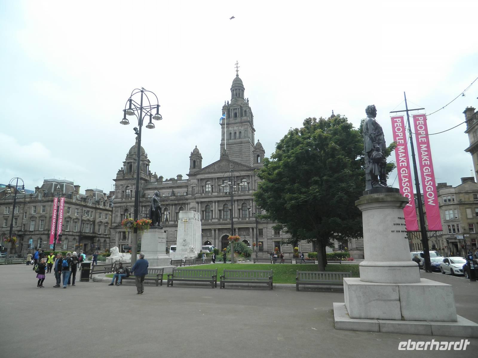 Doch auch dieser Morgen erwartete uns mit Wolken und auch Sonne, bescherte uns immer wieder kurze Regenschauer. In Glasgow besichtigten wir die St. Mungo Kathedrale und am George Square und in der benachbarten Fußgängerzone im Zentrum der Stadt verbrachten wir noch etwas freie Zeit mit Bummeln und Einkaufen. Am Mittag verließen wir Glasgow, die größte Stadt Schottlands, um in Richtung Fähre nach Nordirland zu fahren. Am kleinen Fischerhafen von Girvan hielten wir an, spazierten entlang der Kaimauern und erreichten danach pünktlich den Fähranleger von Cairnryan, wo wir mit unserem Bus auf die Fähre der Stena Line fuhren. Auf den verschiedenen Passagierdecks verbrachten wir die gut zweistündige Überfahrt nach Belfast.