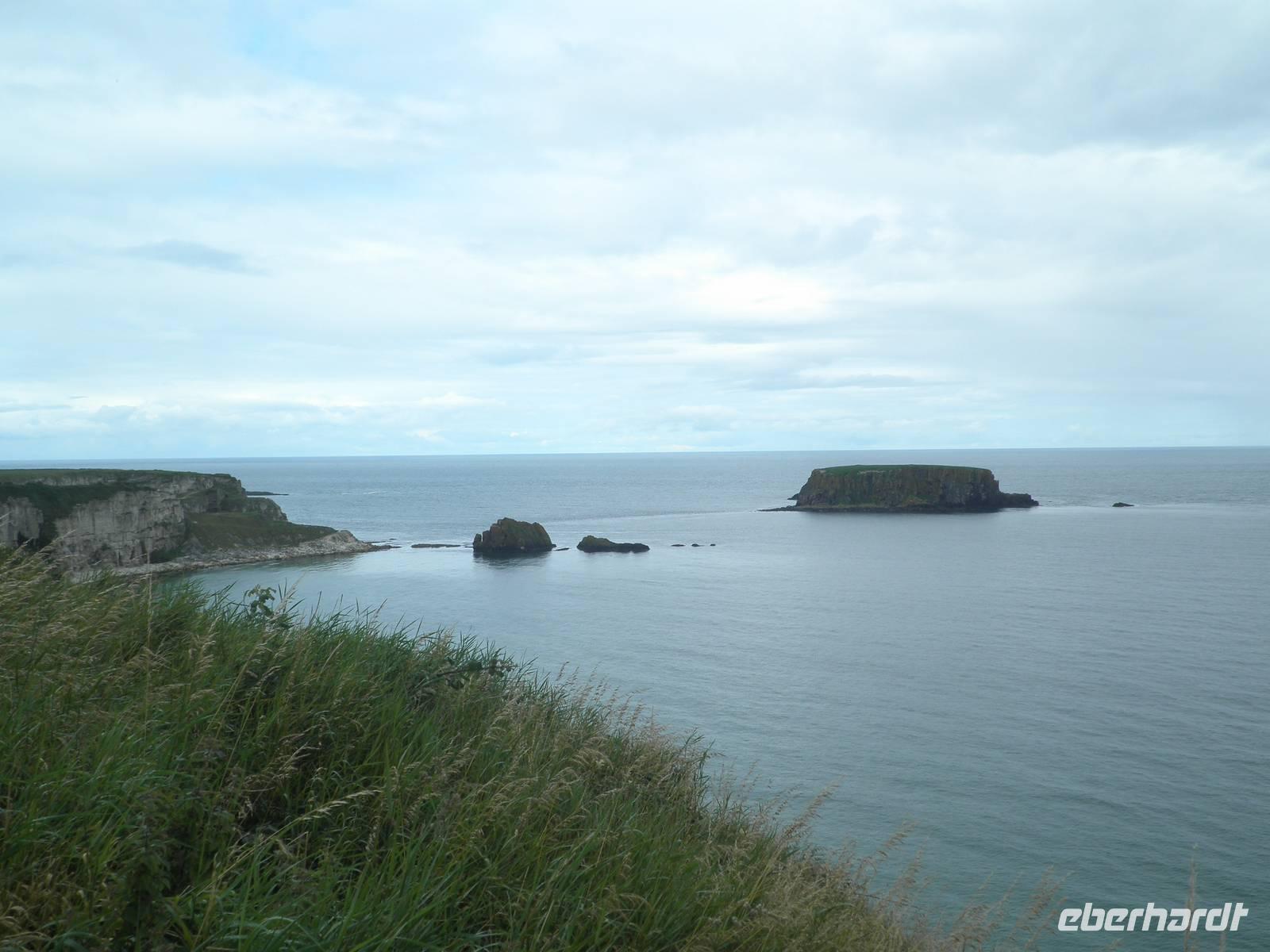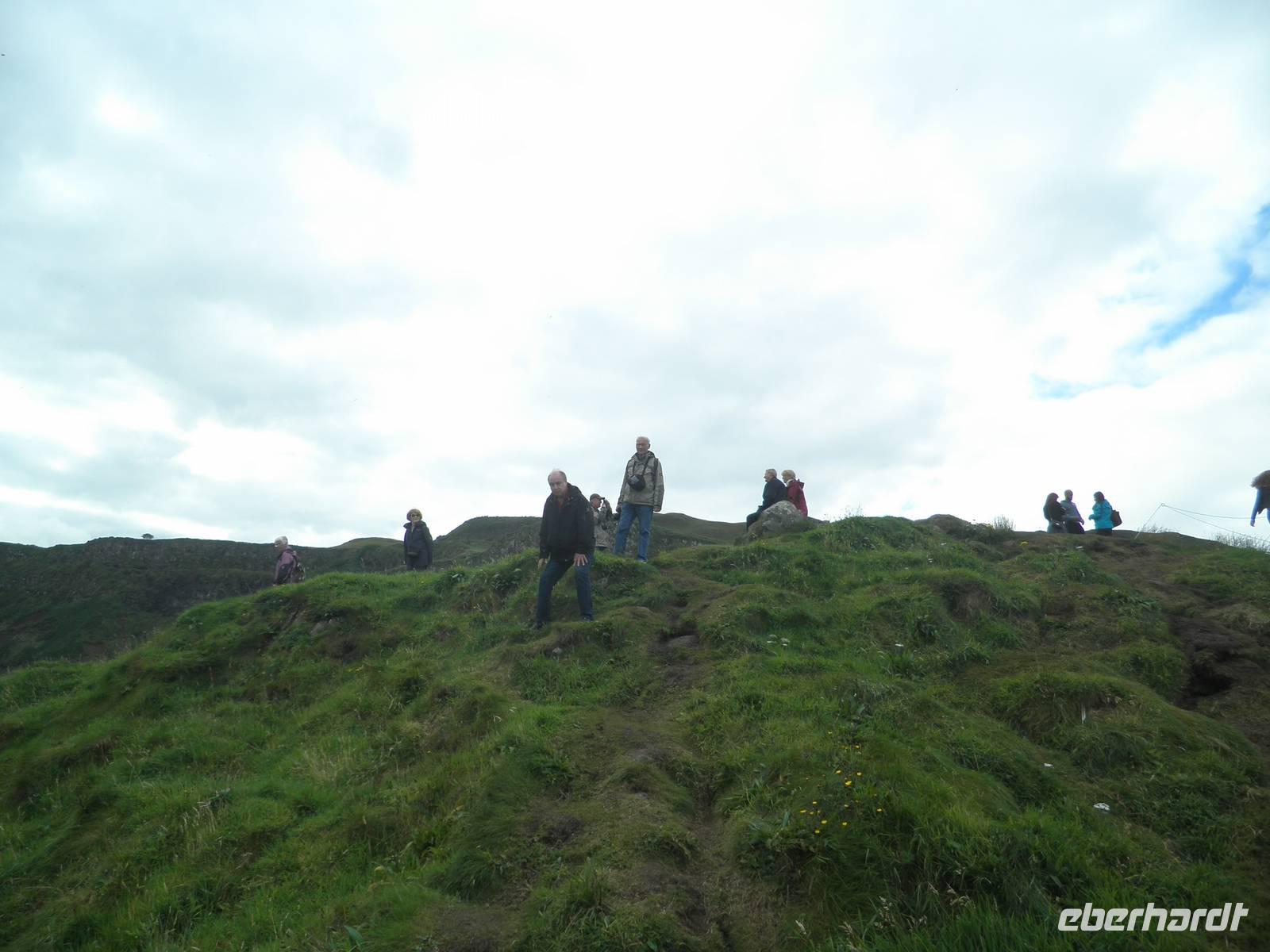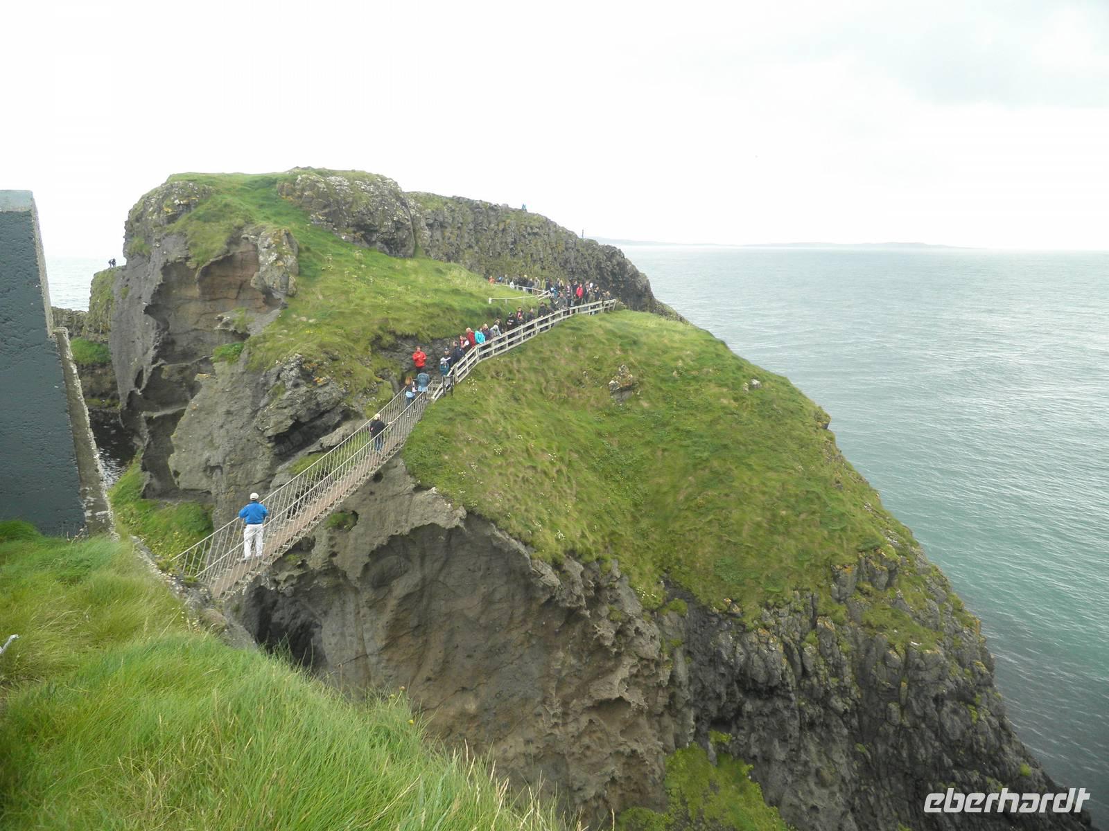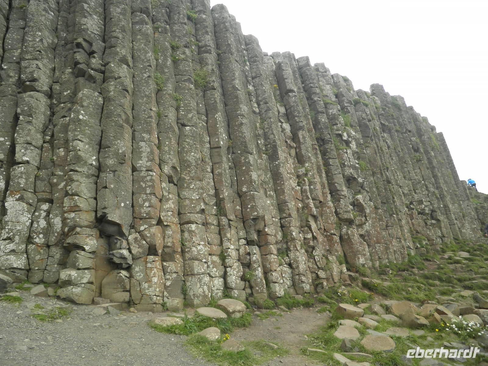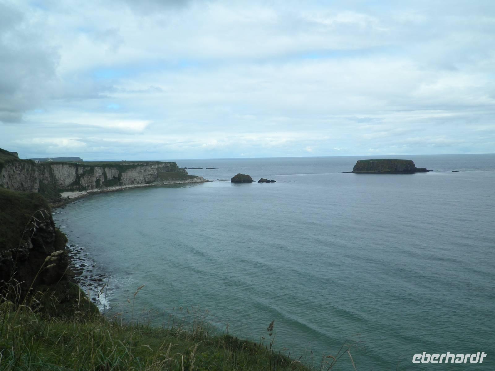 Dieser Tag stand ganz im Zeichen der herrlichen Küste von Nordirland. Das Wetter verwöhnte uns heute mit Sonne und damit mit einer tollen Aussicht und ab und zu gab es auch etwas Regen. Wir verließen Belfast am Morgen und fuhren entlang der romantischen Küstenstraße, die sich die Antrim Coast entlang schlängelt. Wir sahen malerische Buchten, schöne Fischerorte und graue Felsen, an denen sich die Brandung brach. In Carnlough machten wir Pause und genossen die Seeluft und die Armosphäre im kleinen Fischerhafen des Ortes. Nach kurzem Aufenthalt fuhren wir weiter nach Norden entlang der atemberaubenden Küste. Eine Herausforderung der besonderen Art ist eine schmale Seilbrücke, Carrick-a-Rede. Sie führt auf einen Felsen im Meer, man überquert schwankend einen 30 Meter tiefen Spalt über dem Wasser. Einige Gäste trauten sich und bezwangen diese 20 Meter lange schmale Hängebrücke und genossen herrliche Ausblicke auf die wunderschöne Küste. Nach weiterer kurzer Fahrt erreichten wir schließlich die wohl beeindruckendste Sehenswürdigkeit Nordirlands, die die Natur geschaffen hat: Giant's Causeway. Wir spazierten hinunter ans Meer und kletterten auf den unzähligen Basaltsäulen umher, die laut einer Legende der Riese Finn hier ins Meer geworfen hat, um einen trockenen Weg hinüber nach Schottland zu bauen. Doch sein schottischer Gegenspieler, der auch ein Riese war, hat bei seiner Flucht über den Causeway die Säulen hinter sich zerstört, so dass heute der Weg des Riesen einfach in den Fluten endet. Diese Legende ist unterhaltsam, aber tatsächlich hat erkaltende Lava diese Basaltsäulen geformt. Ihr besonderes Merkmal ist ihre Form, sie sind alle als 5-, 6- oder 8-Eck geformt, einige weisen sogar eine Höhe von bis zu 12 Metern auf. Nach diesem wirklich beeindruckenden Naturerlebnis fuhren wir nach Derry / Londonderry. Die besterhaltene Stadtmauer in Großbritannien lädt zu einem Spaziergang ein. Etwa eintausendfünfhundert Meter ist sie lang und so kann man eine ganze Runde auf ihr gehen und dabei die Altstadt erkunden. In der Stadt ist die jüngere Vergangenheit noch deutlich zu spüren. Am Eingang des Stadtteils Bogside gibt es verschiedene Wandgemälde, die u.a. an den sogenannten Blutsonntag am 30.01.1972 erinnern. An diesem Tag sind viele junge Menschen bei Unruhen ums Leben gekommen. "Free Derry" steht auf einem weißen Stein, der die irische Fahne trägt.